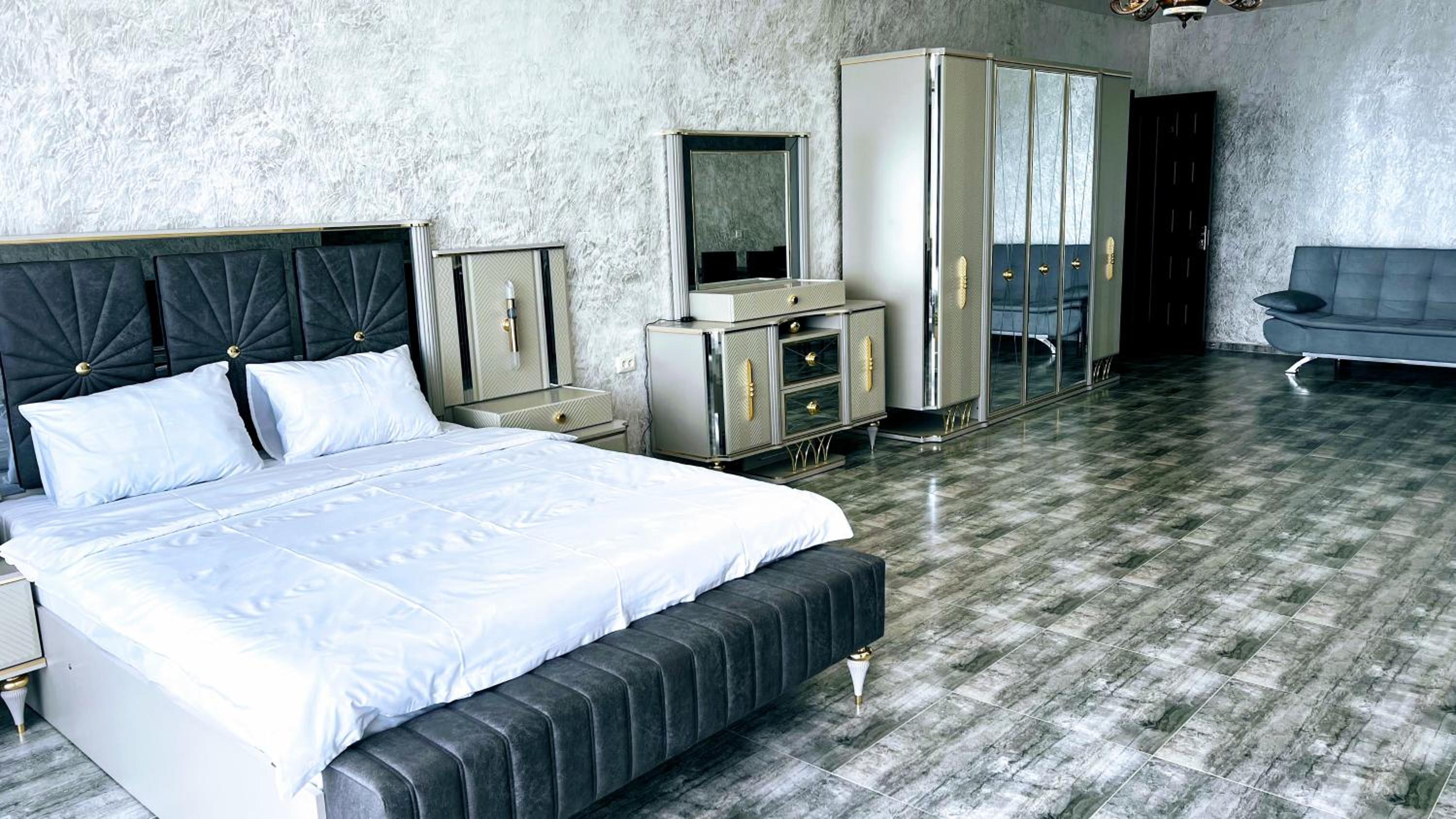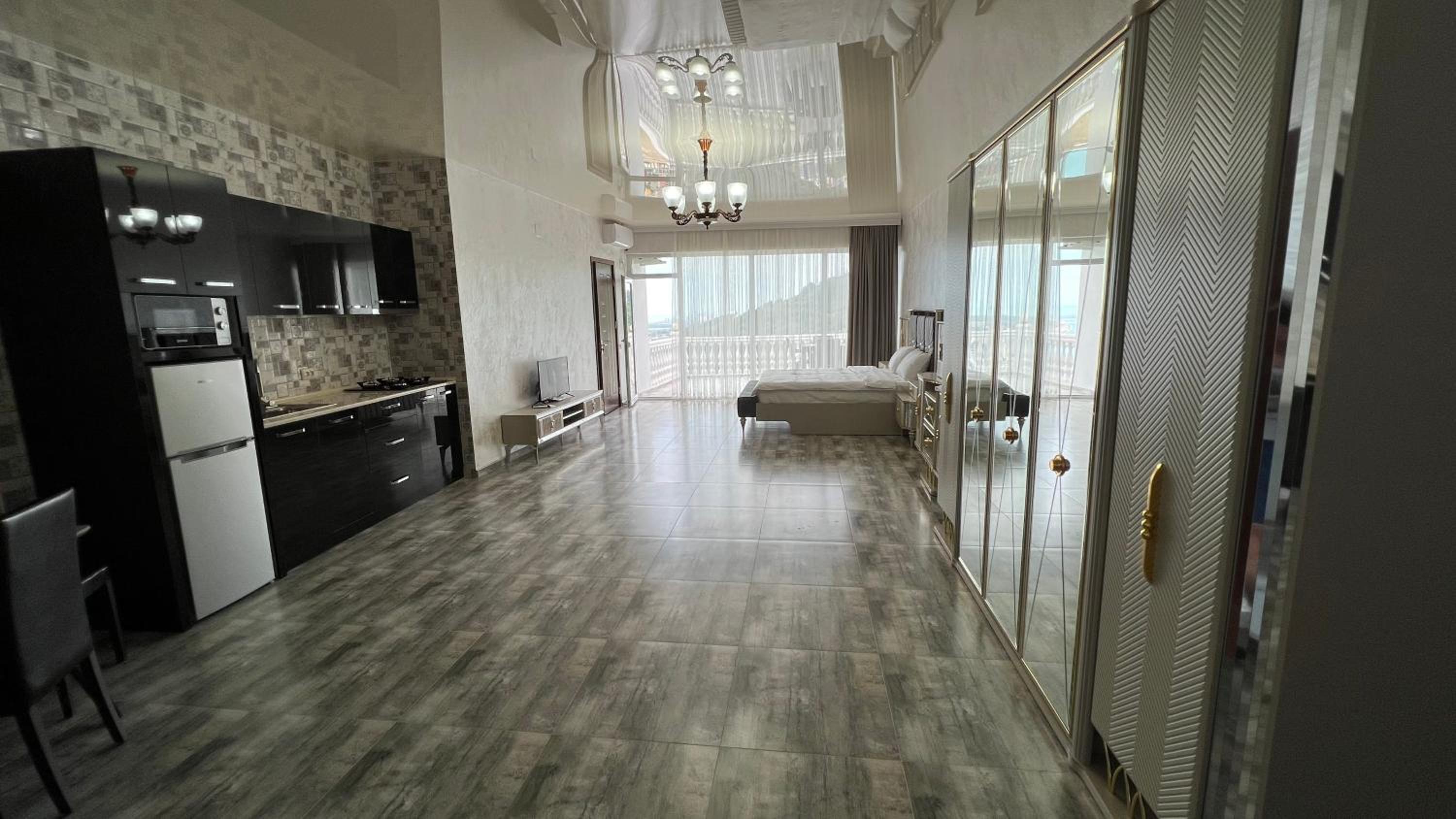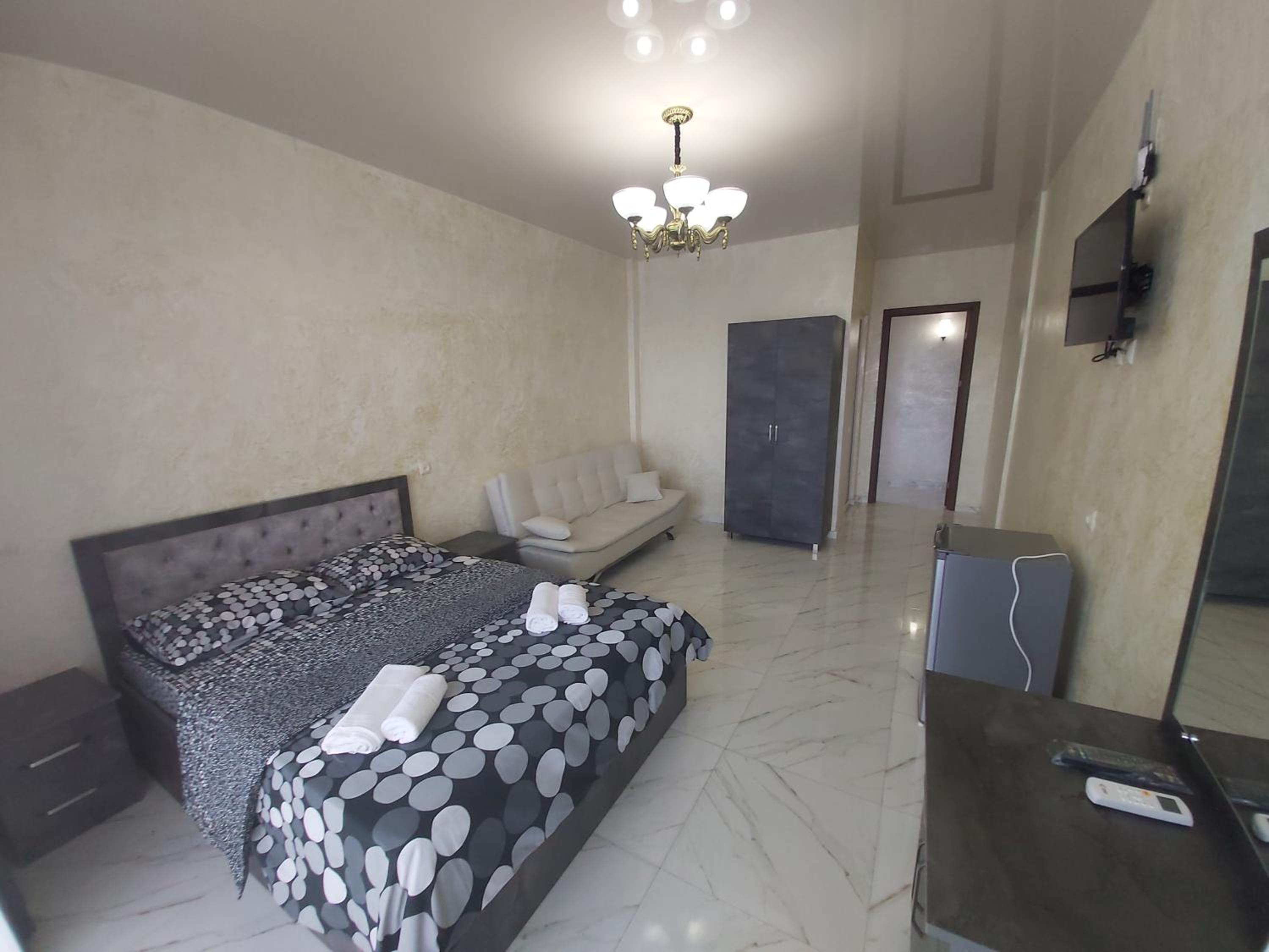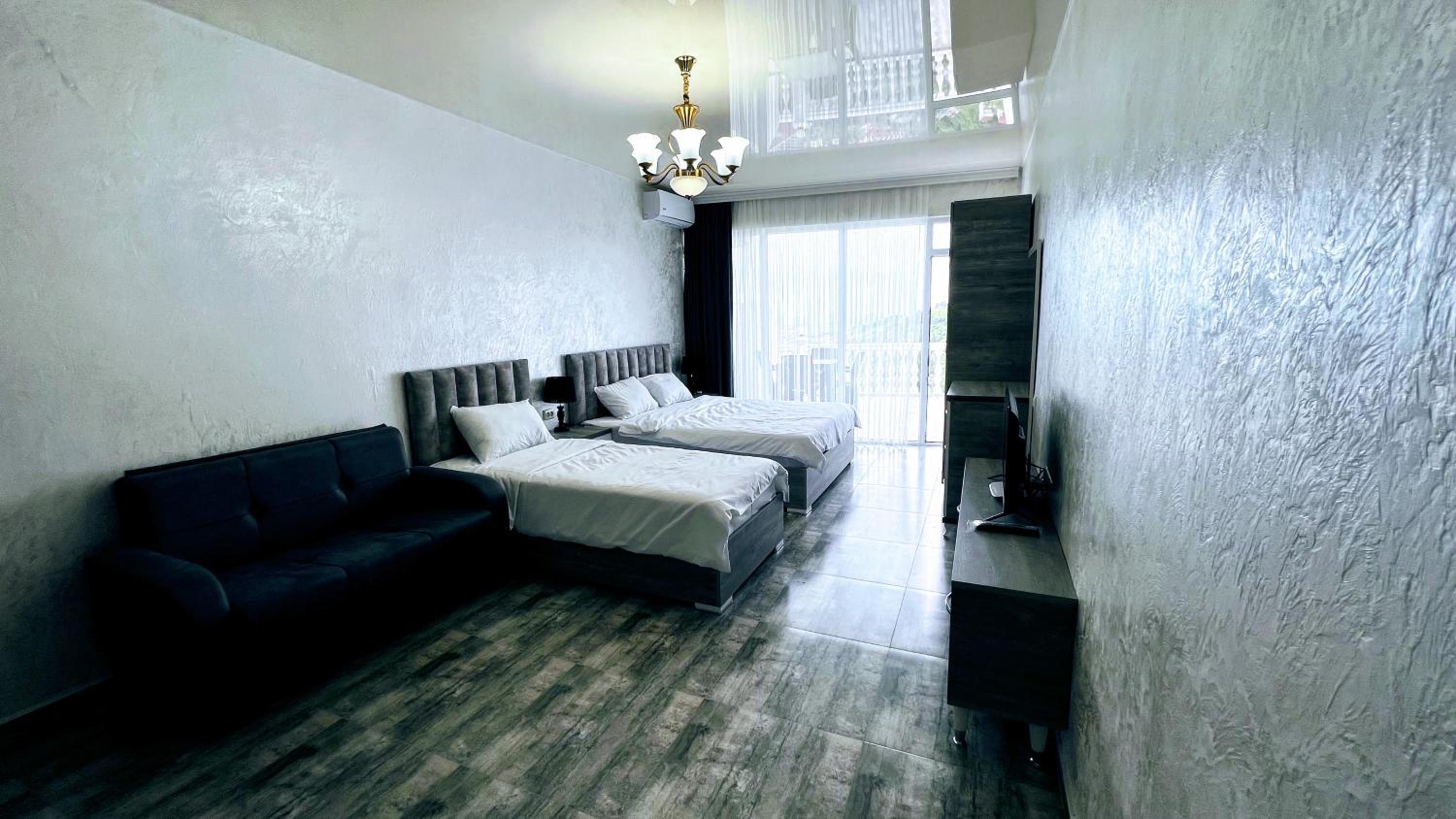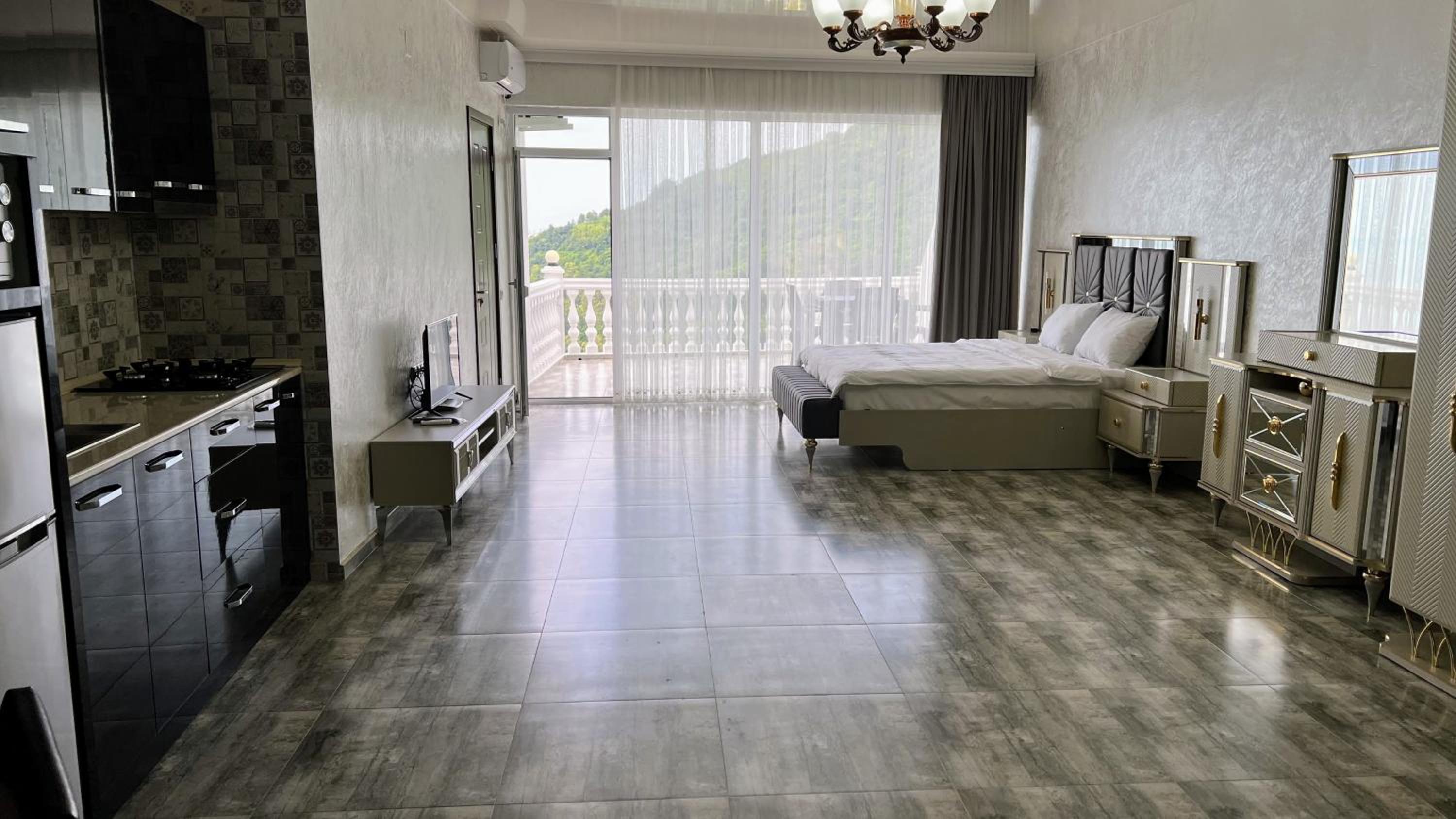 Zura palace in Kvariat'i offers a unique experience with its pool overlooking the sea and comfortable accommodations. Enjoy the convenience of a restaurant, shared kitchen, and full-day security, all while staying connected with free WiFi.