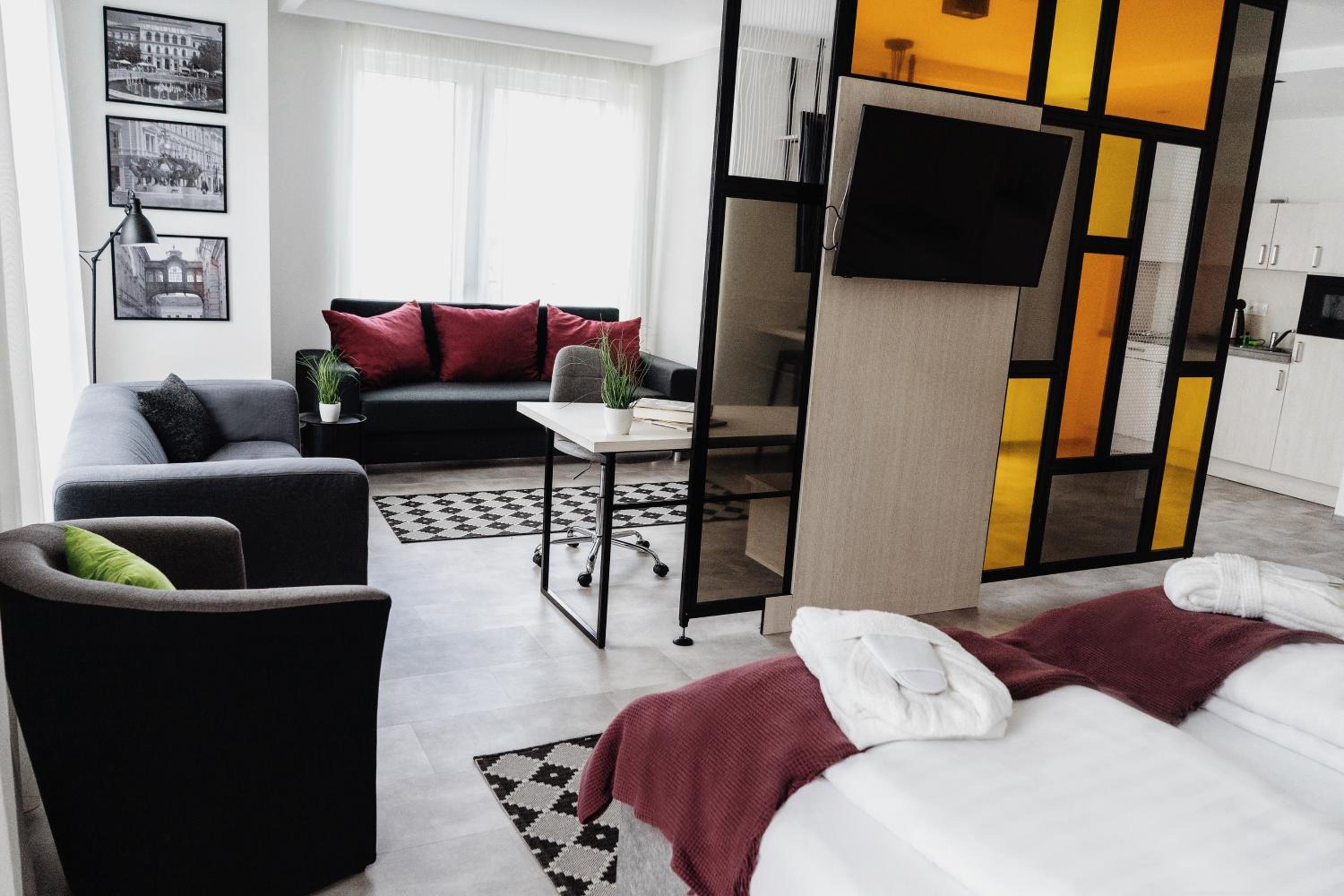 Kiváló lokáció, közel a központhoz. A szoba tágas, modern és tiszta volt, nagyon kényelmes ágyakkal. Külön köszönet a recepció segítőkészségének, kedvességének.