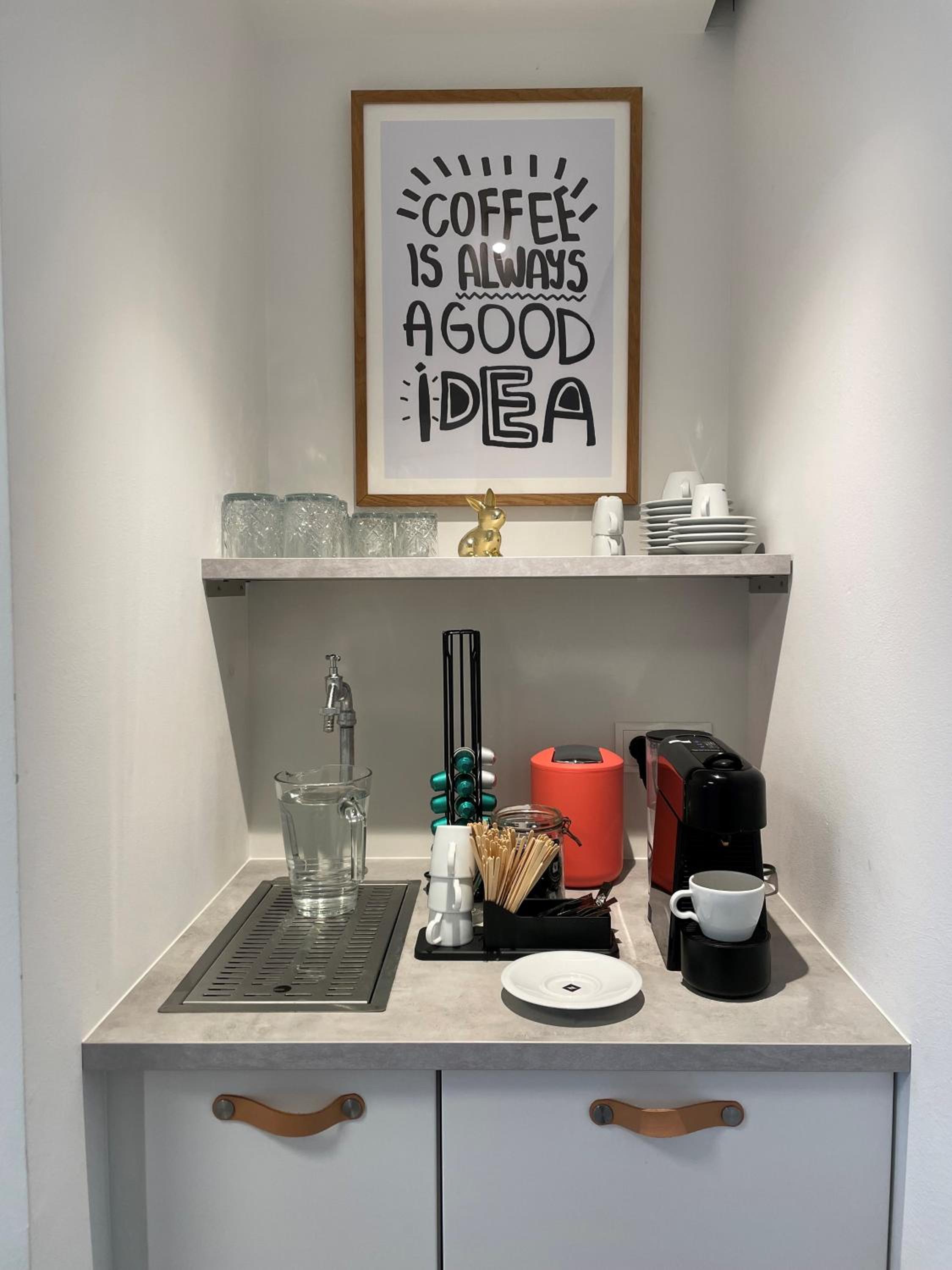 Diesmal hat die Kaffeemaschine funktioniert. Aber dafür war irgendwie nicht durchgehend Warmwasser gewesen nur am Anfang kurz danach nur noch ganz lauwarm ansonsten war alles super gewesen wie immer und ich dachte ich bekomme Zimmer 12 aber hatte leider Zimmer 24 was halt bisschen kleiner war und ohne die Schaukel im Zimmer 😍