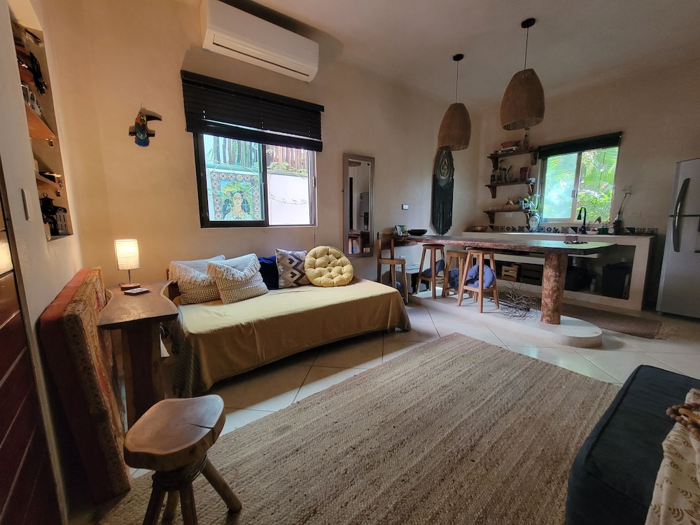 We got a free upgrade to a bigger room because the internet in the first room didn't have good reception. Lily was super friendly, helpful and attentive. We loved to have a little kitchen and the room was beautiful. You feel like you're in a little jungle oasis, yet close to all amentities and in the beautiful district of la veleta.