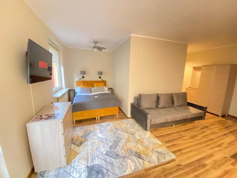 Perfekt von der Lage genau an der "Meile" von Lodz. Trotzdem nicht laut. Leider sehr schlicht ausgestattet. Apartments mit Küchenzeile. Wenig bis keine Lampen, Betten und Bettwäsche nicht gerade top. Ziemlich aufdringlich riecht es nach Reinigungsmittel.