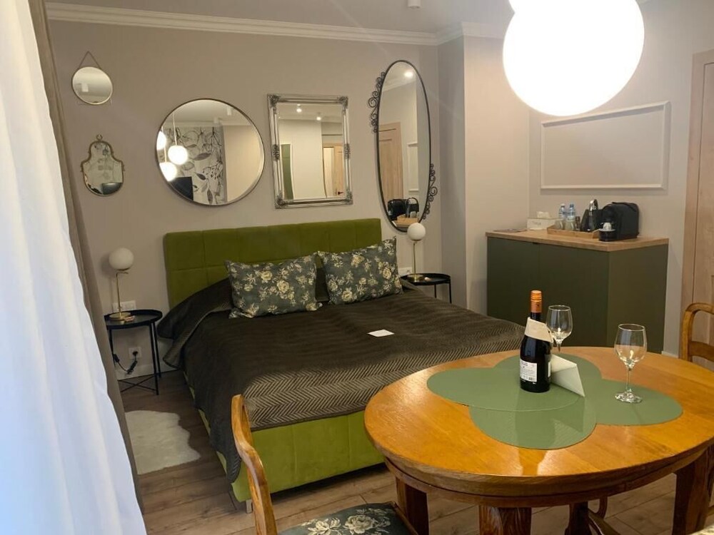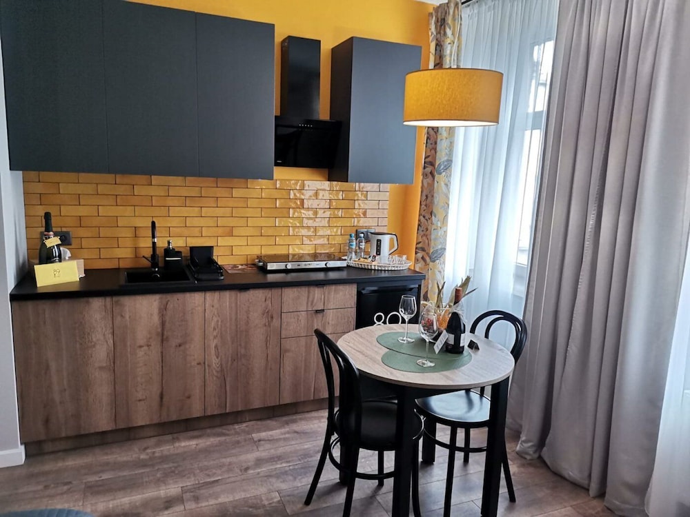 The hotel is in the perfect location. The rom is excelent but unfortunately there are no elevator in all the buildings, so getting all the luggage in the room could be challenging if you're not strong enough. Enyway the staff if very friendy willing to help you if you need. There are washing mashine, dishwasher plates and all you need for even for longer stay. But all of this will be not necessary if you have plenty of restaurands around you on the Piotrkowska street.