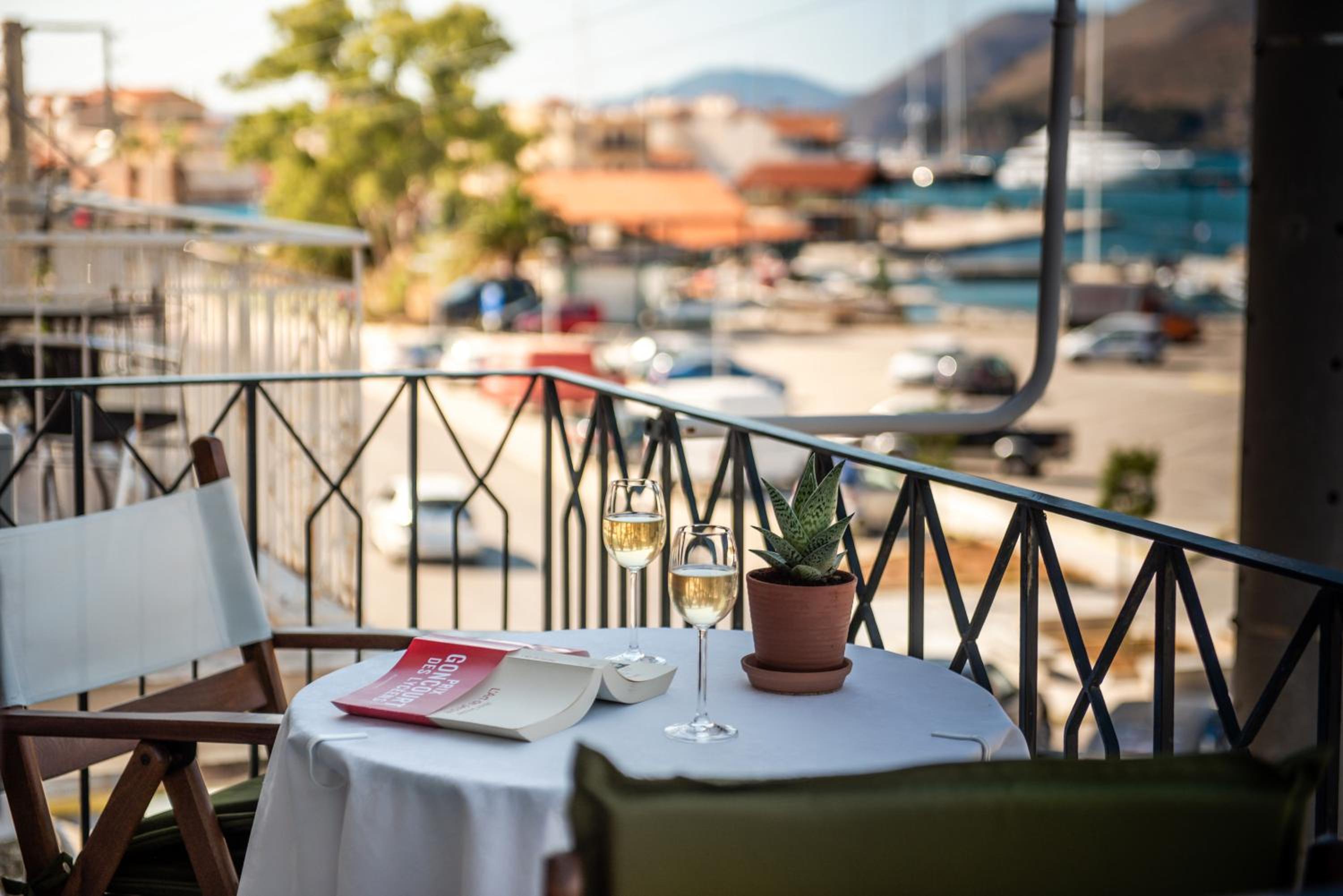 В номере с террасой шикарная терраса, больше самого номера. На лестничных пролетах разные полезные мелочи (зонтики, открытки, буклеты). Номер убирается моментально, стоит только выйти на завтрак. Выезжали рано утром, поэтому нам в номере оставили "сухой паек", которого хватило бы на многодетную семью (нас двое). Отель расположен рядом с портом, много шансов припарковаться на стоянках порта. А также хорошо прогуляться по набережной.