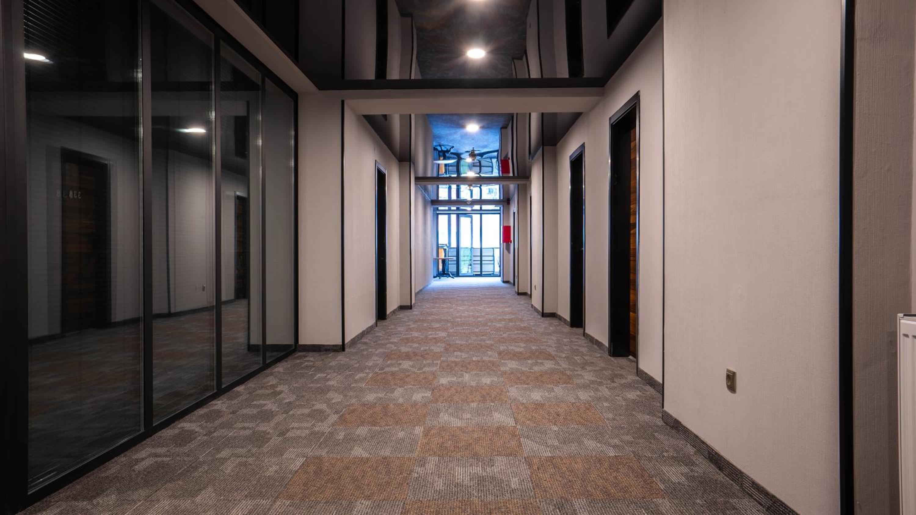 Стильный отель со своей закрытой территорией, где есть детская площадка и каток.