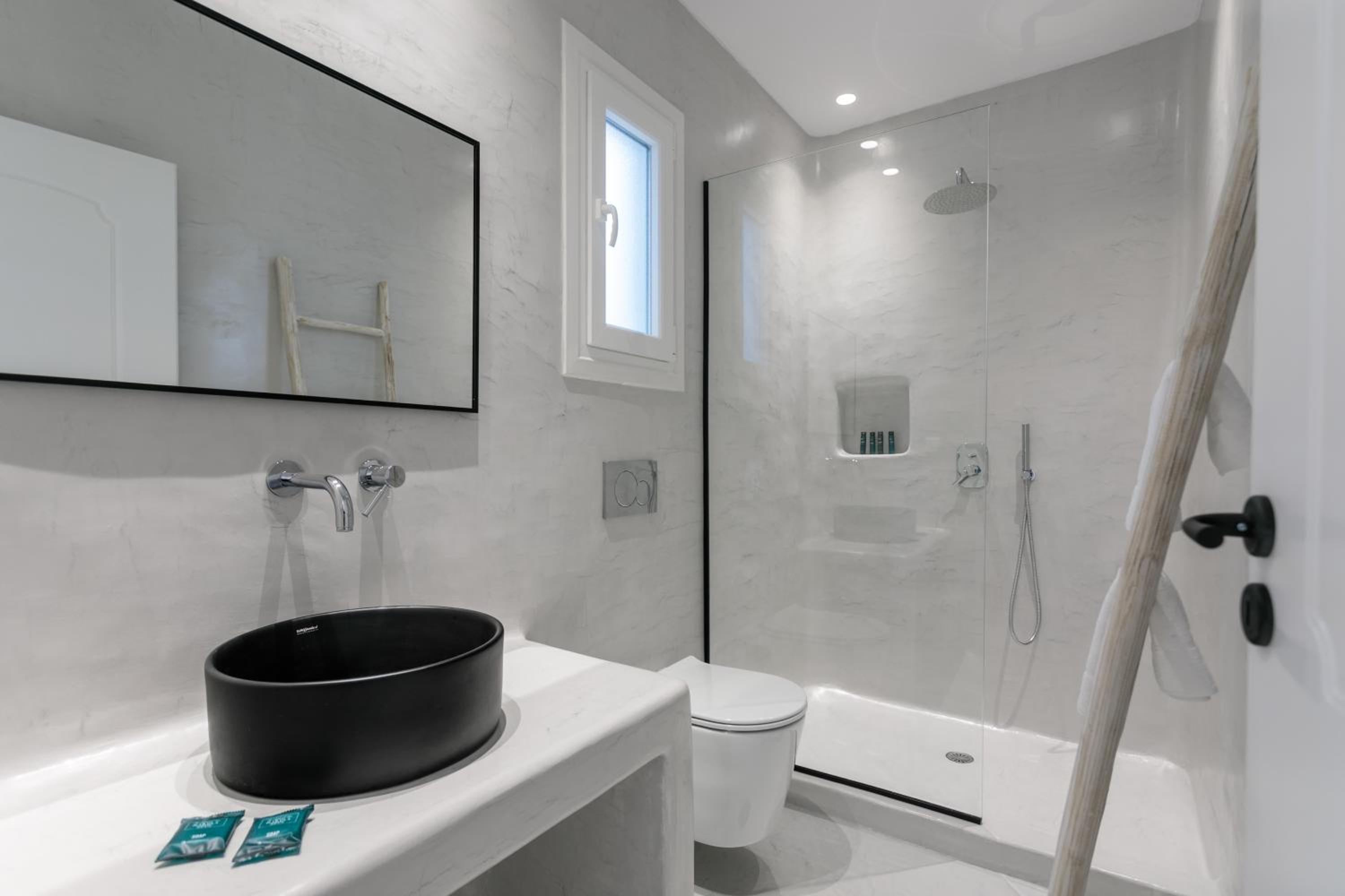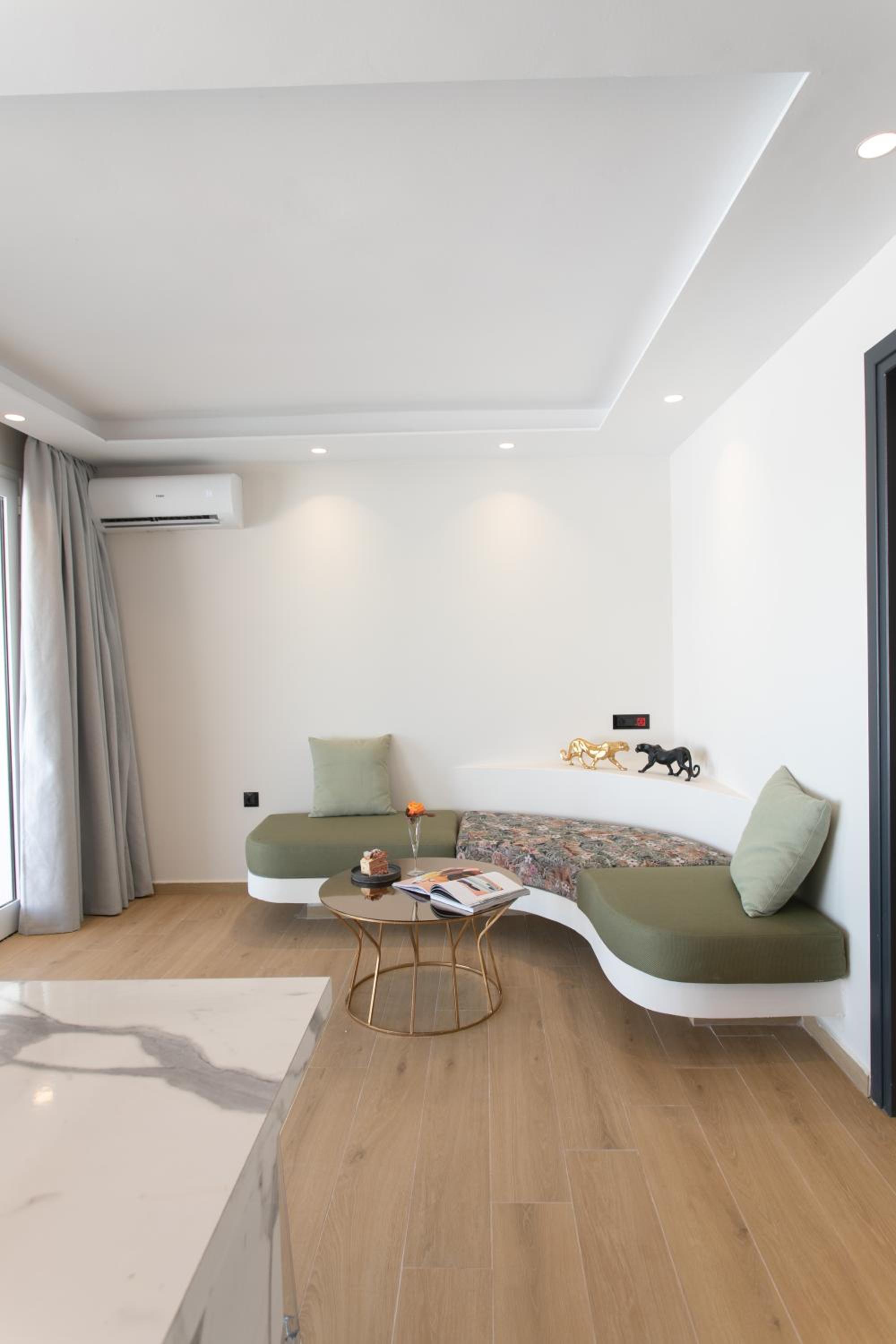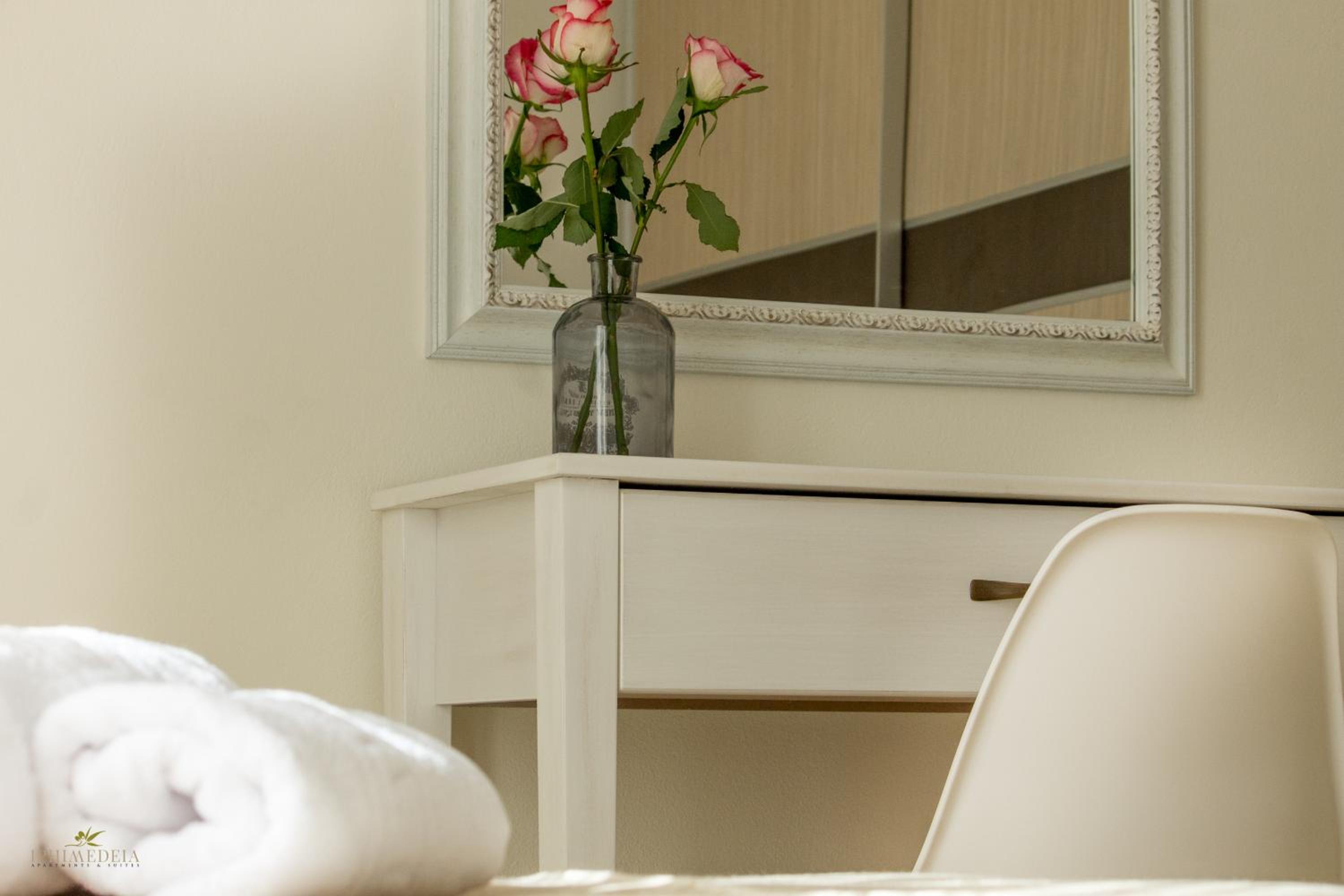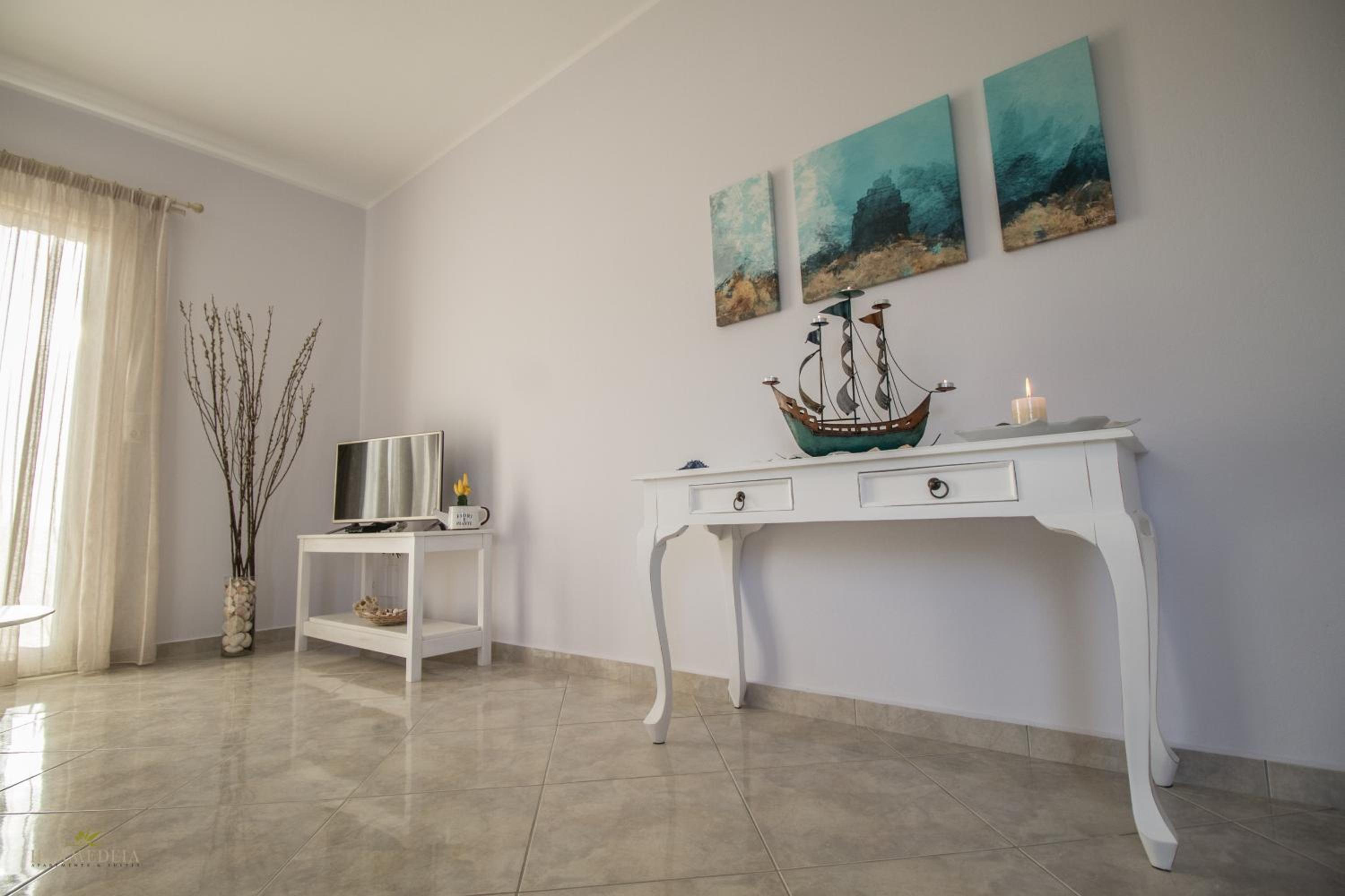 Iphimedeia Apartments & Suites offer elegantly decorated rooms with modern amenities including air conditioning, flat-screen TVs, and private bathrooms with plush bath robes. Some units even feature charming terraces or balconies for a relaxing stay.