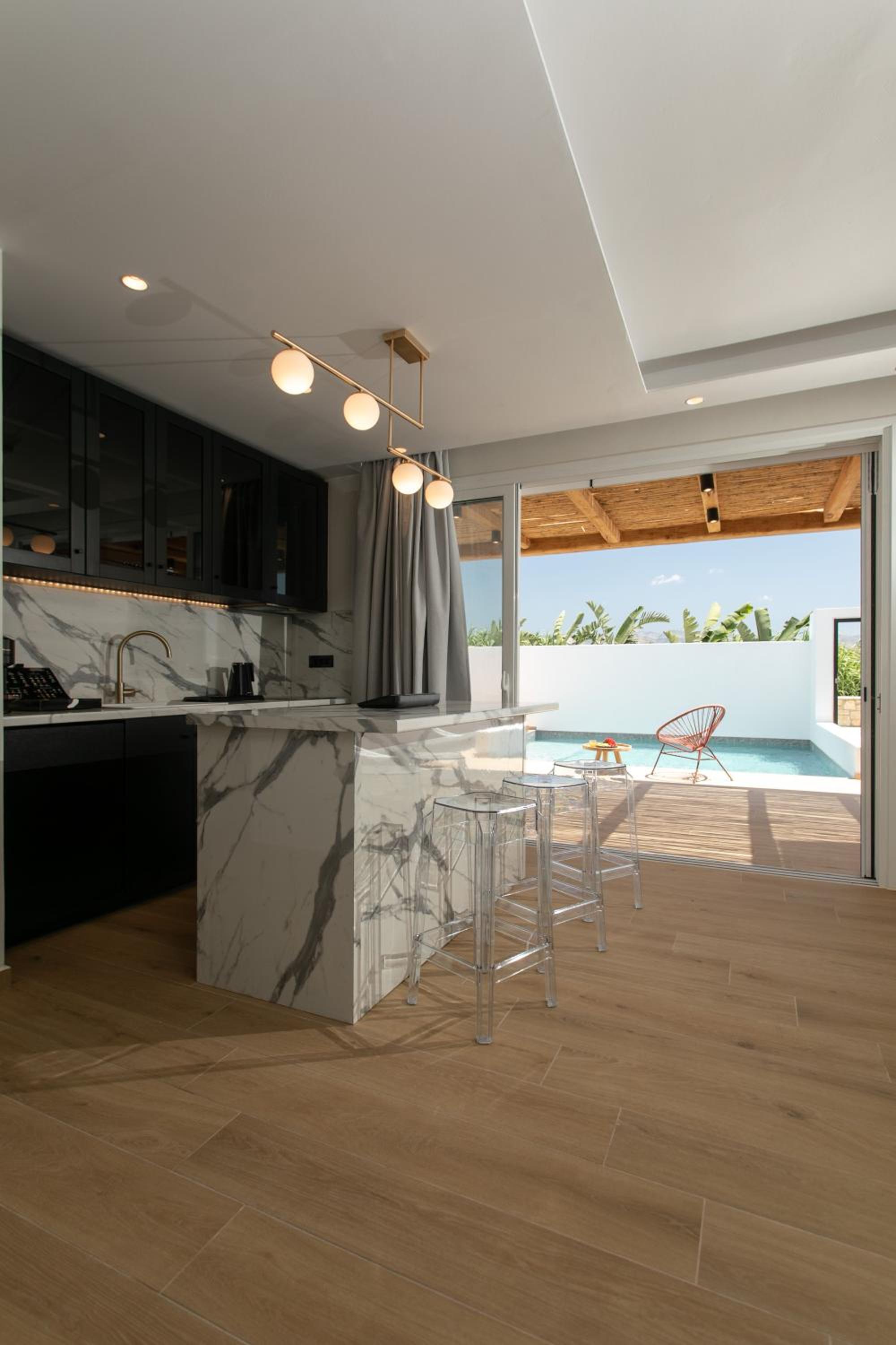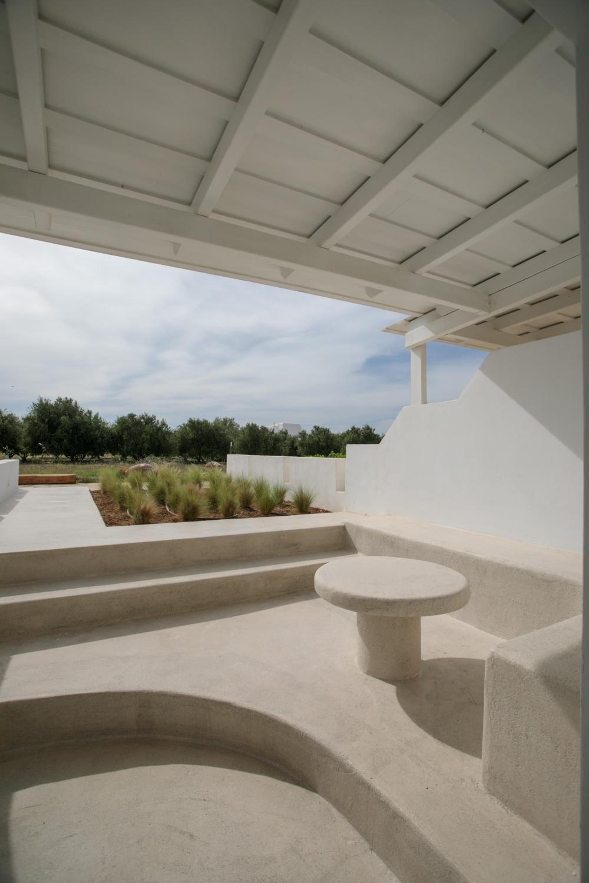 Indulge in the free-form outdoor pool surrounded by olive groves, relax on the sun terrace, and sip on refreshing cocktails from the poolside bar. Enjoy a leisurely day under the sun in this serene setting.