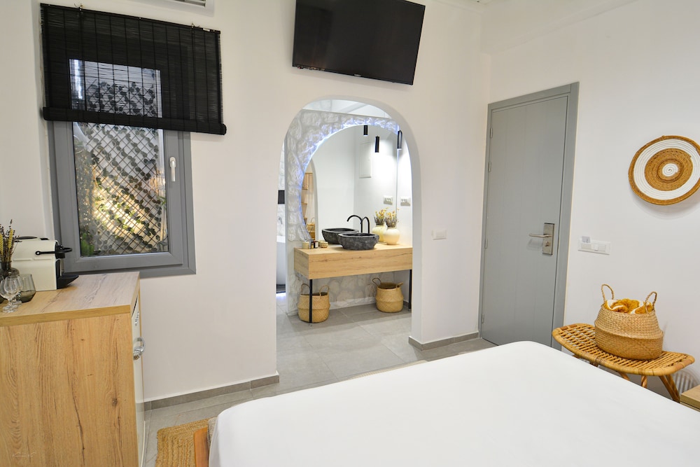 Hotel my bonito reformado bien decorado suite limpia y espaciosa con sala de estar aparte y balcón justo sobre las calles bonitas de mykonos lo único que no puedes entrar antes de las 15;00 pero te cogen las maletas a las 11;00