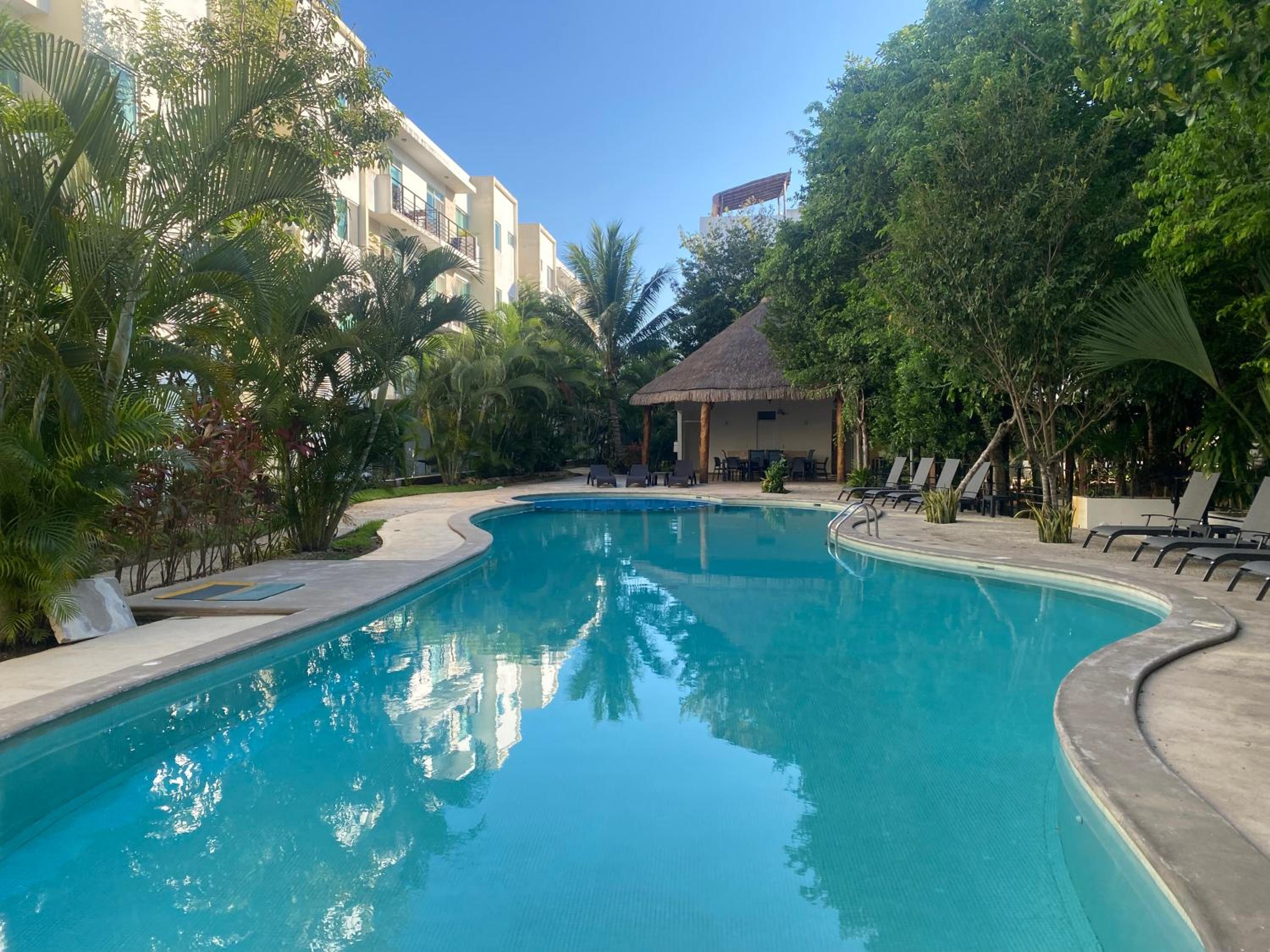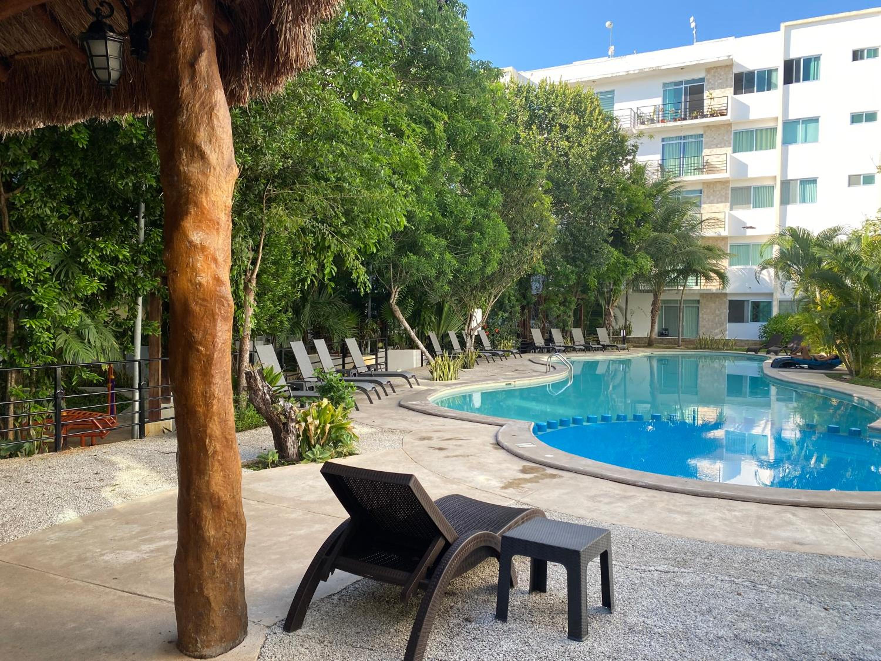 The complex is not in a good location- just the mall 15 minute walk via busy highways so don’t let the name fool you, it’s a taxi ride to anything decent and quite isolating, so get your pesos ready because it will all add up.