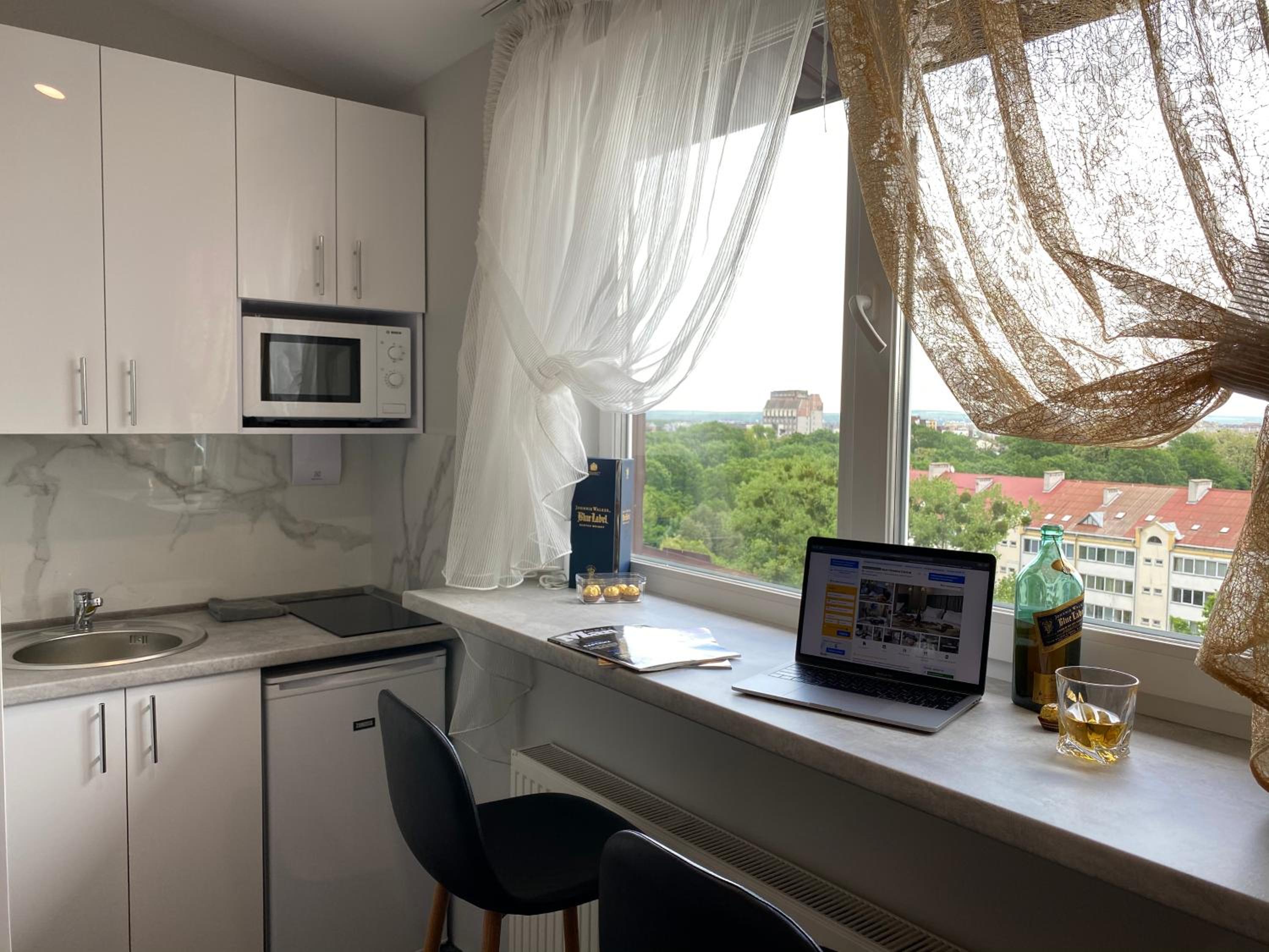 Зручне розташування в центрі, апартаменти #3 з гарним видом на місто і гори (11 поверх). Чисто, є все що потрібно для нетривалого проживання, в загальному тамбурі пральна/сушильна машини - дуже зручно!