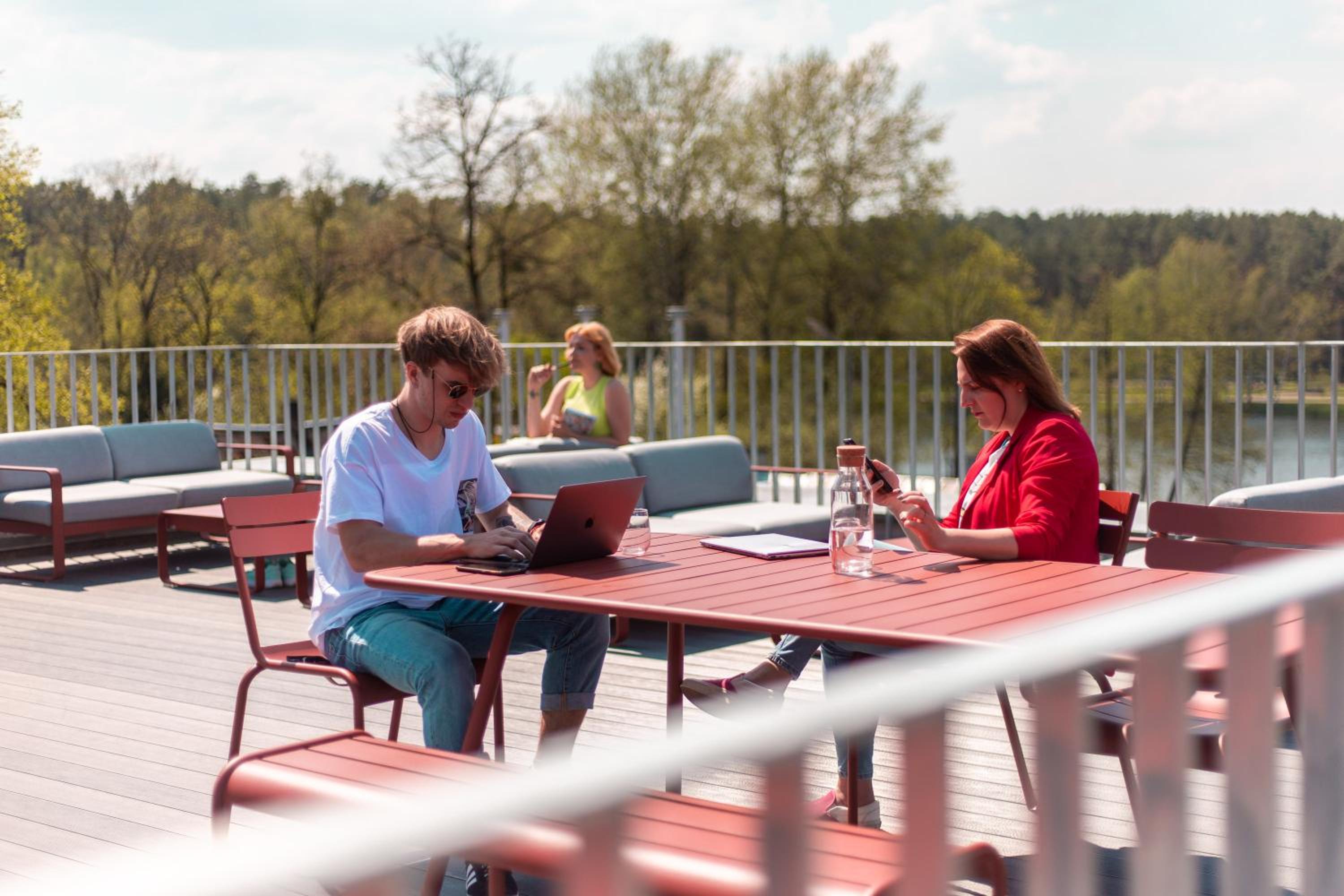 Enjoy the serene garden and picturesque lake views while staying at Tech Spa Coliving&Coworking Spaces.