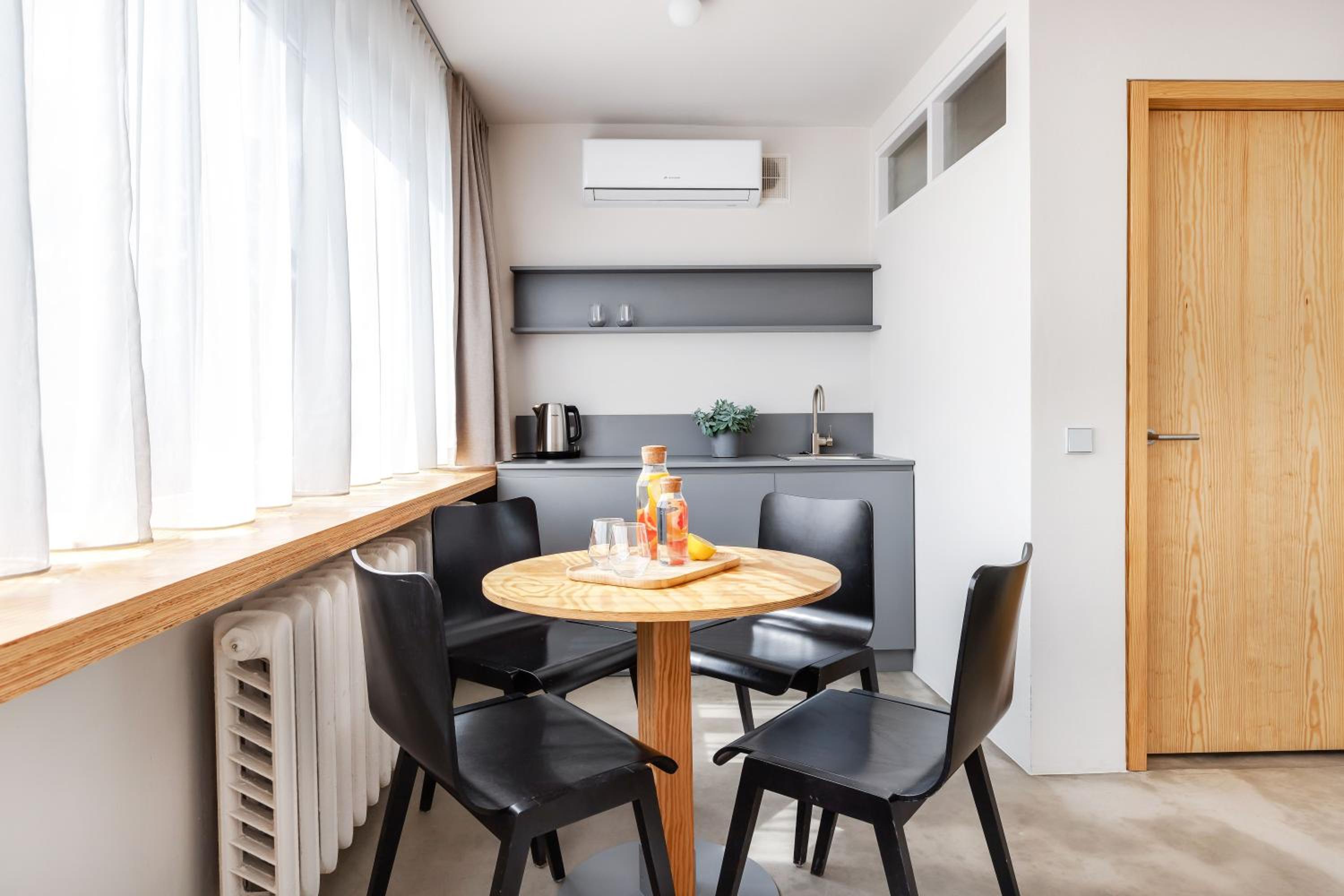 The written rules of quite time after 23:00 o'clock are not enforced or monitored by anyone, so they are non-existent. Coffee in the shared kitchen is 1eur, which is a bit mean. I would say that the accommodation is designed for larger groups, events, workcations. It does not work for individual stays, as balconies are shared by two rooms, so privacy is out of the question. The shared kitchen is taken by families with kids, that spread out throughout the kitchen, so not much space for any one else (not so much an issue of the TechSpa as is it of culture of the people. But still illustrates the issue for solo travelers or couples). It was not too bad for us, as the Bar down stairs did not work, and stayed for one night. Would not stay there for longer as there is too much risk of the stay being noisy with no privacy.