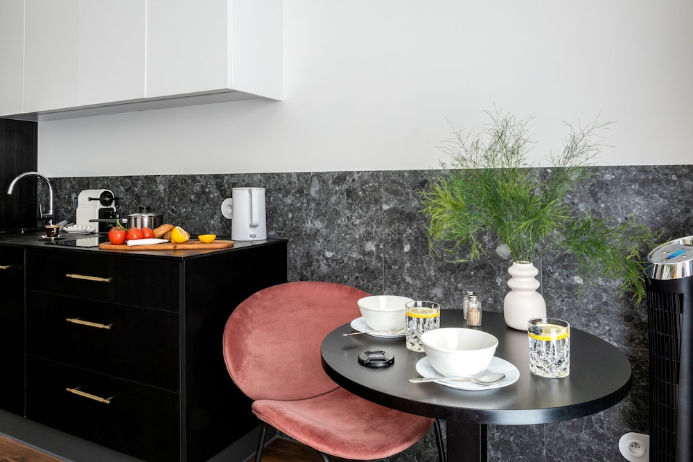 Make yourself at home in uniquely designed guestrooms, equipped with kitchenettes and modern amenities for a comfortable stay.