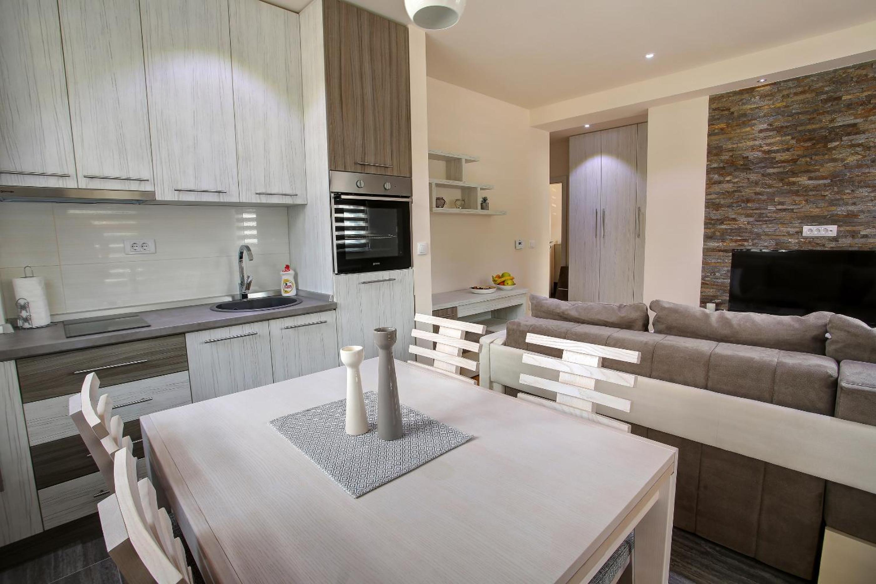 -apartman je izuzetno prljav, posteljina je bila cista ali dnevni boravak i kuhinja ne, ostavit cu fotografije u opisu. Smatram da je po pravilu ostaviti cisto i oprano sudje, kao i plocu za kuhanja koja je bila masna.