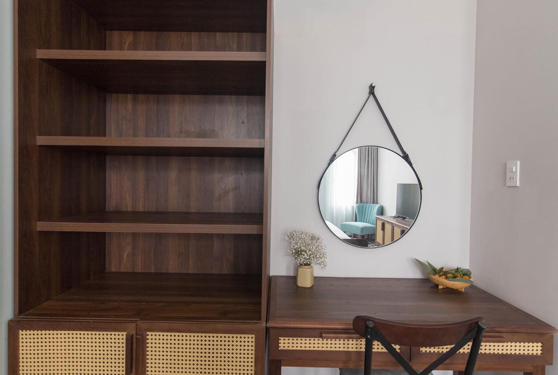 An amazing place, the rooms are like new and very comfortable. An adequate closet for hanging clothes and a couple shelves. The shower has a door on it so it doesn't get the bathroom wet all over! A shared kitchen with refrigerator space, cooking stove top, kitchenware, etc. Water filter for unlimited free filtered water for your room. They have a washer and dryer and do your laundry for you for a small fee. A coffee shop with juice and smoothies on the first floor. The staff are excellent. And the manager, Jamie (English name), is fantastic! Extremely helpful for whatever is needed. Also, excellent location. And a very nice pickleball court just a 15 minute walk.