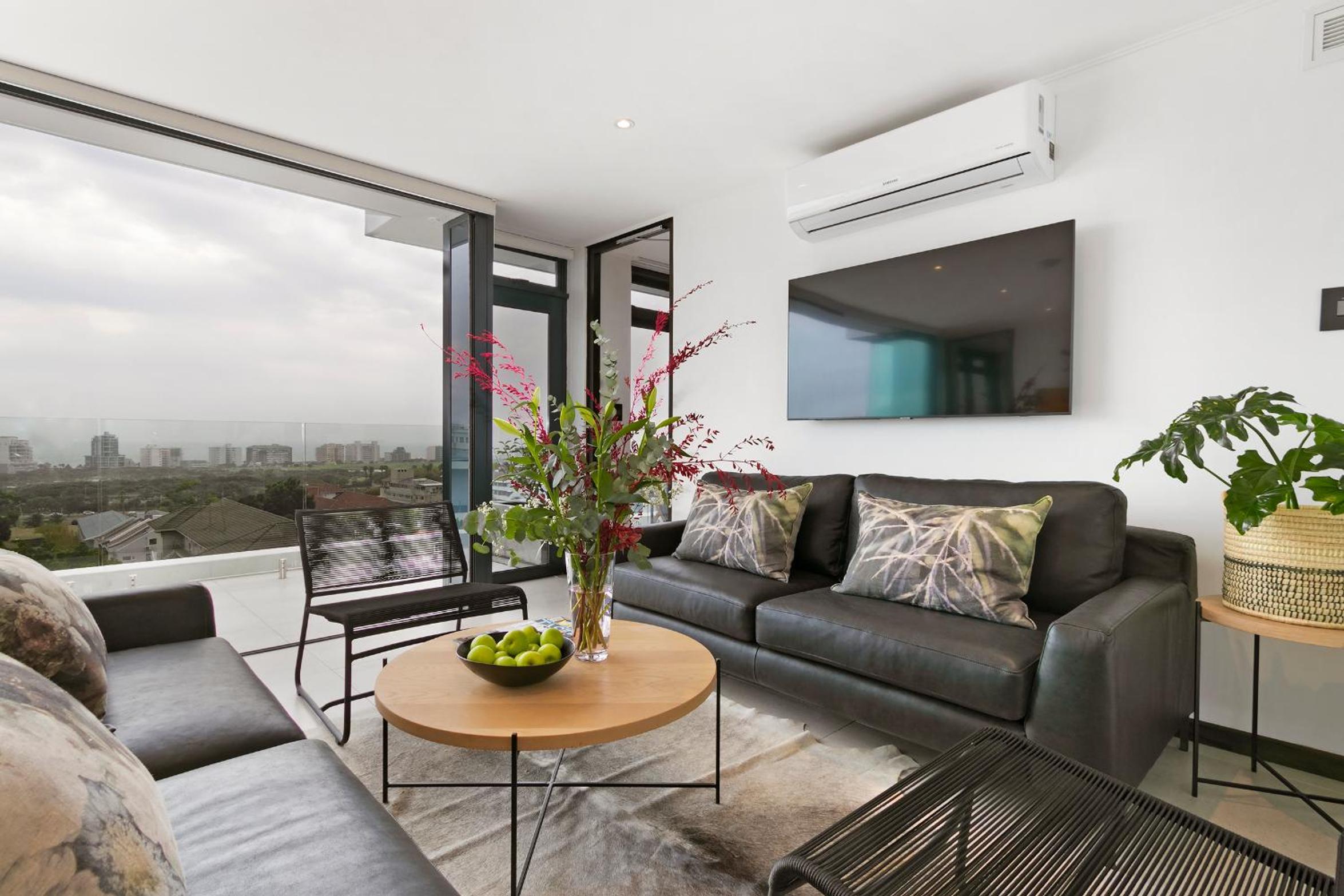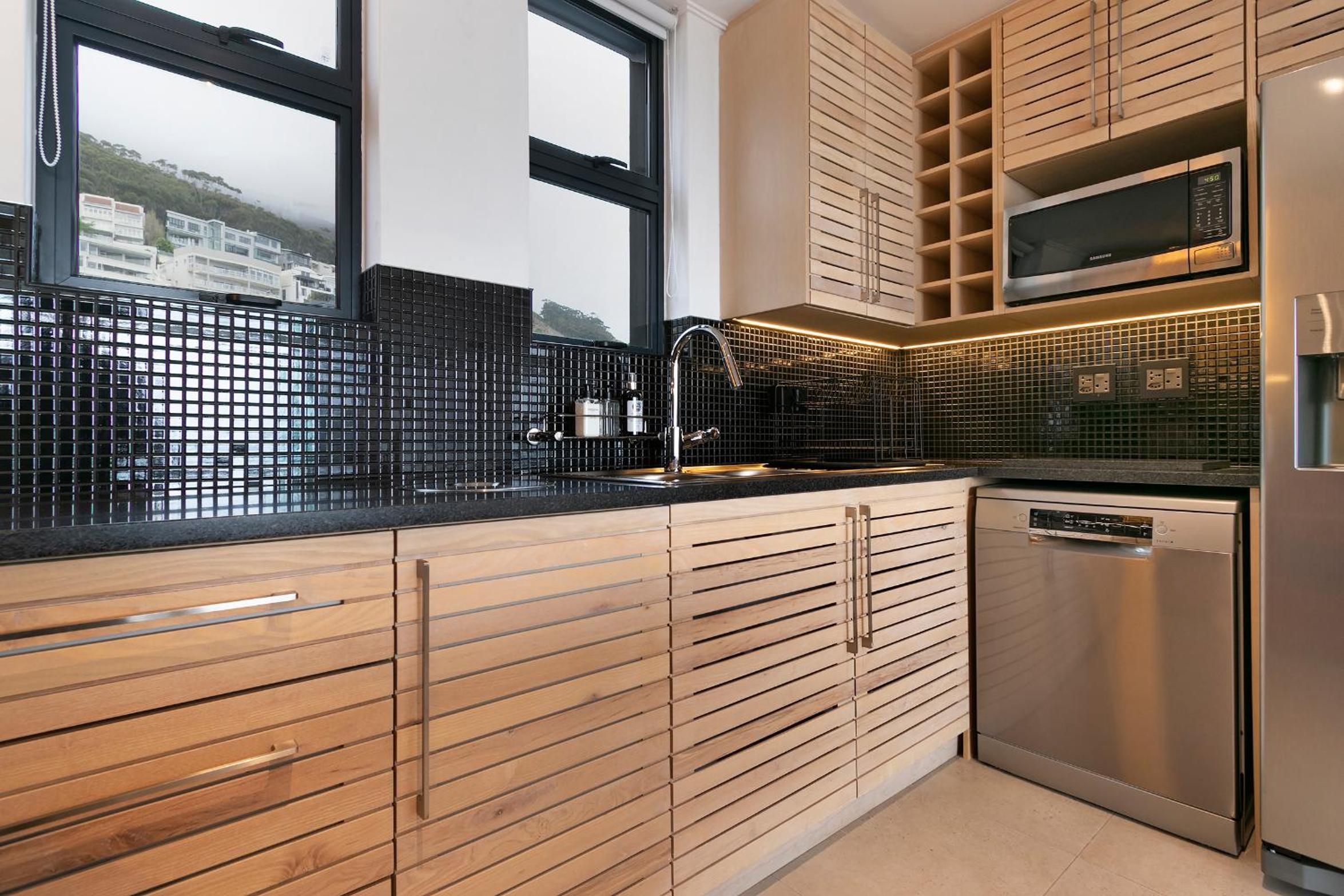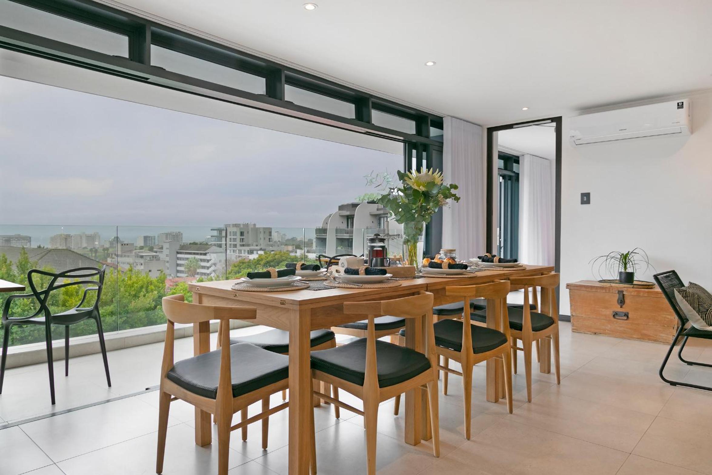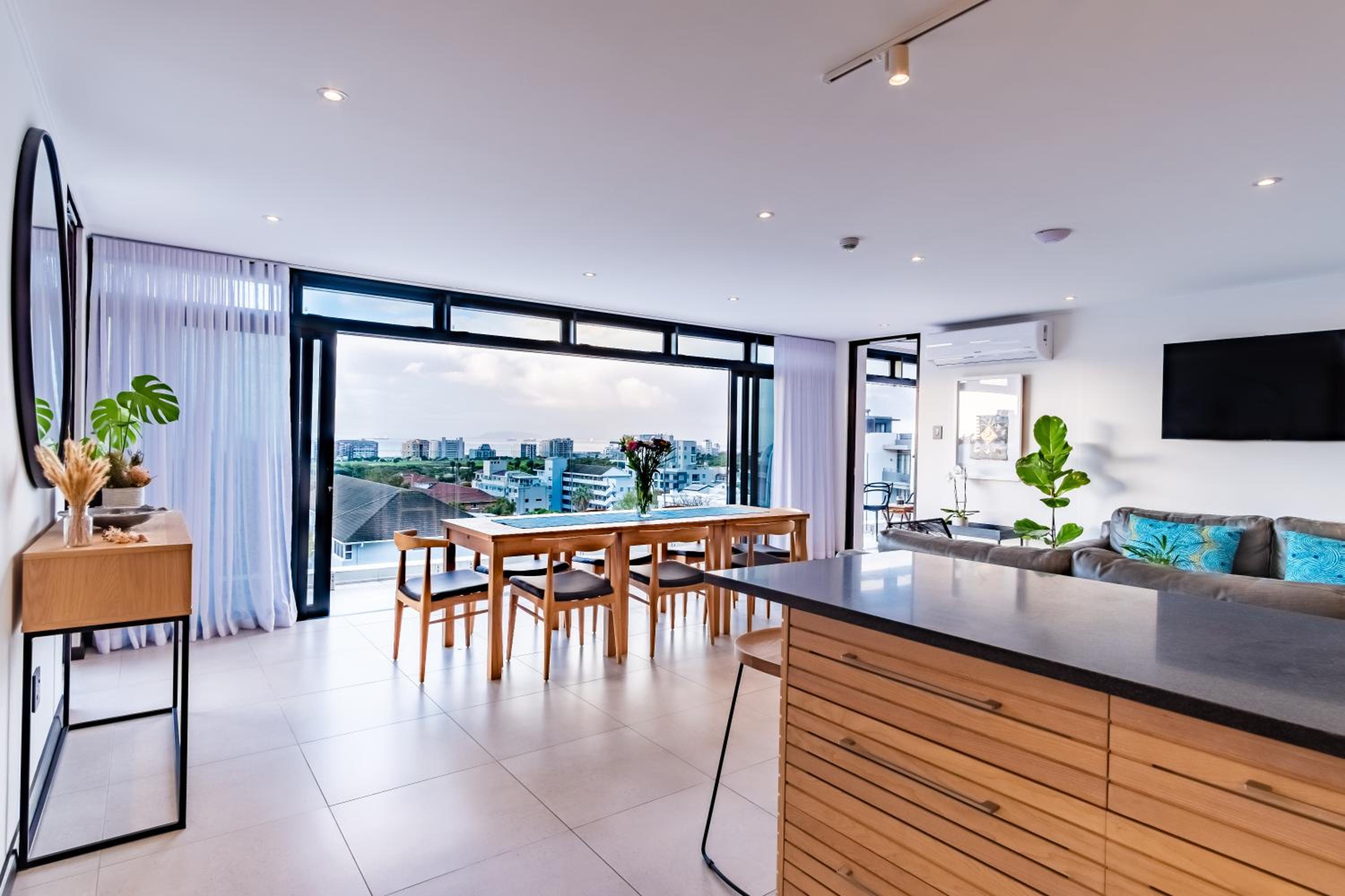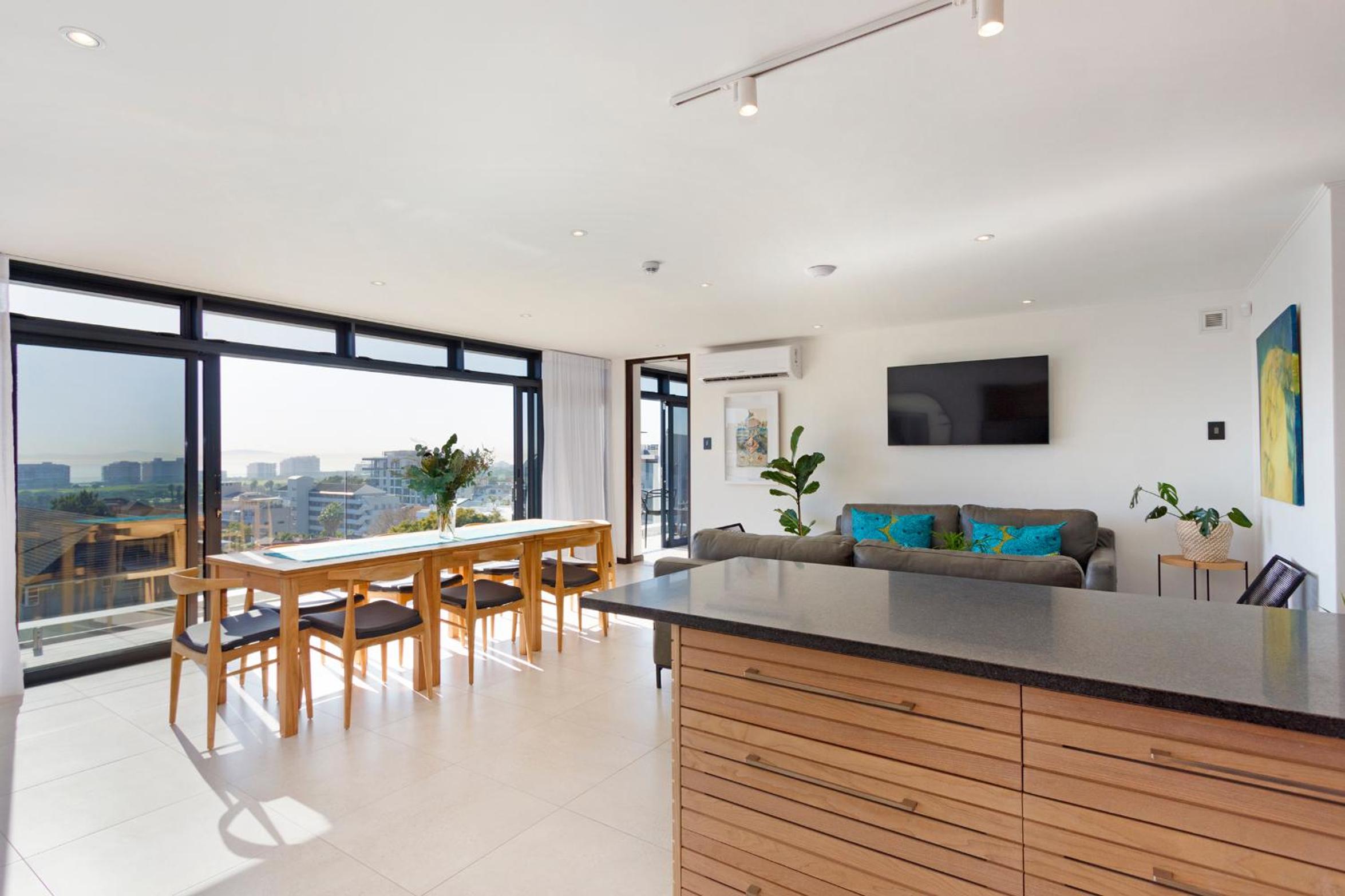 Clean and spacious, all rooms had their own ensuite bathrooms which is a huge plus. Enough storage space and lots of kitchen equipment. Gorgeous view of the ocean and sea point. Central yet still in a quiet enough area so not noisy.