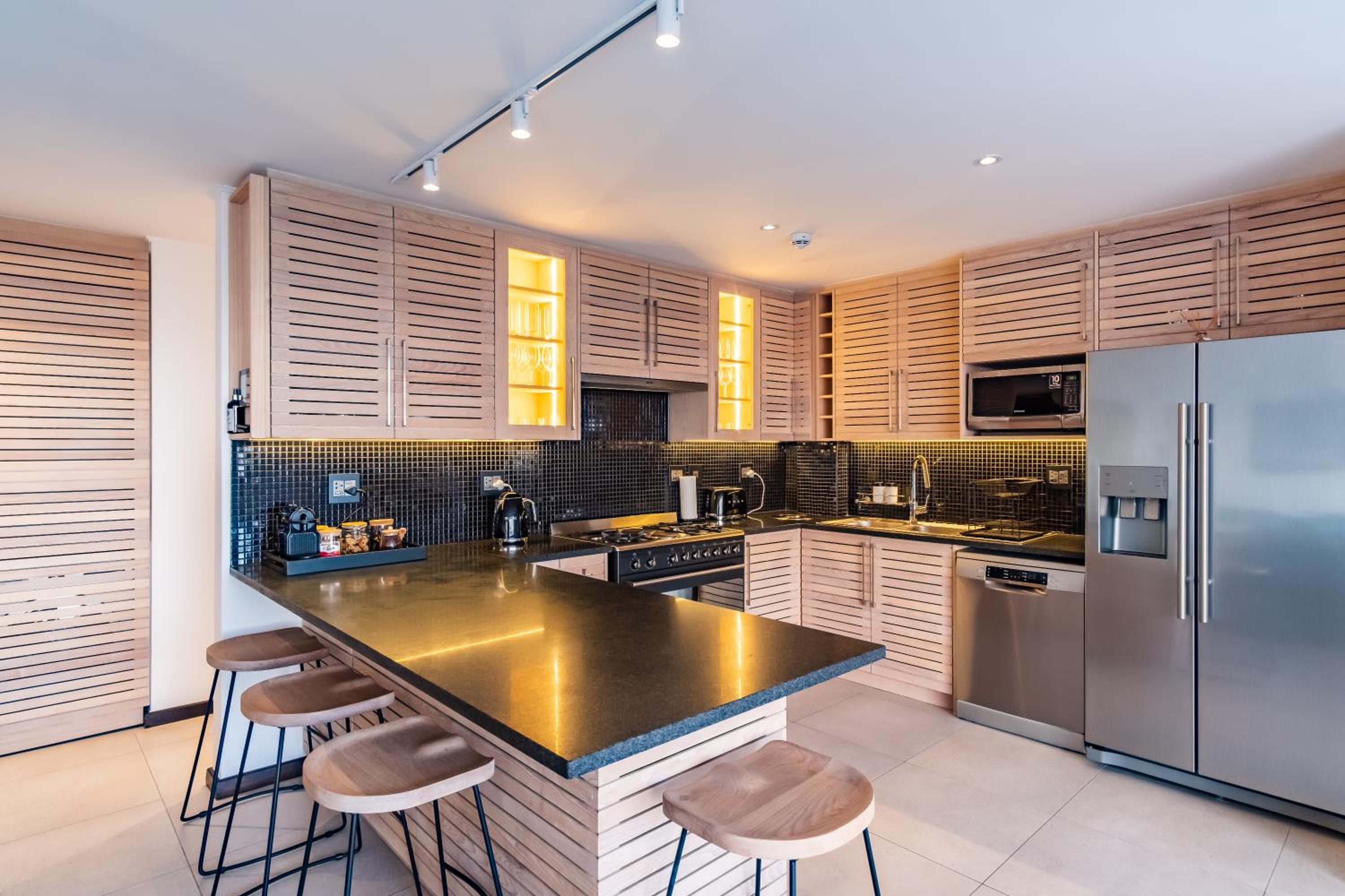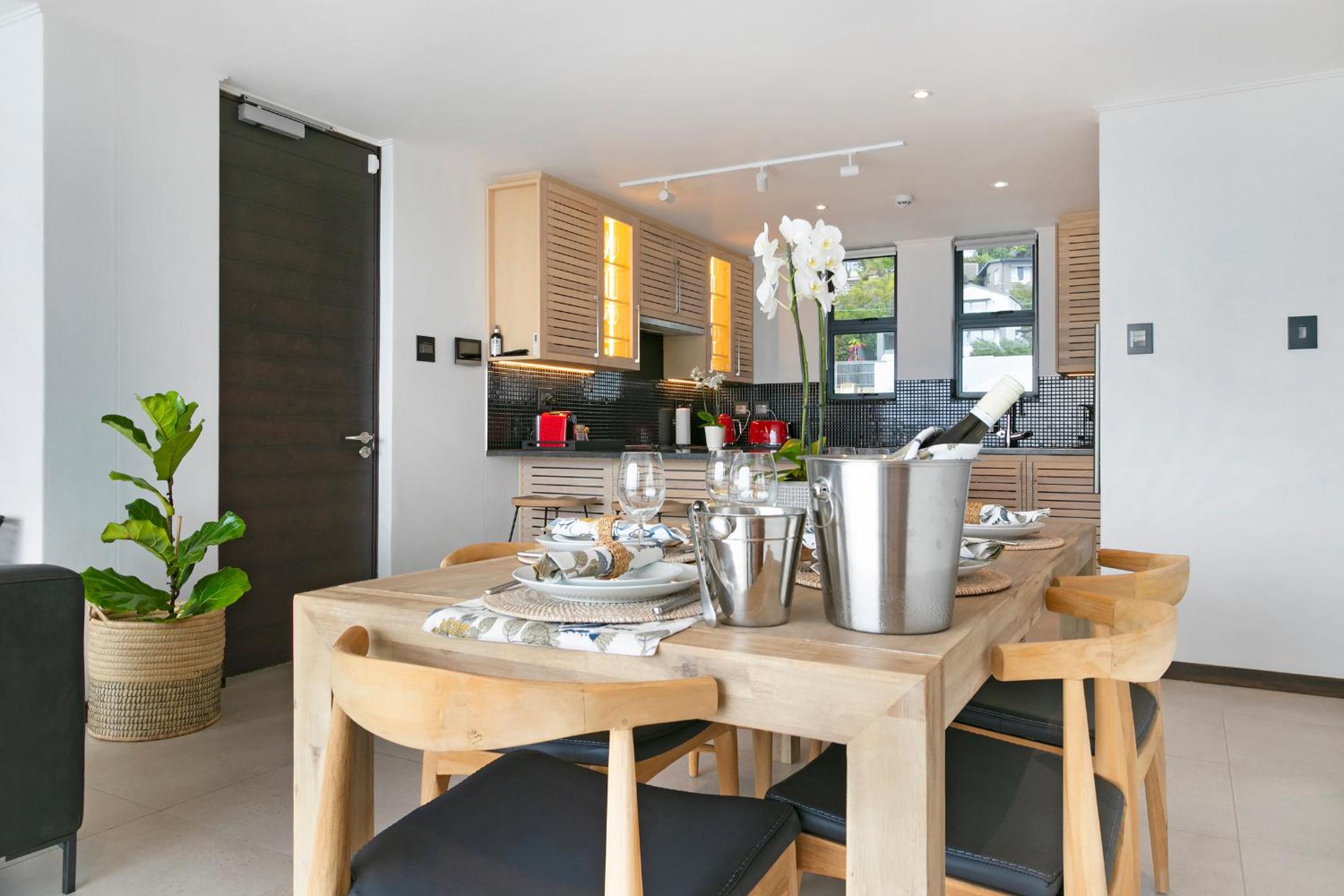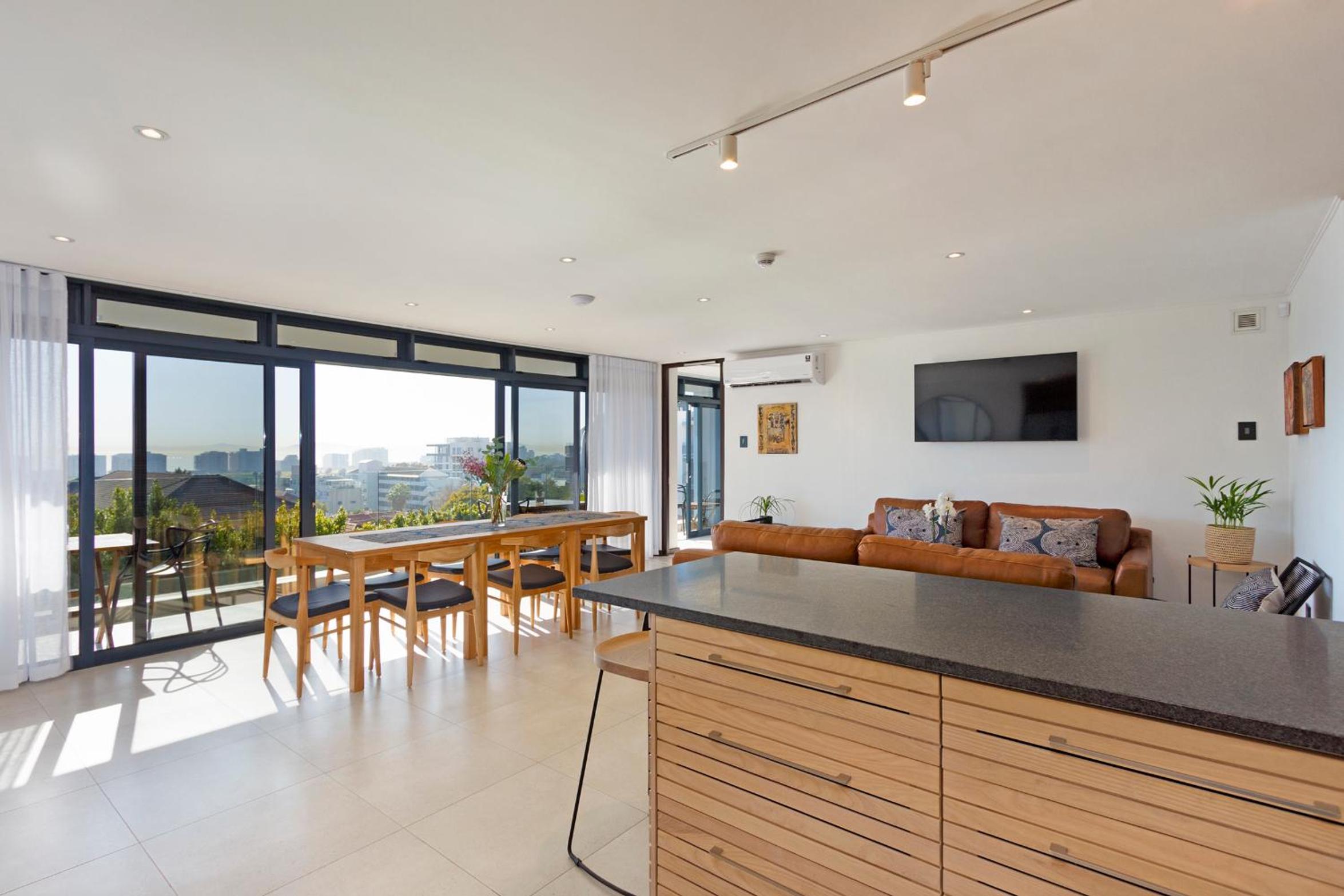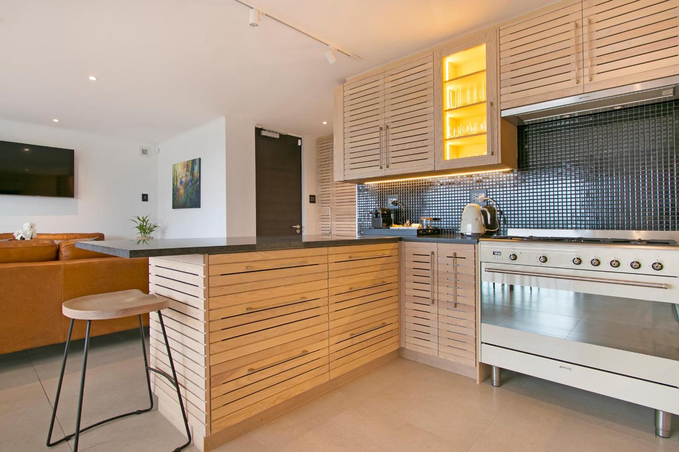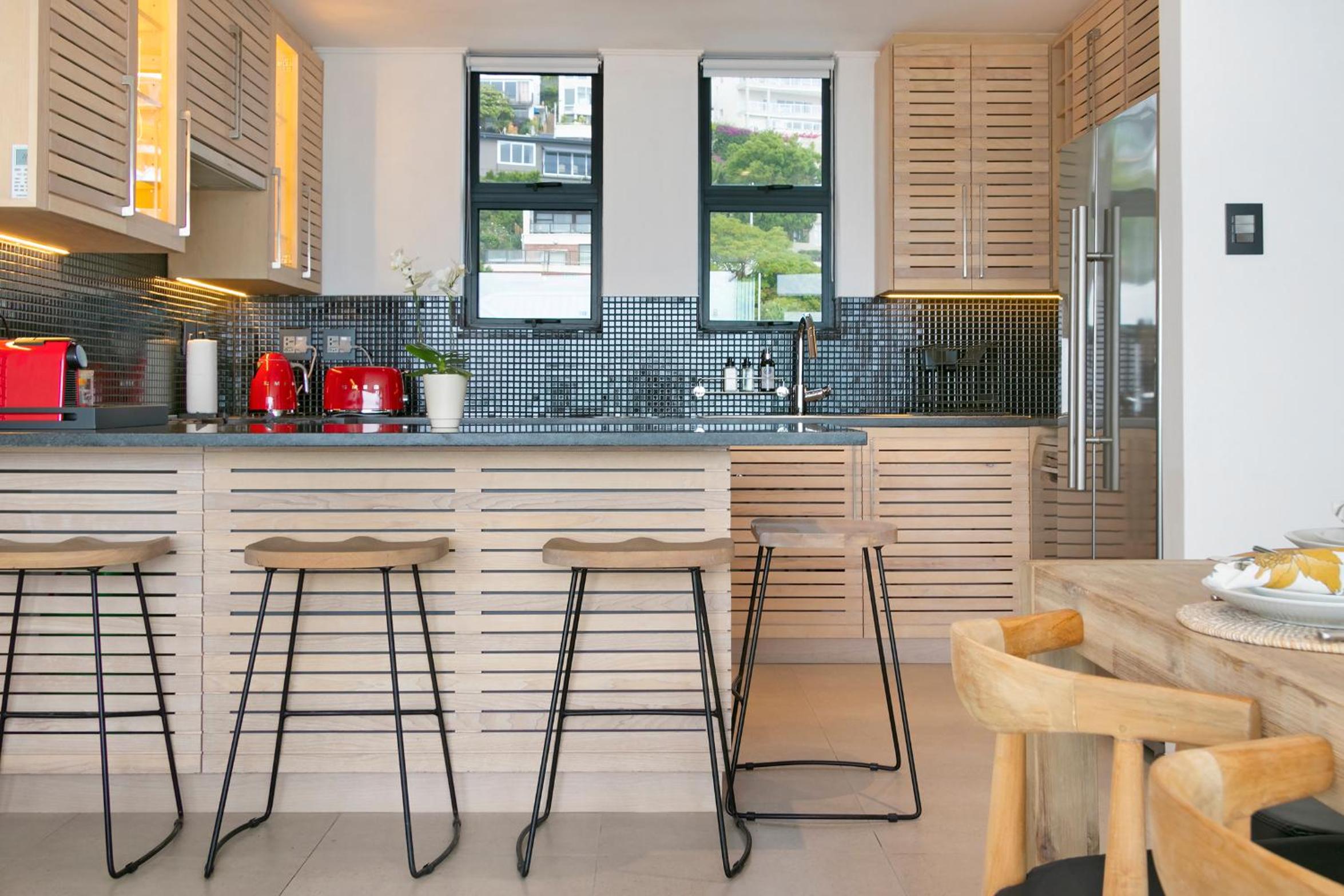 Clean and spacious, all rooms had their own ensuite bathrooms which is a huge plus. Enough storage space and lots of kitchen equipment. Gorgeous view of the ocean and sea point. Central yet still in a quiet enough area so not noisy.