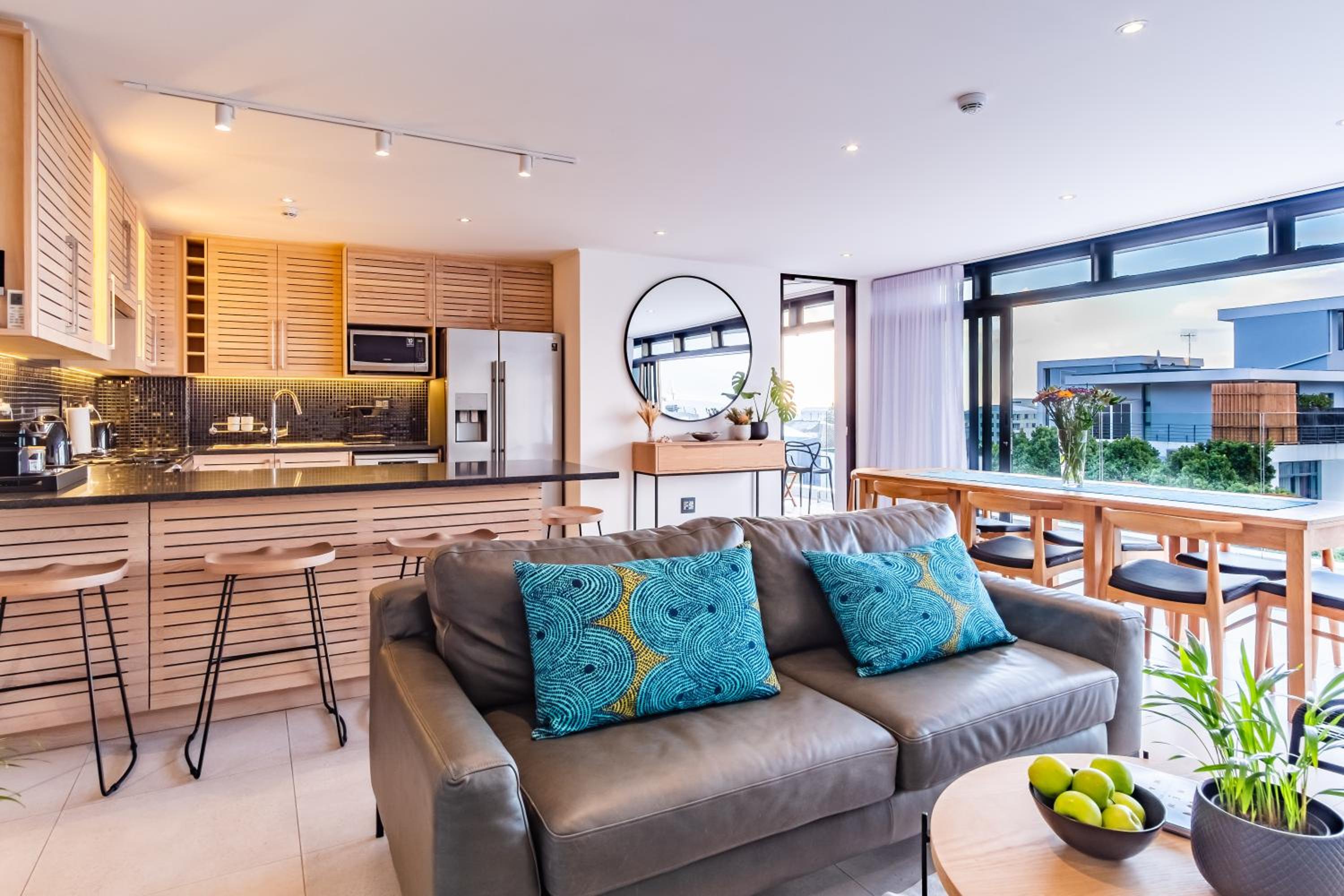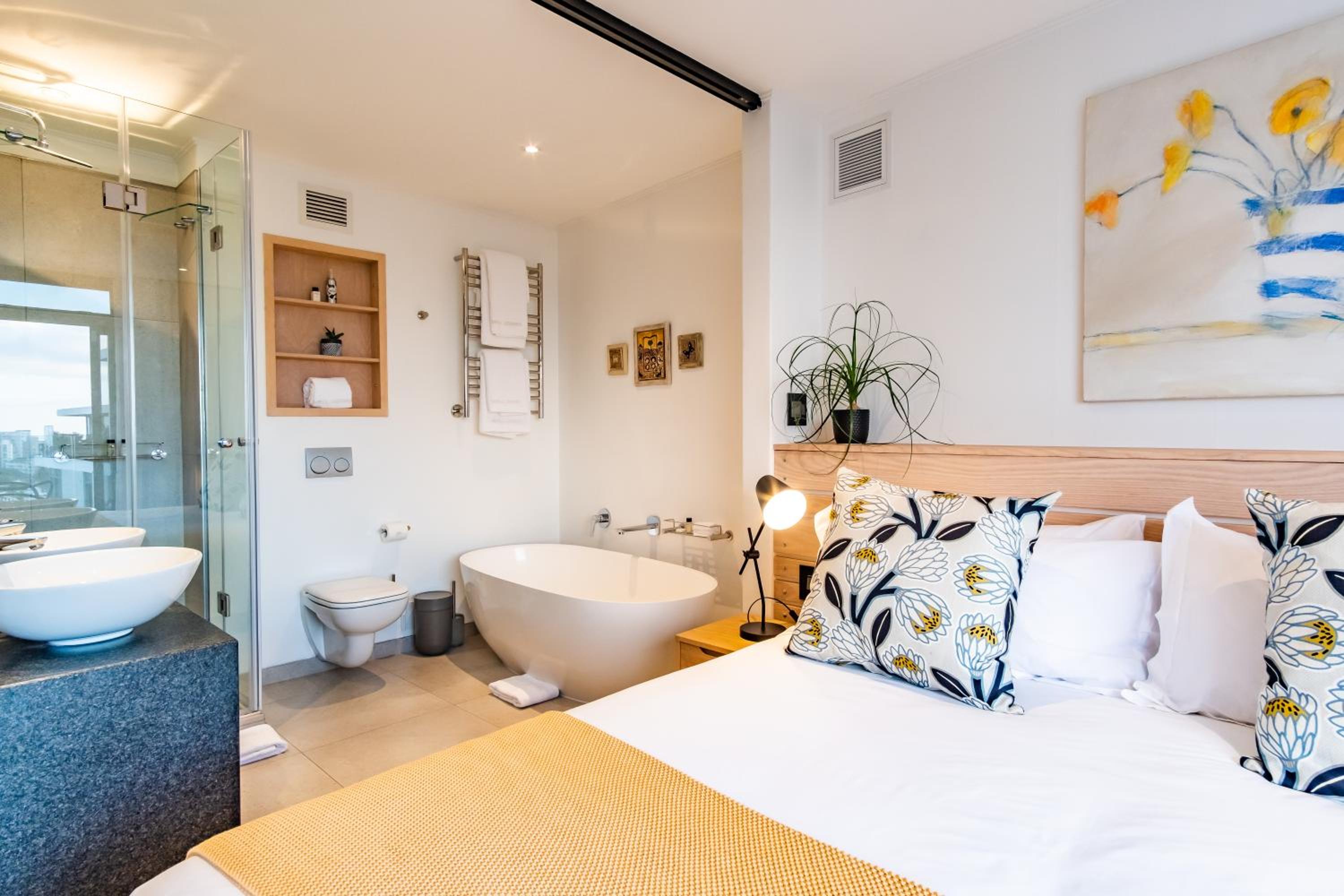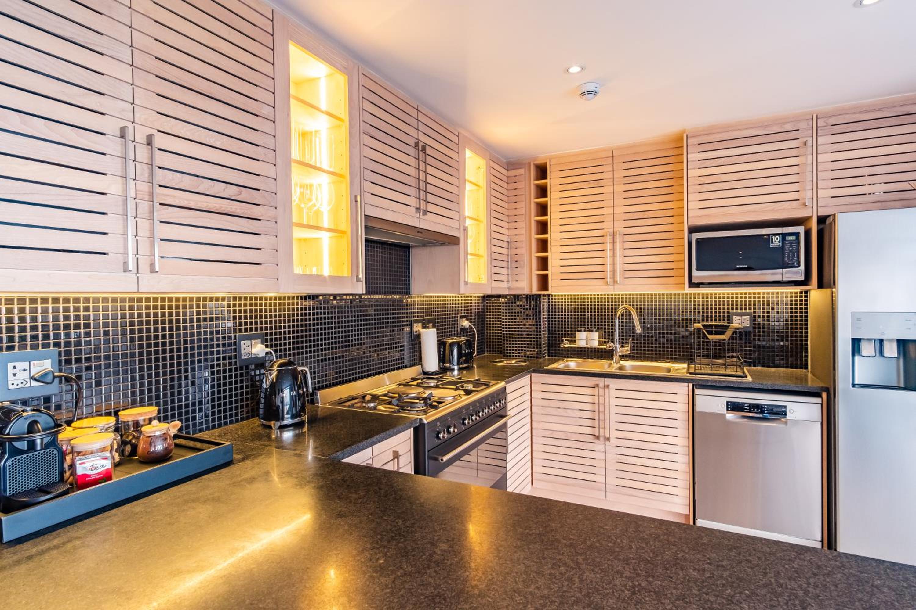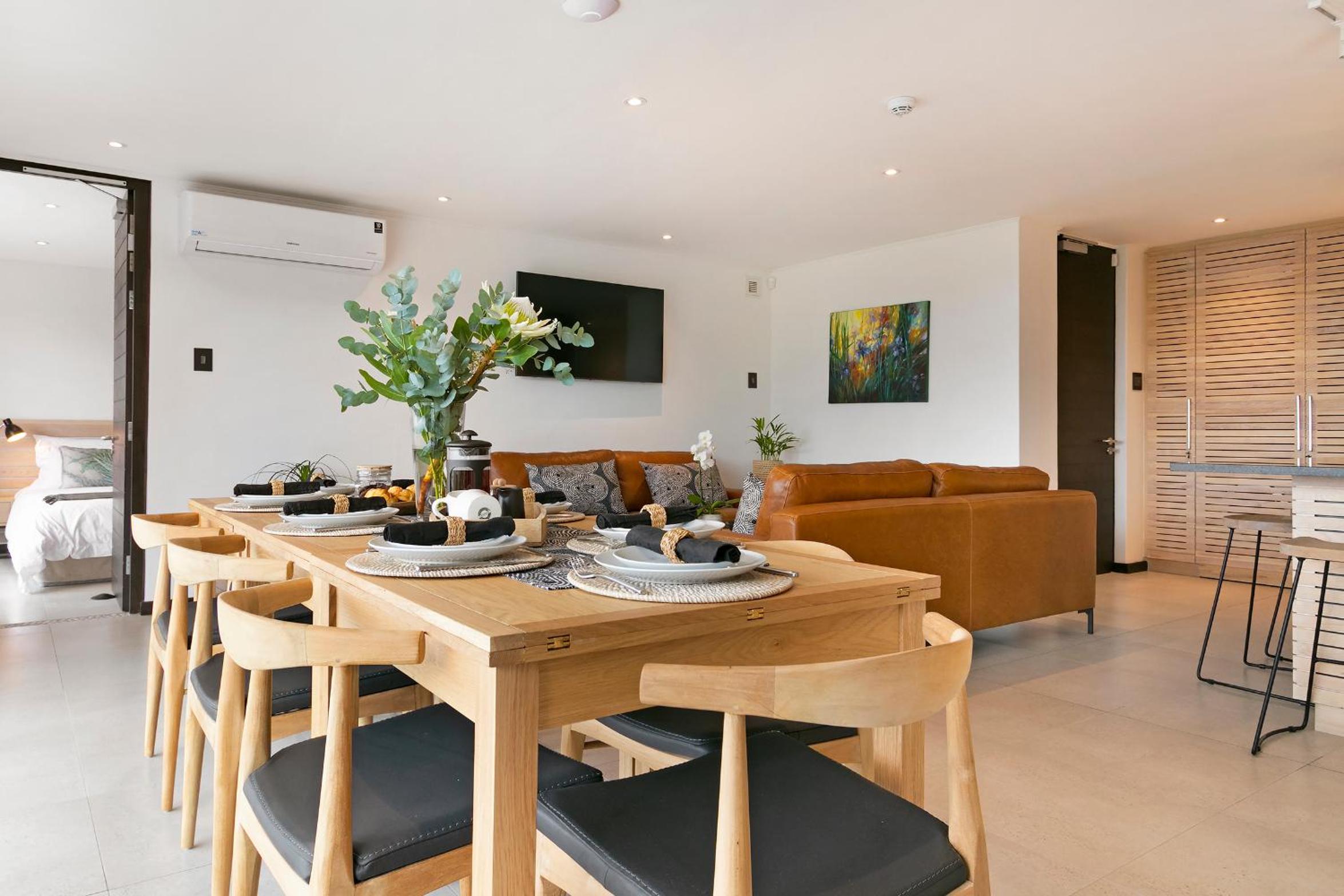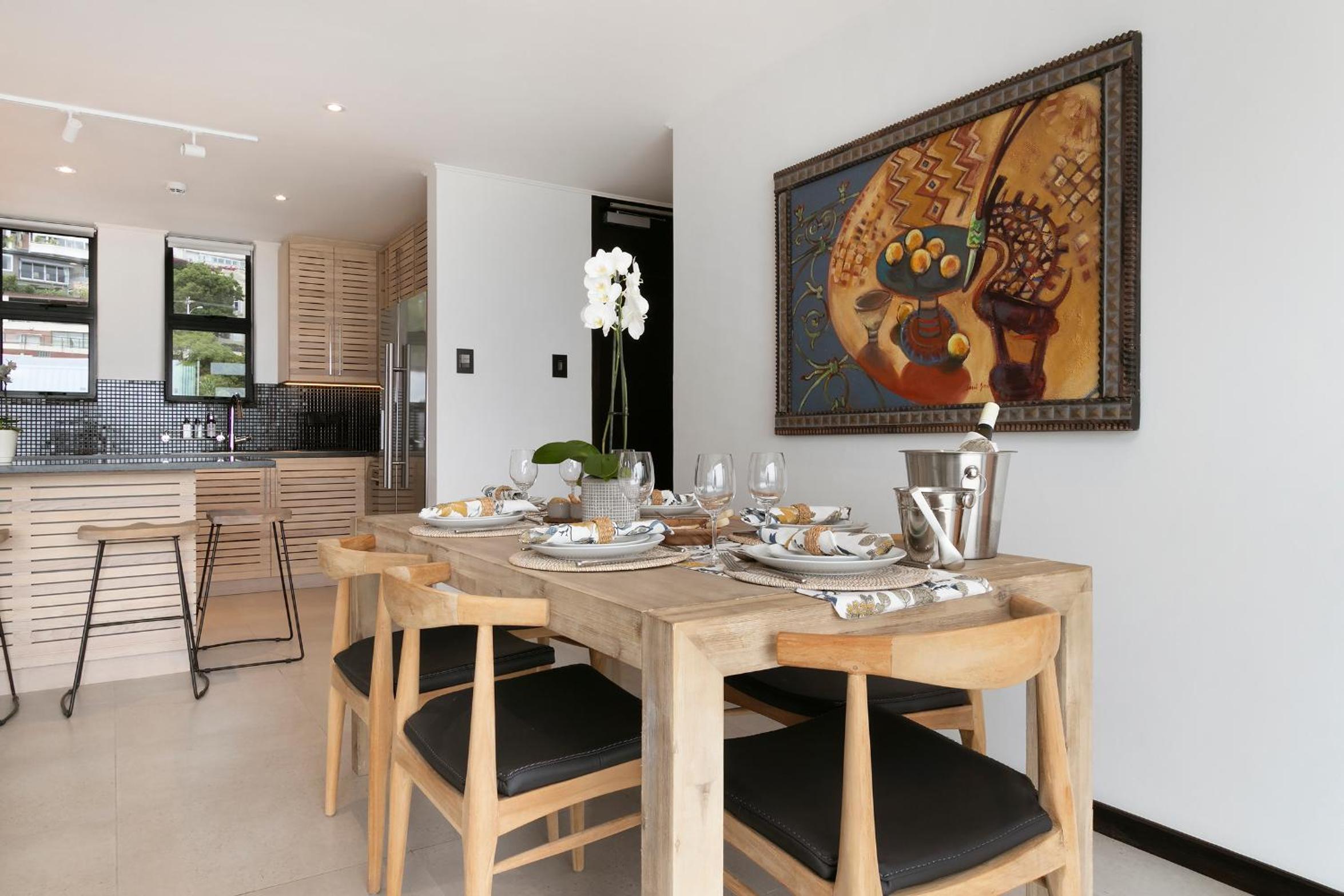Clean and spacious, all rooms had their own ensuite bathrooms which is a huge plus. Enough storage space and lots of kitchen equipment. Gorgeous view of the ocean and sea point. Central yet still in a quiet enough area so not noisy.