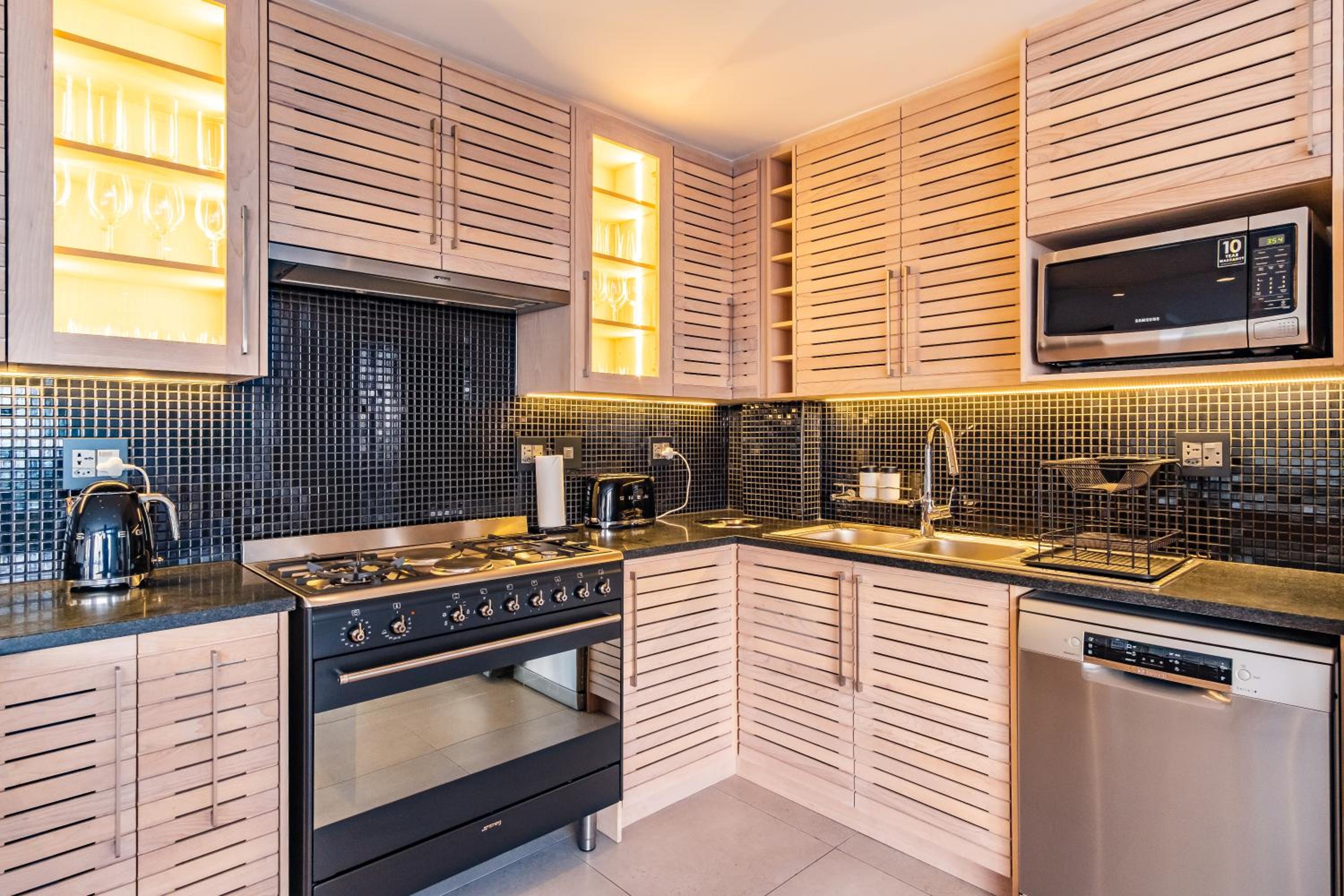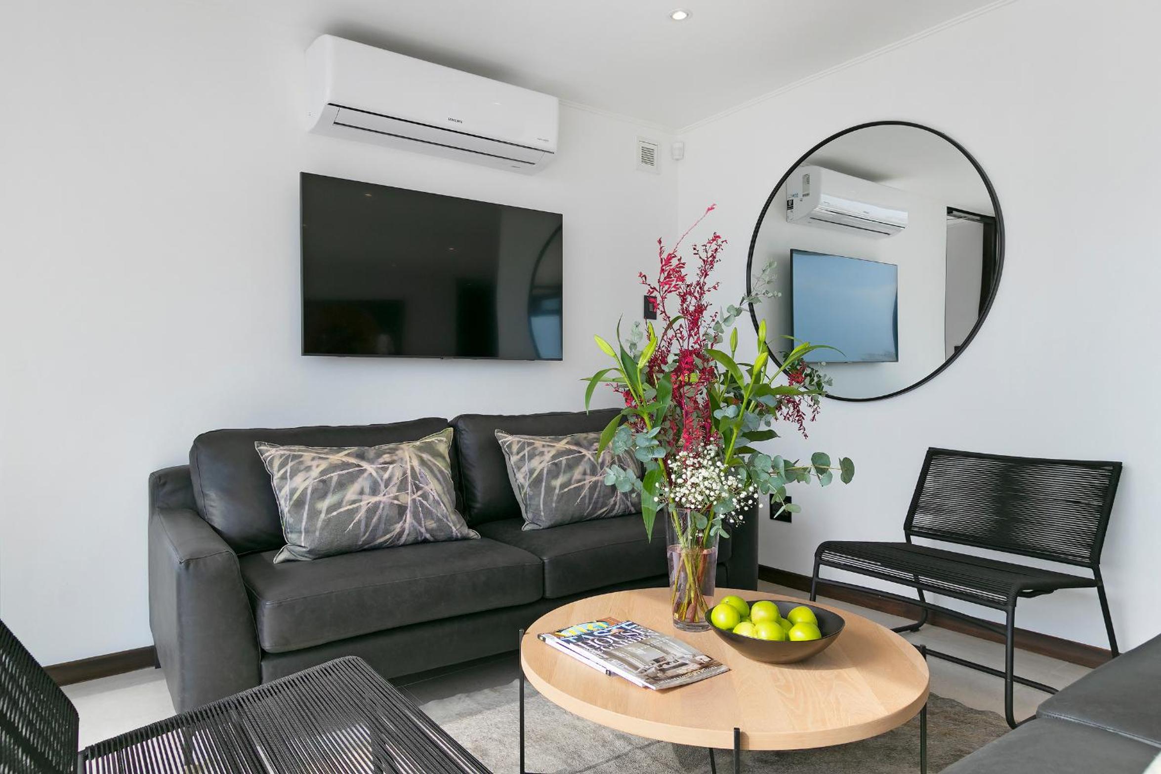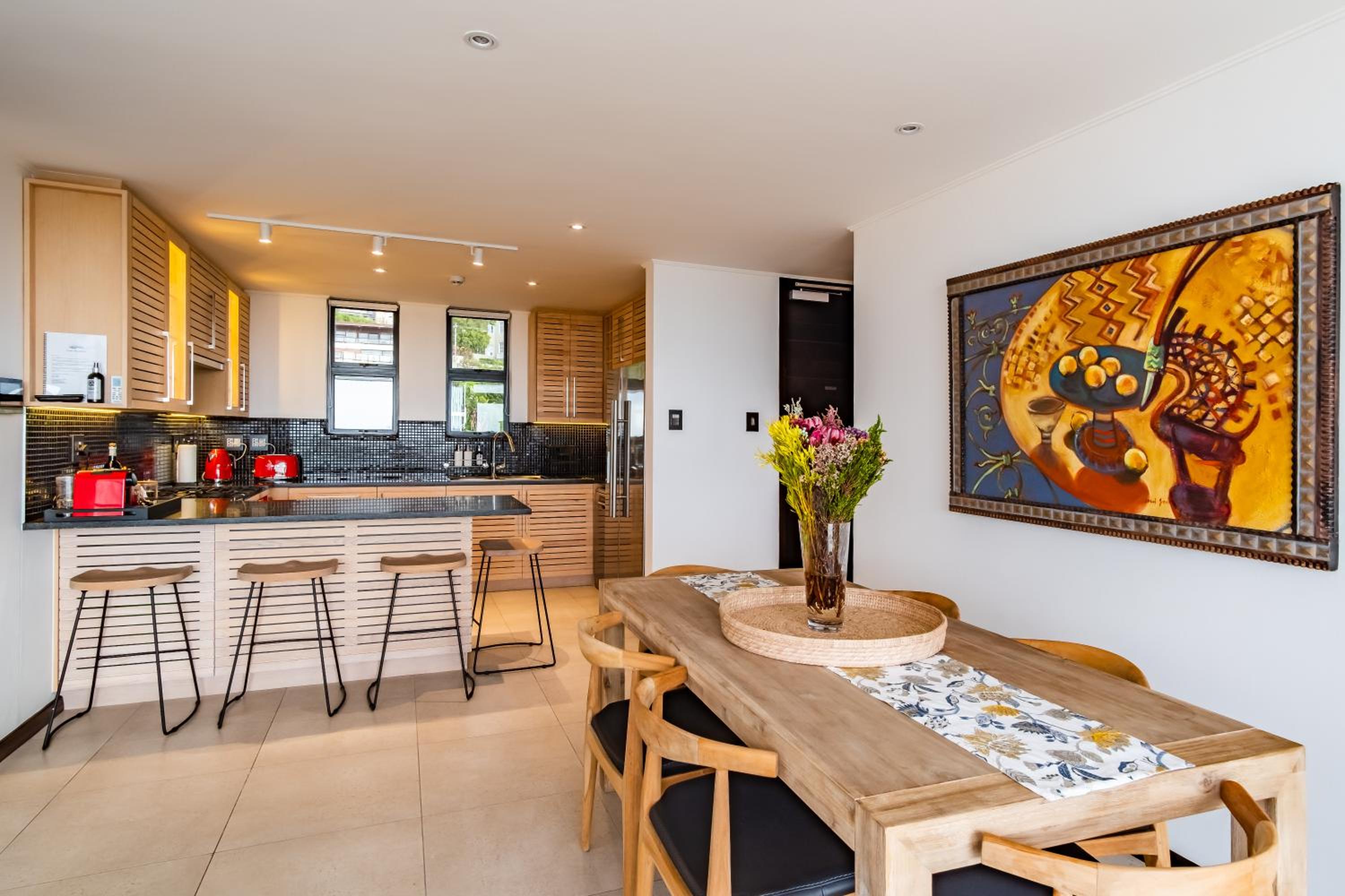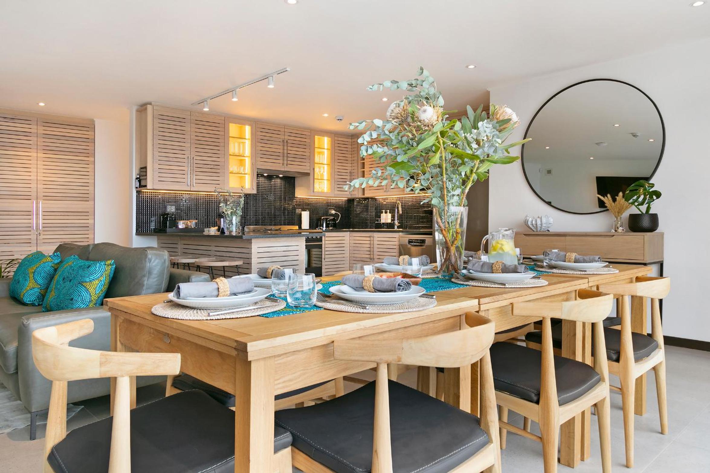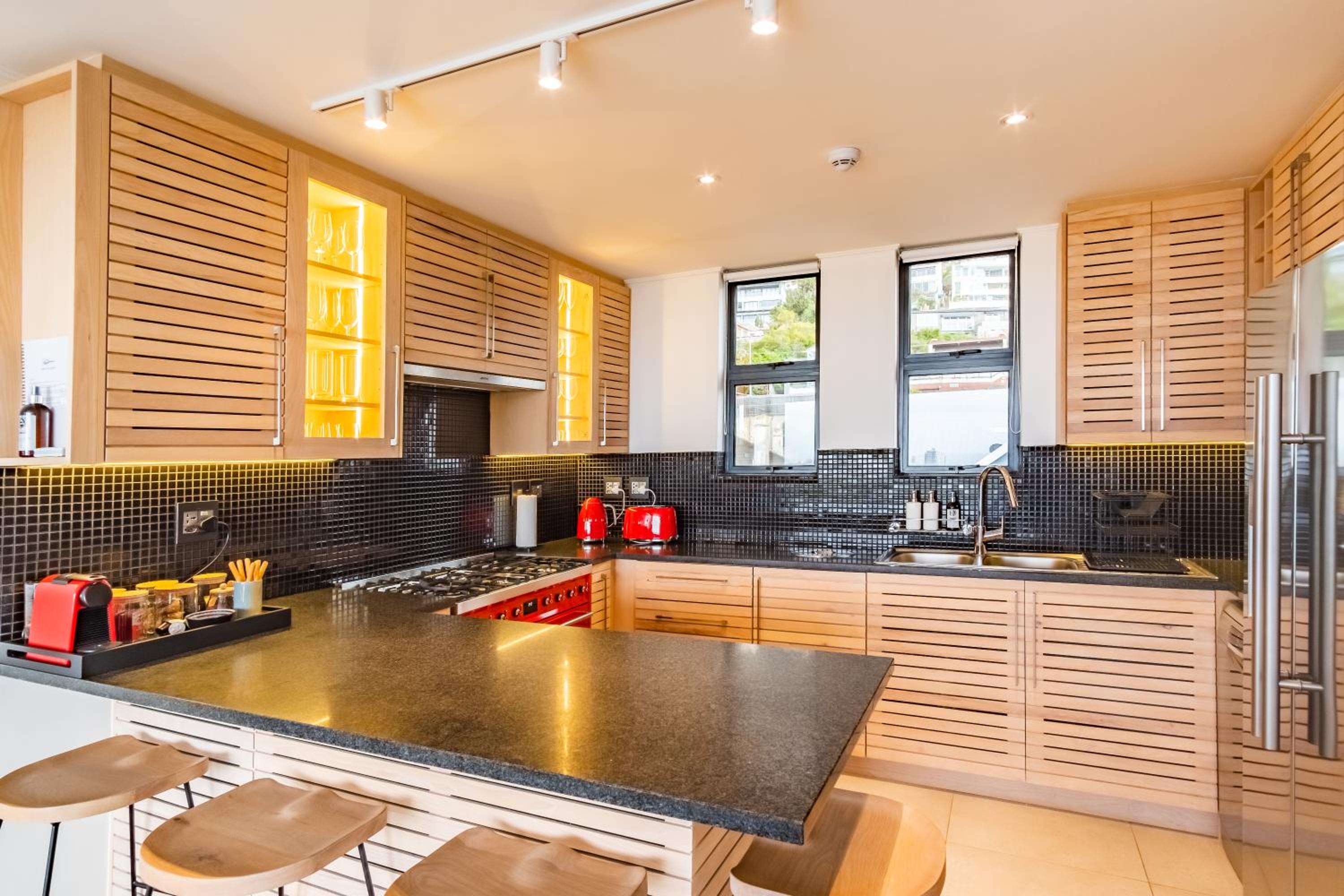 Clean and spacious, all rooms had their own ensuite bathrooms which is a huge plus. Enough storage space and lots of kitchen equipment. Gorgeous view of the ocean and sea point. Central yet still in a quiet enough area so not noisy.