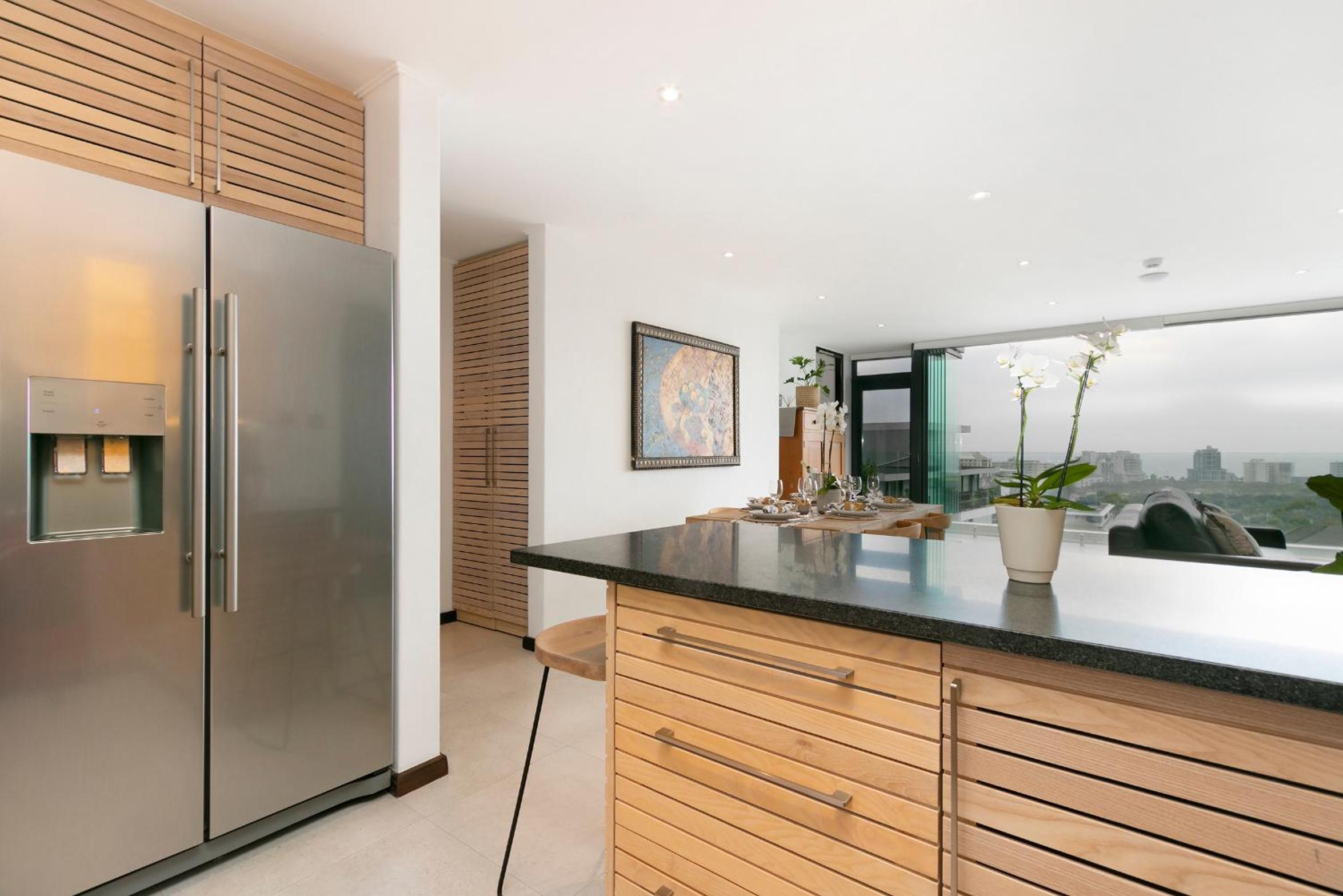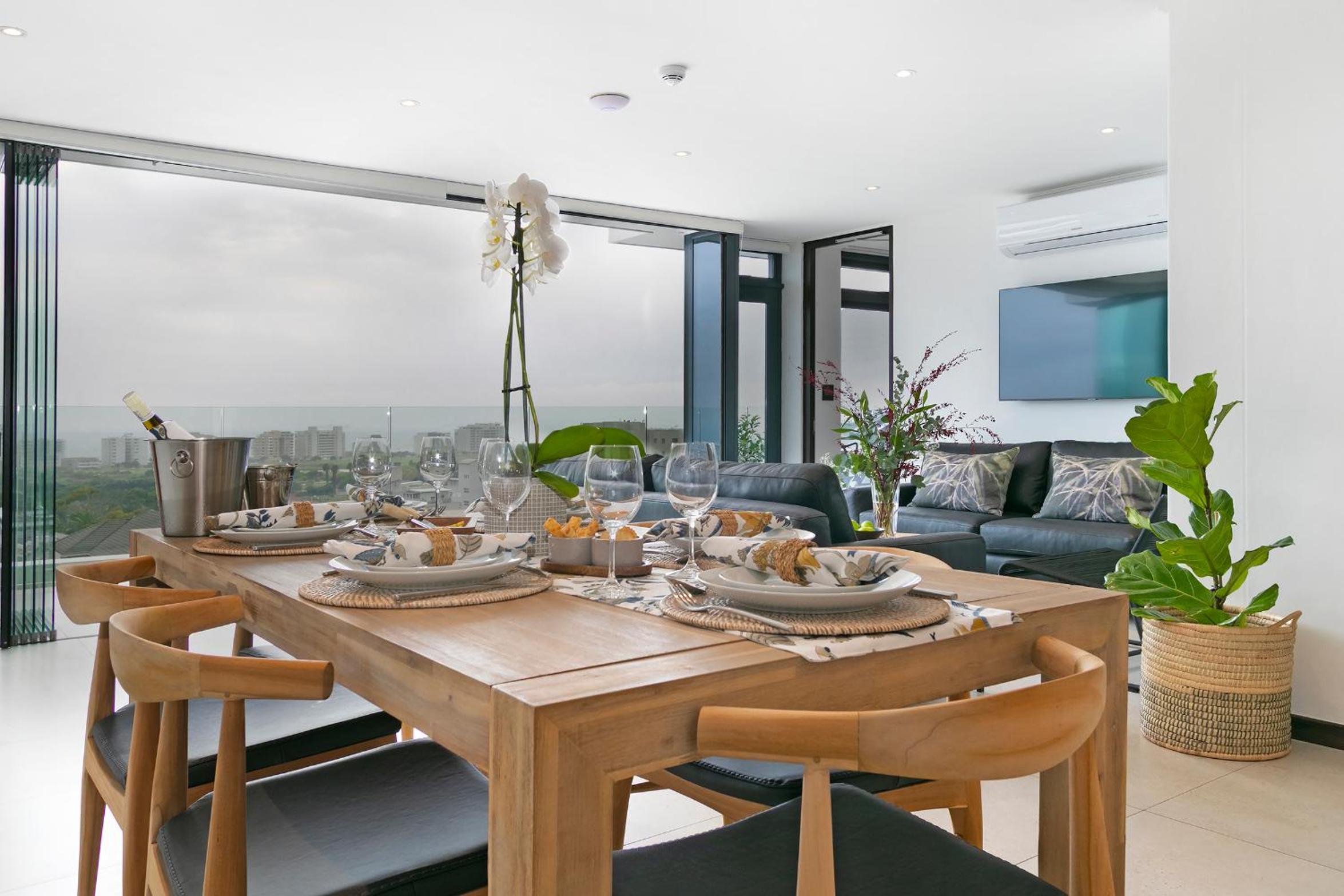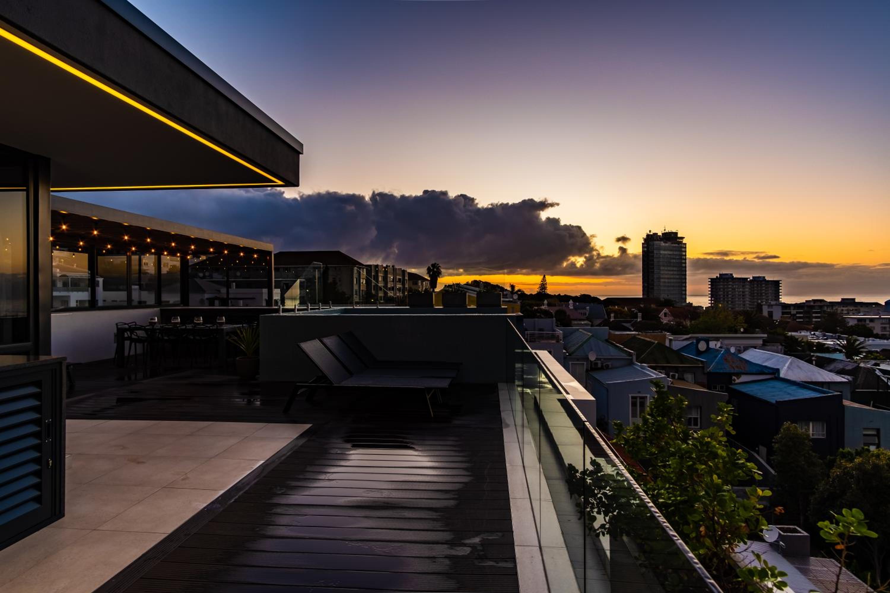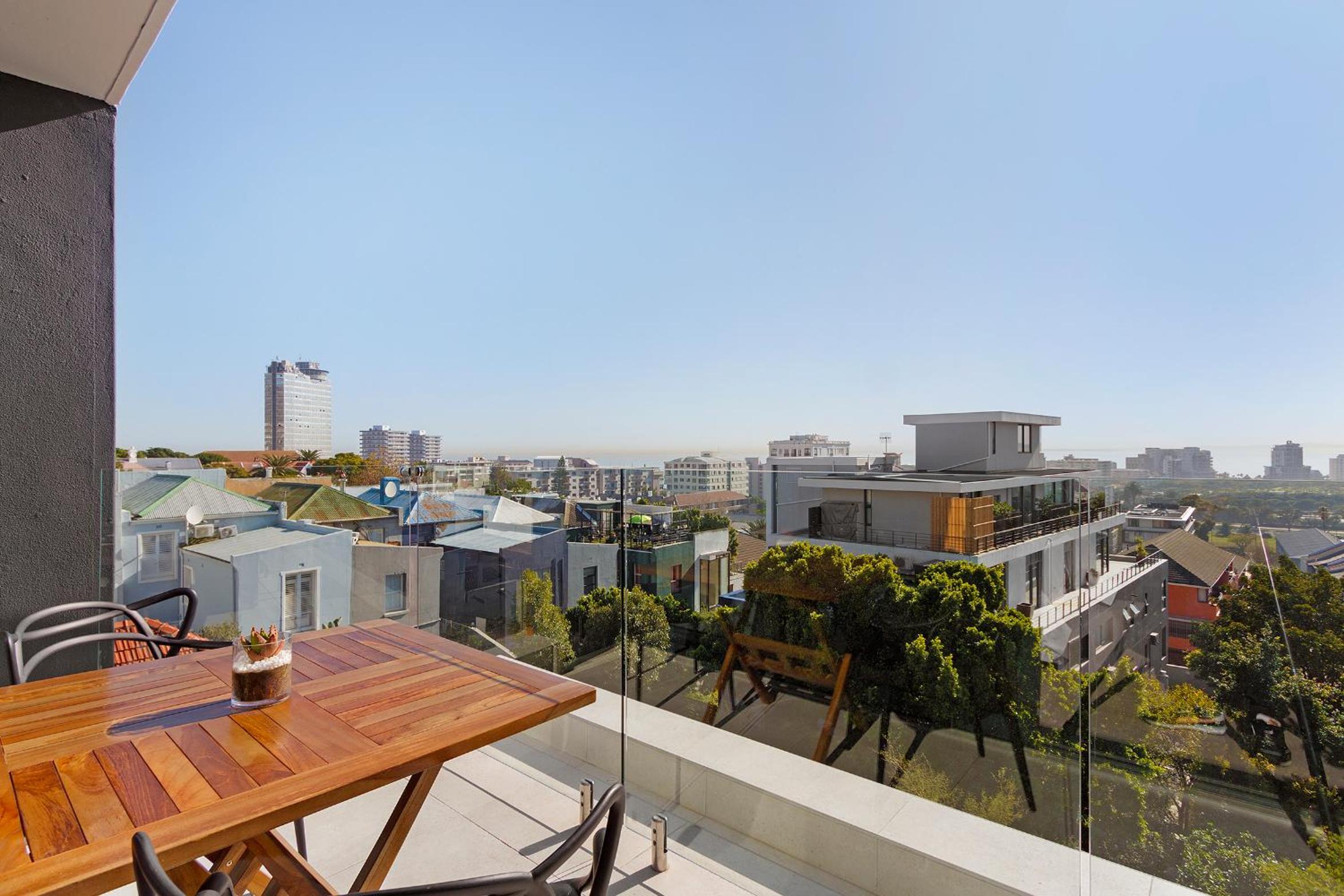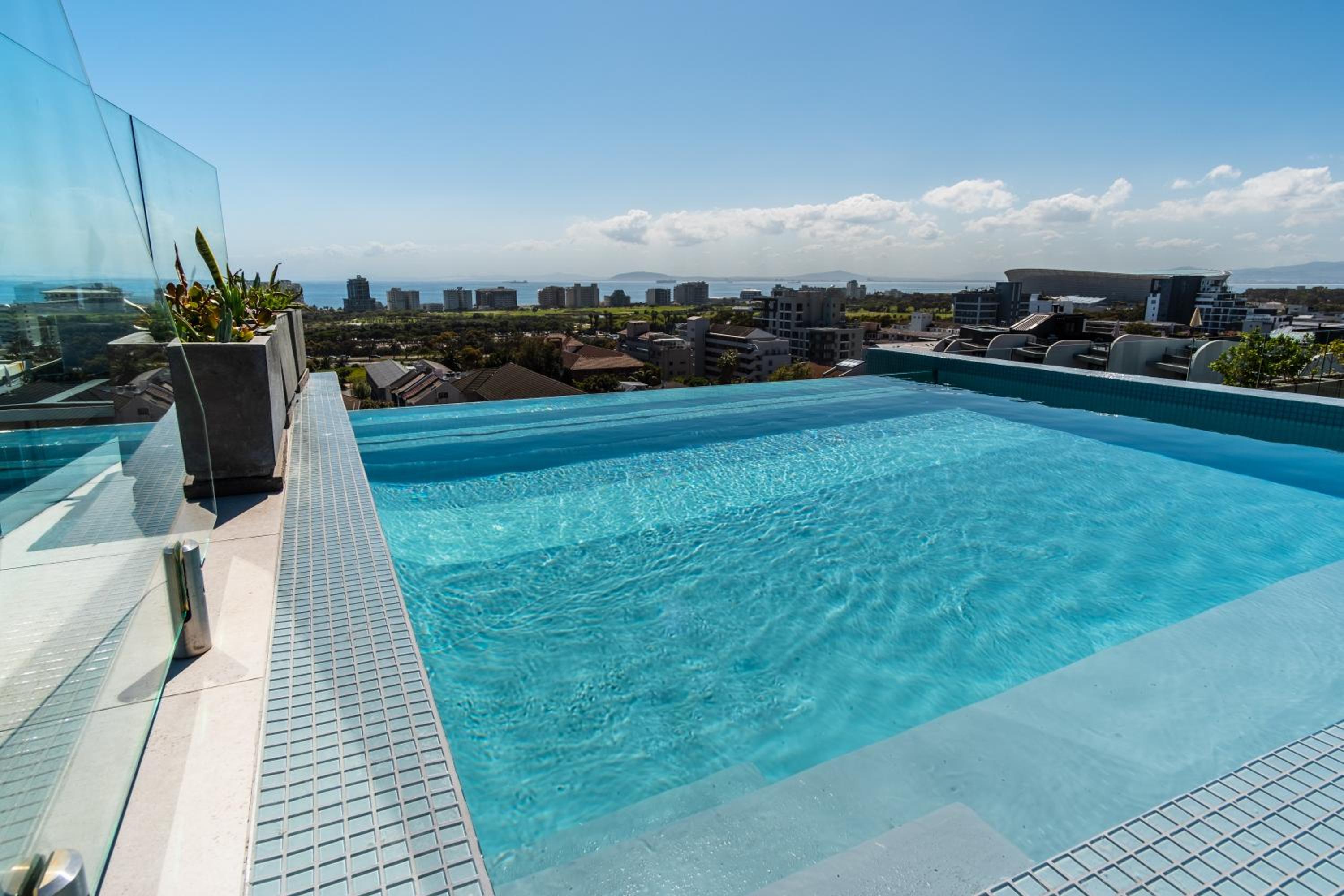 The Murex in Three Anchor Bay, Cape Town, offers a luxurious stay with a rooftop pool and breathtaking city views. Each air-conditioned unit features a balcony, well-equipped kitchen, and modern amenities for a comfortable stay.