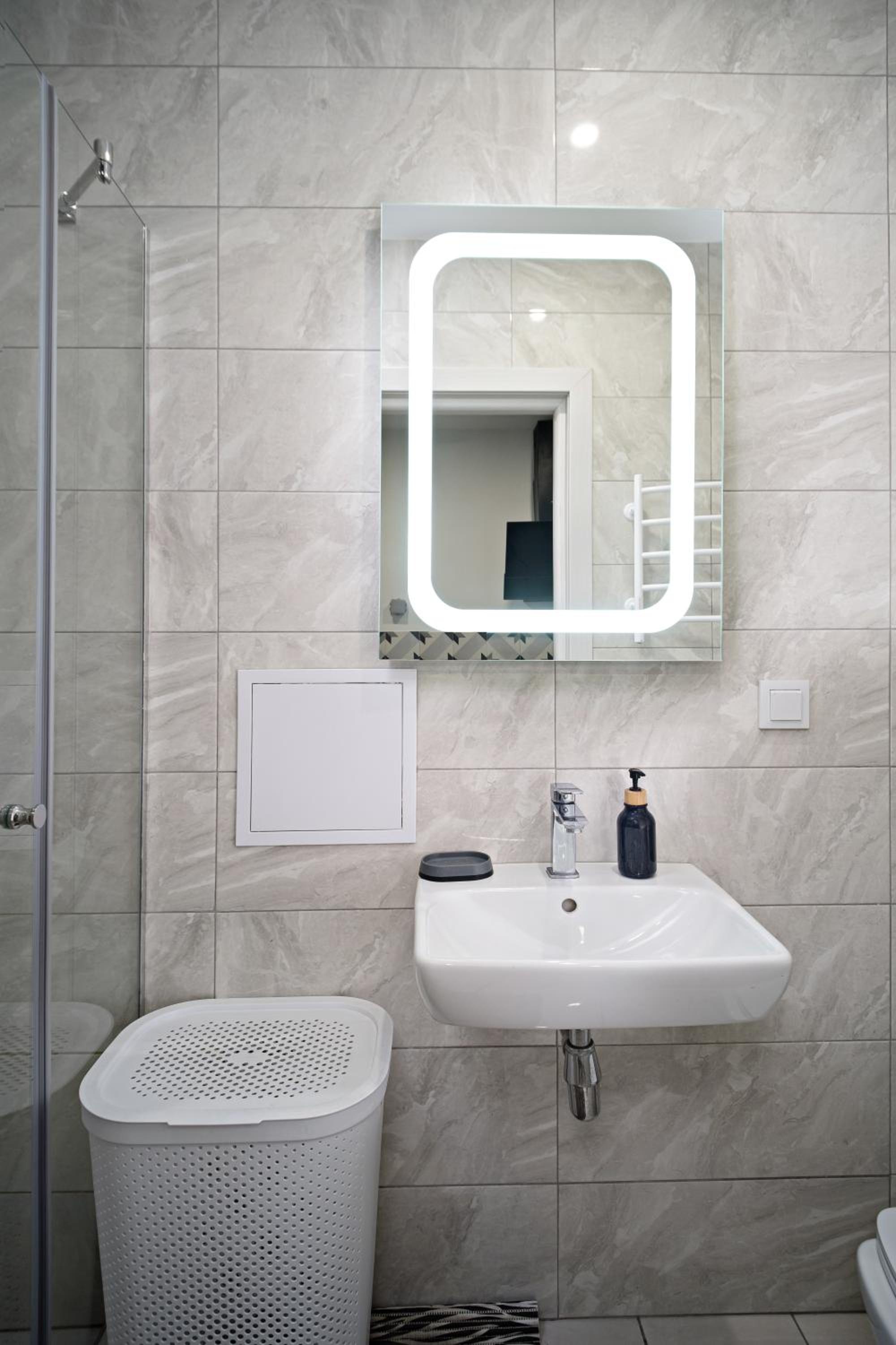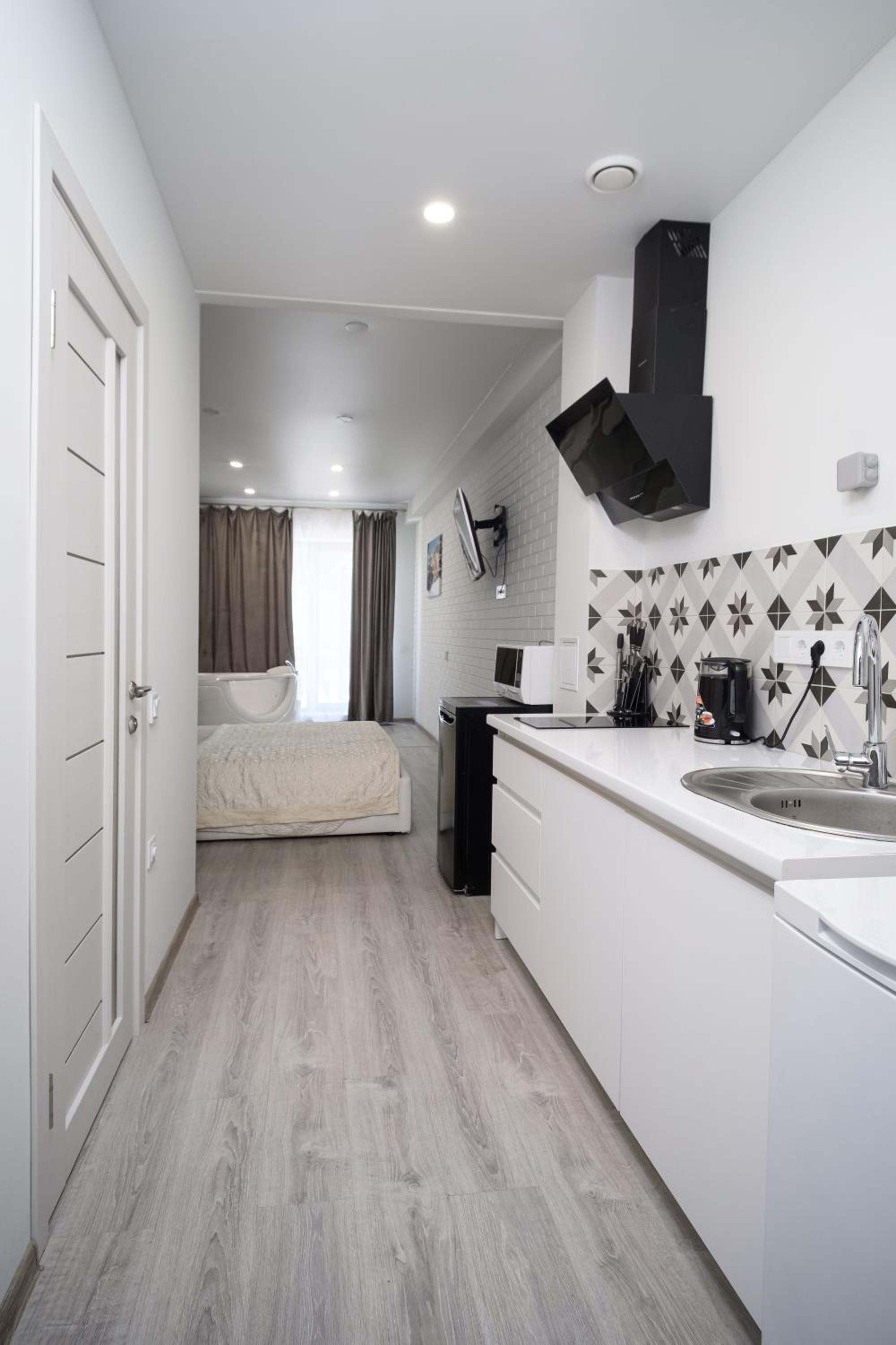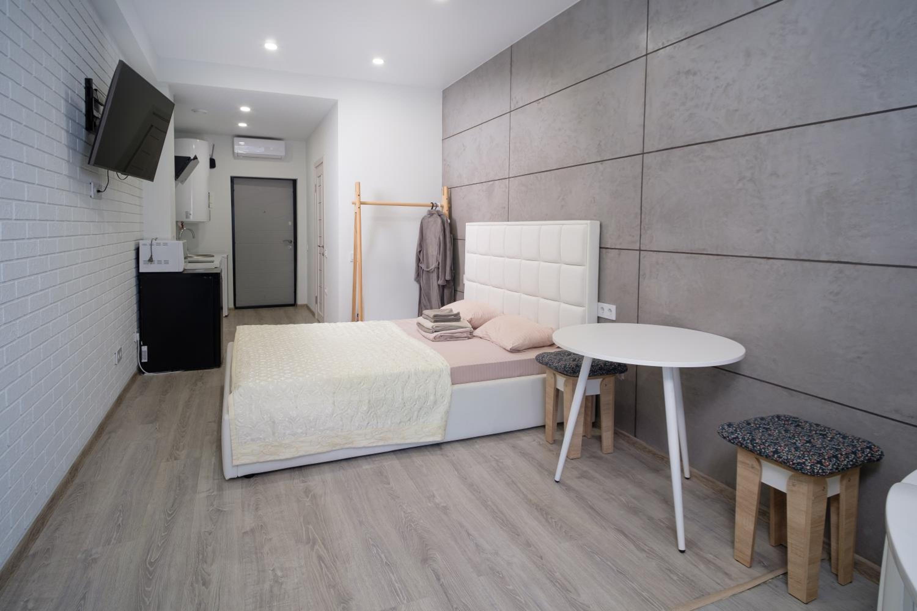 Понравился дизайн апартаментов , все новое и современное. Заезд прошел быстро и четко, за это спасибо. Внутри есть все необходимое для приготовления еды. Вернемся сюда одназначно