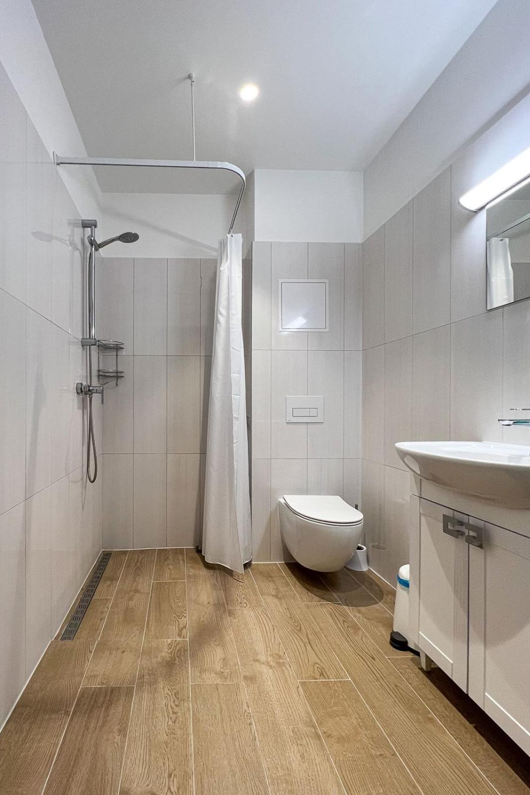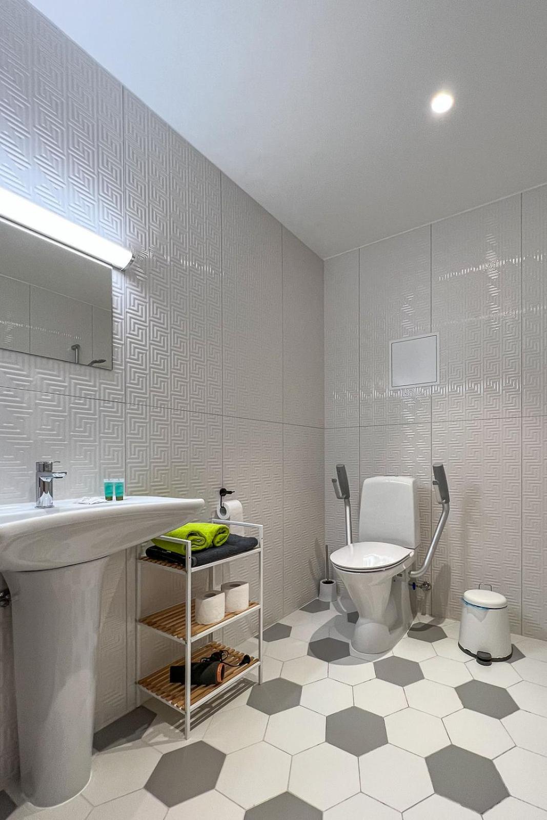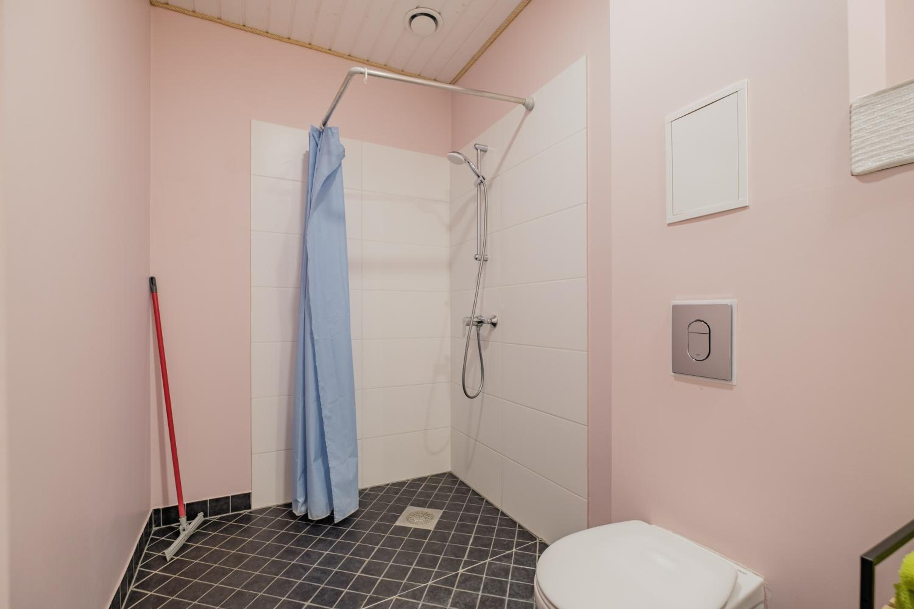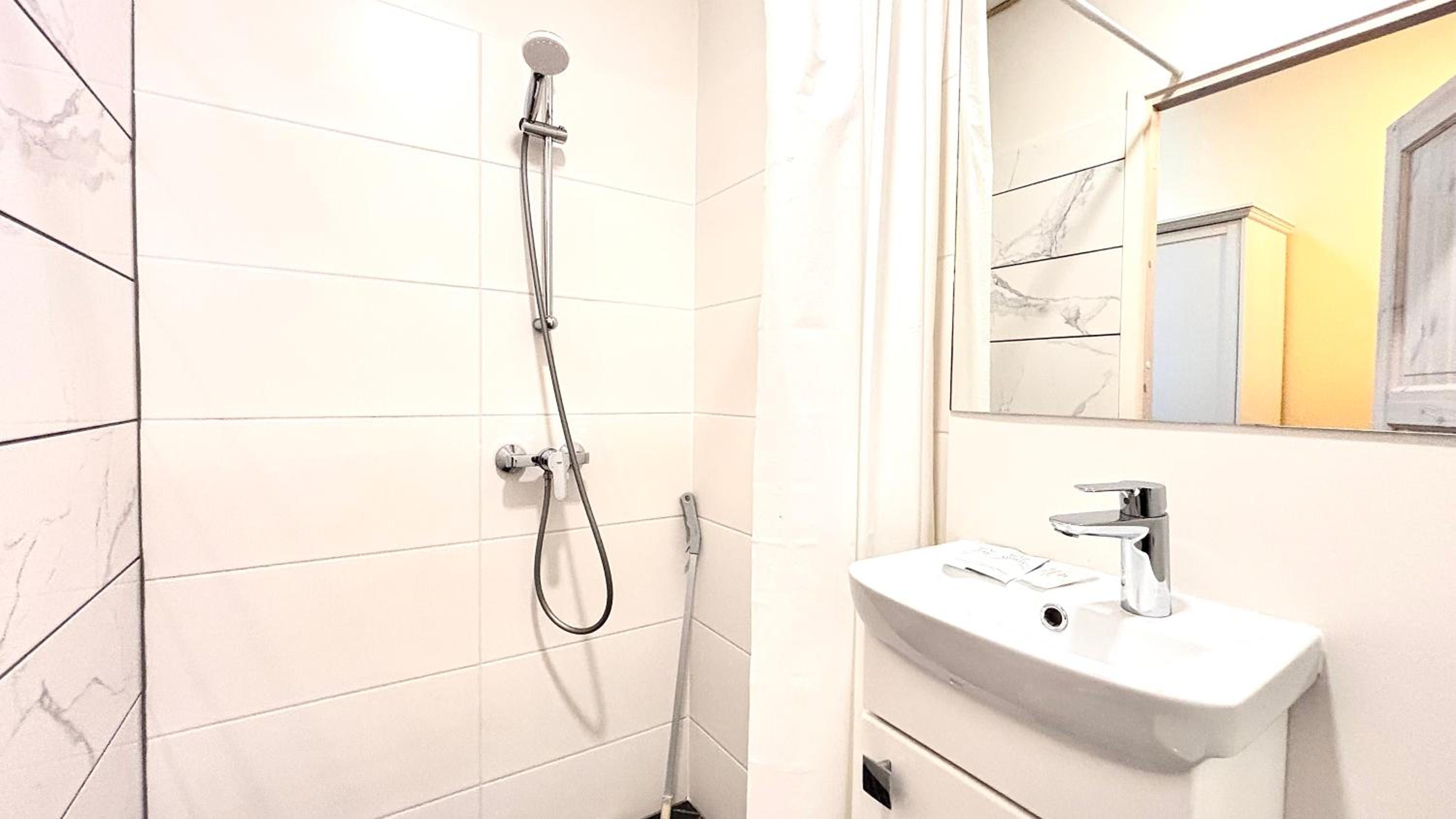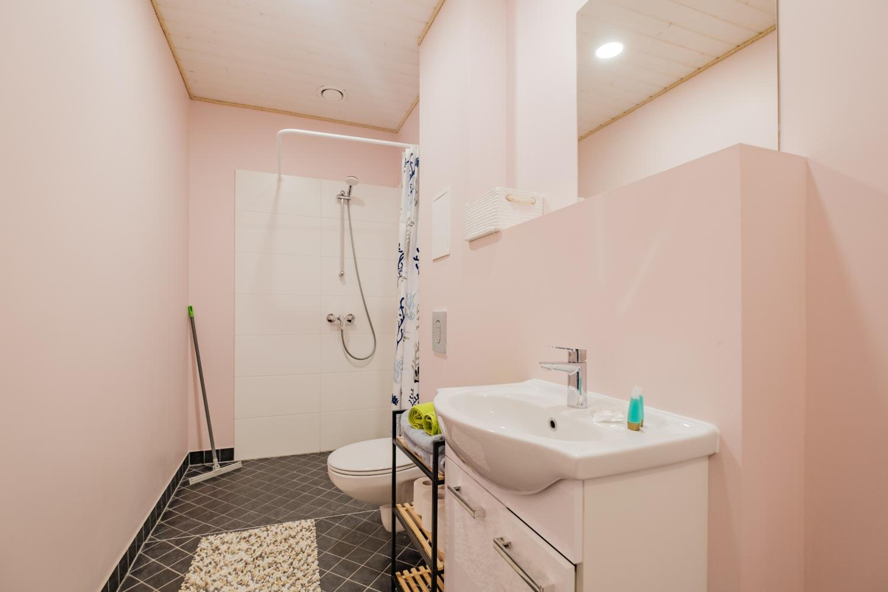 Также не хватило полочки в душе, куда можно поставить элементарно шампунь и гель для душа, также в ванной комнате нет помойки.