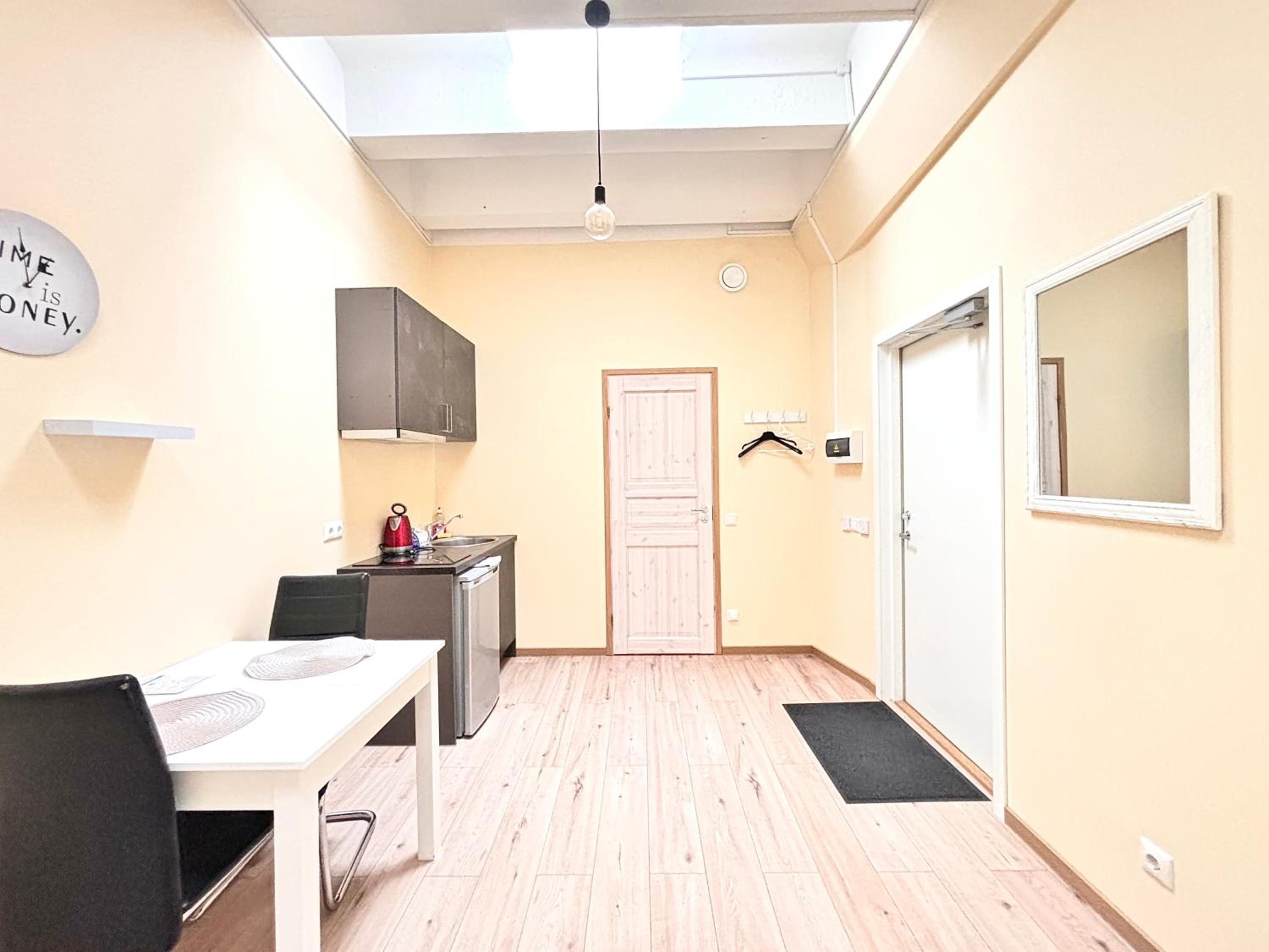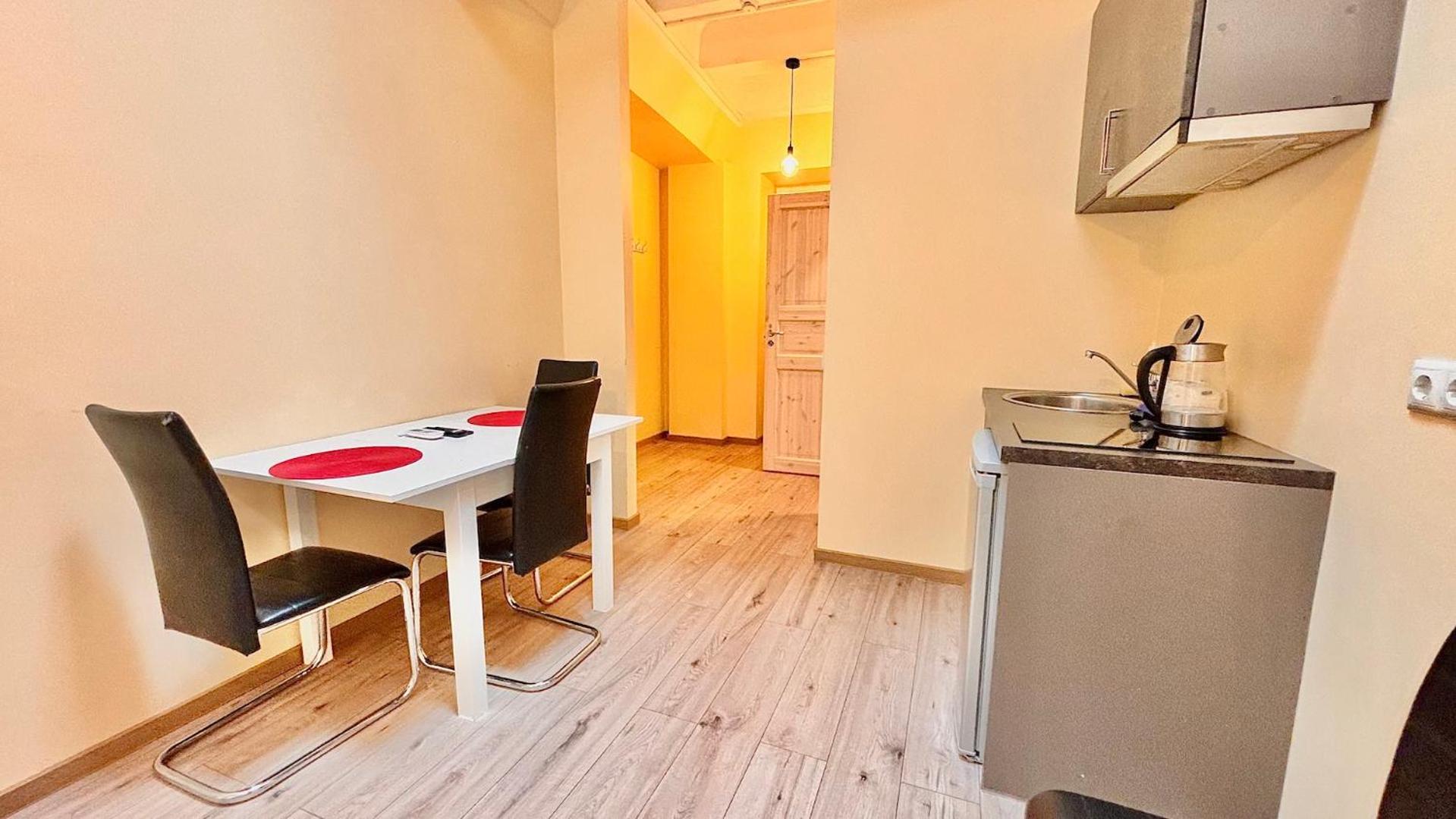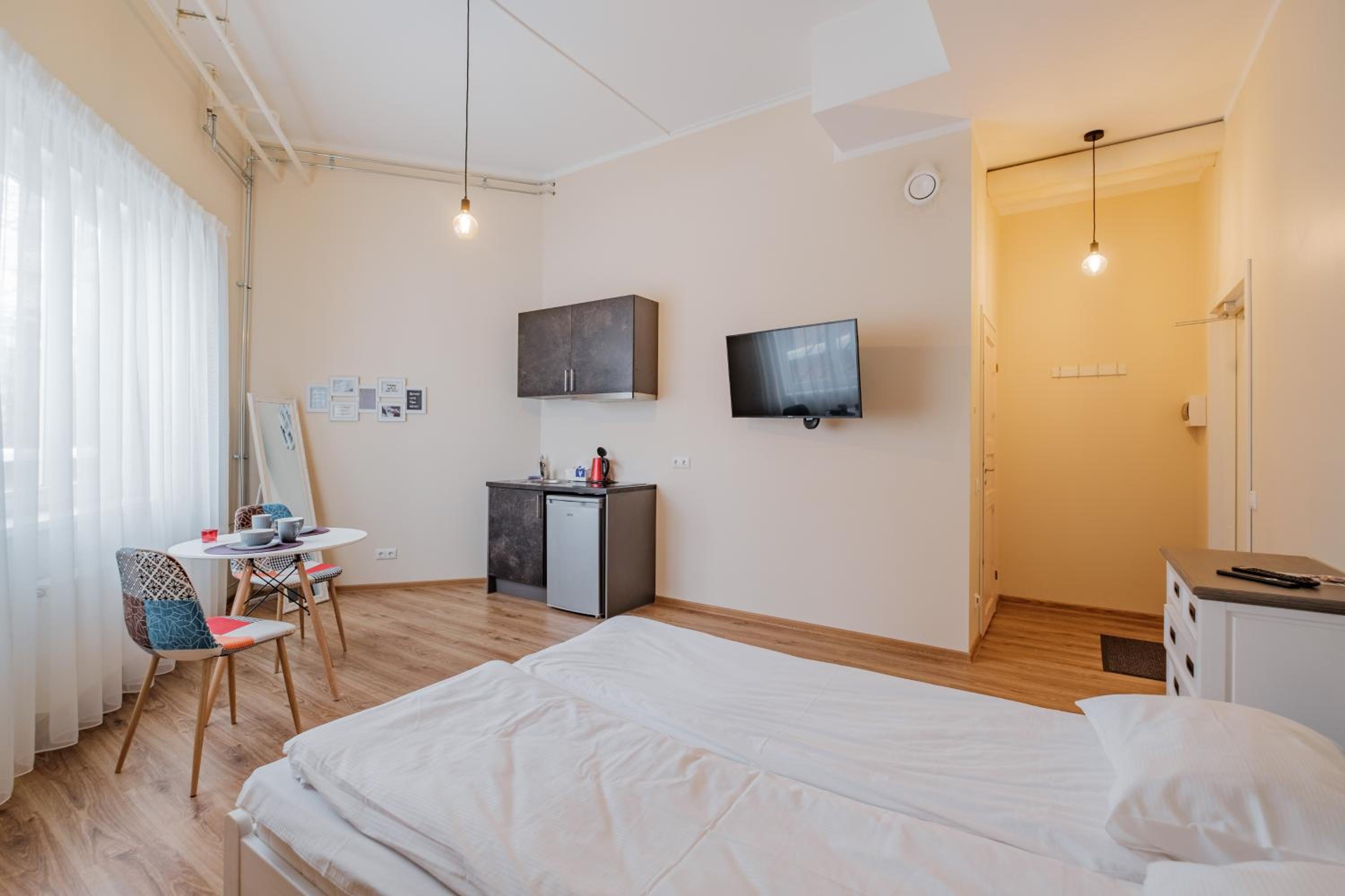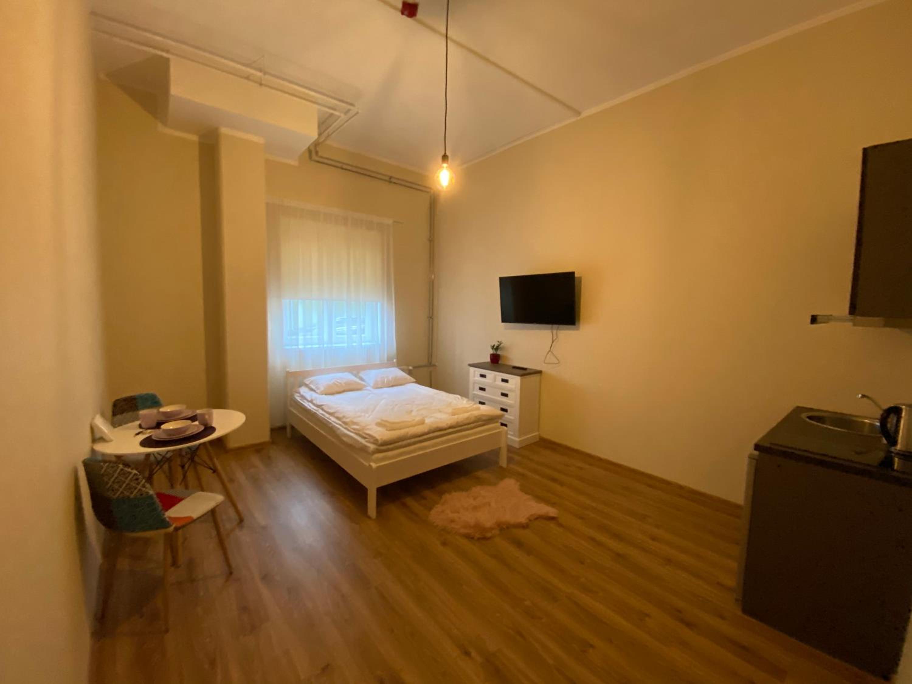 Хорошее место расположение, цена соответствует качеству на 100%, имеется весь базовый минимум для не долгого проживания.