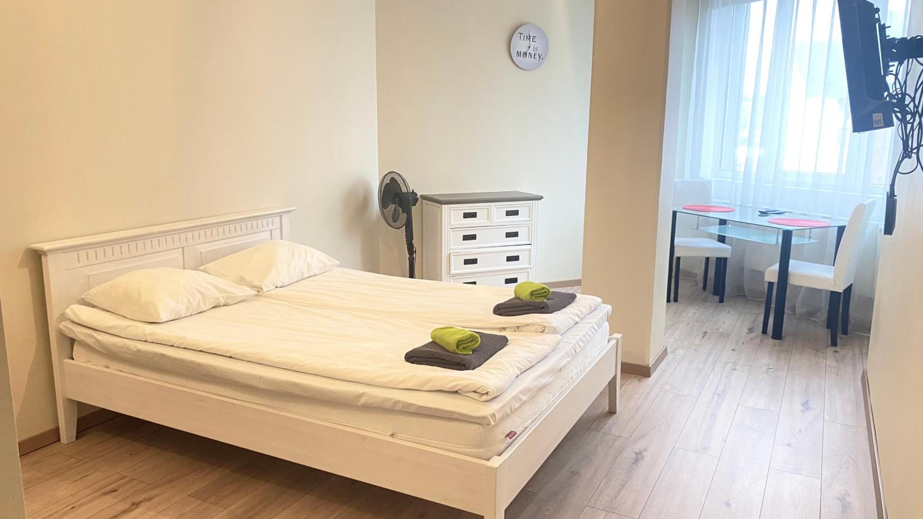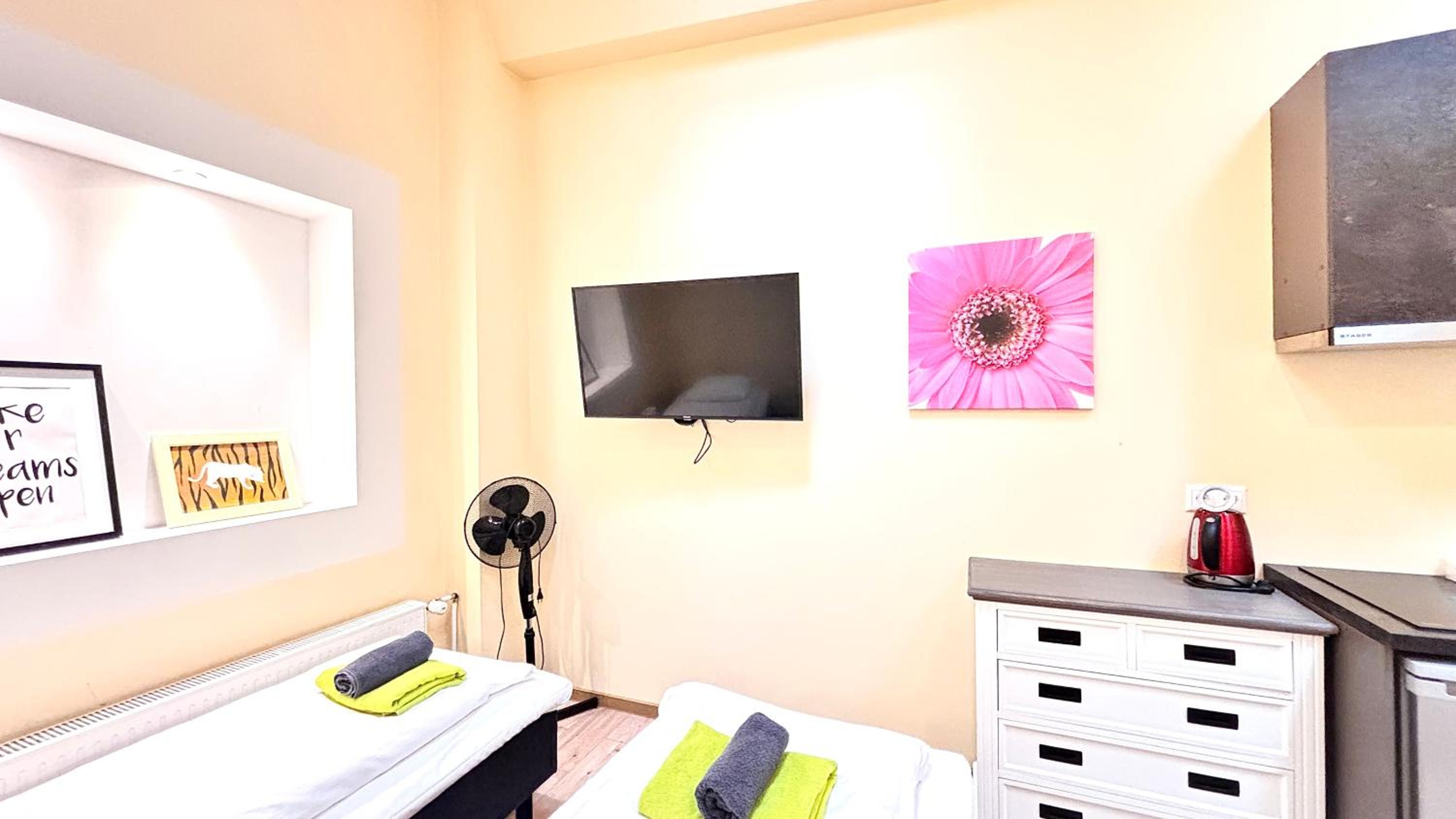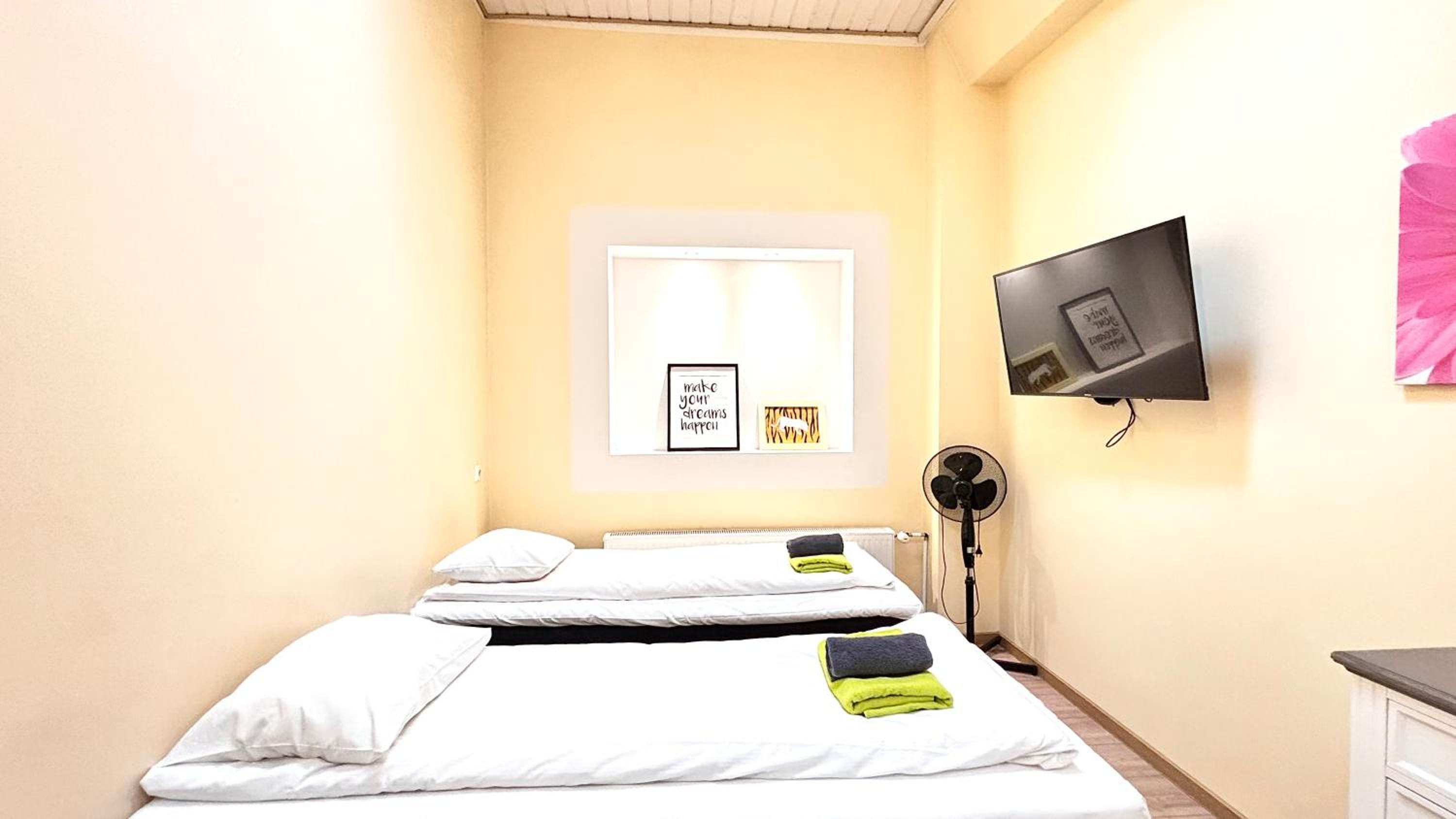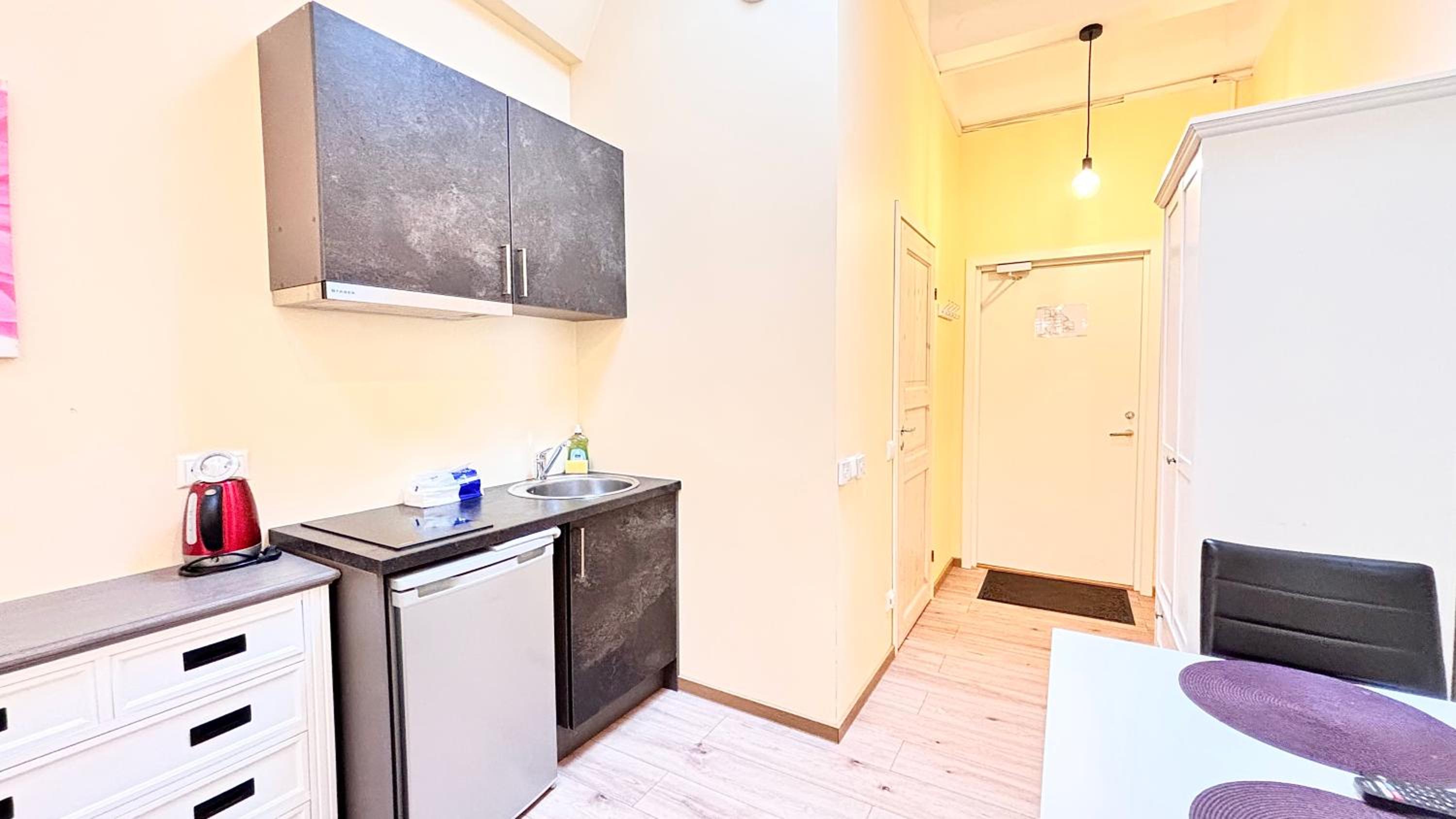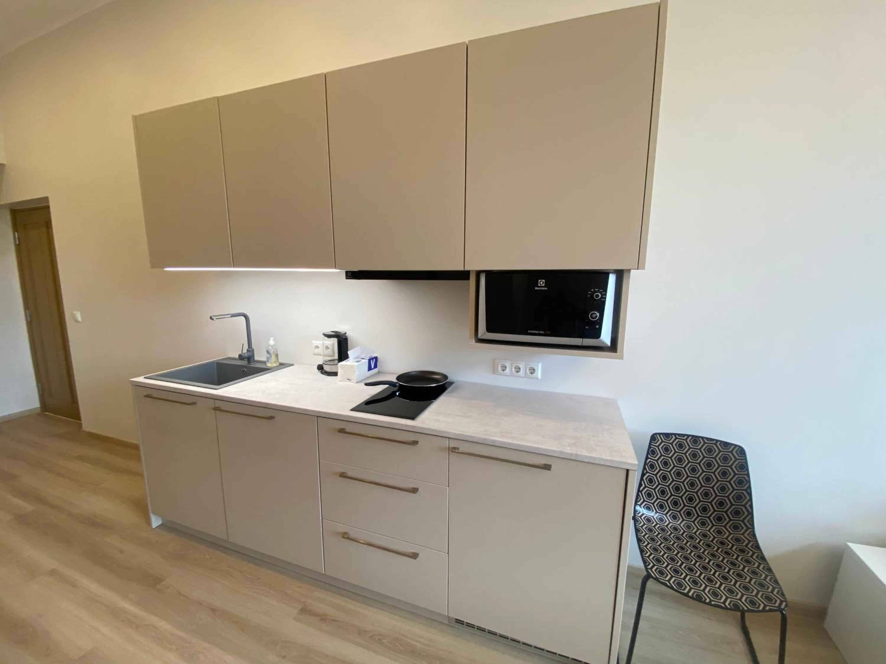 Хорошее место расположение, цена соответствует качеству на 100%, имеется весь базовый минимум для не долгого проживания.