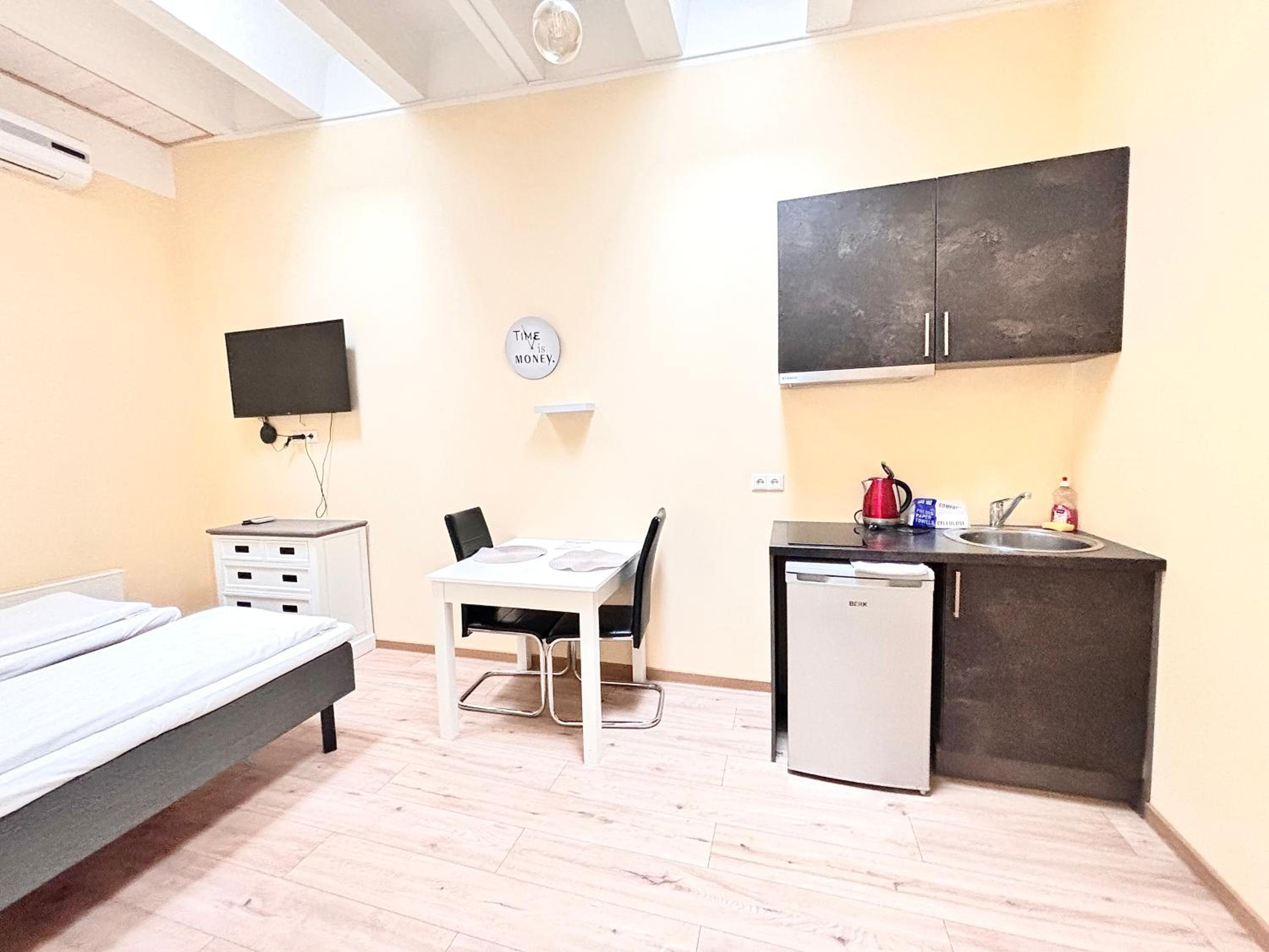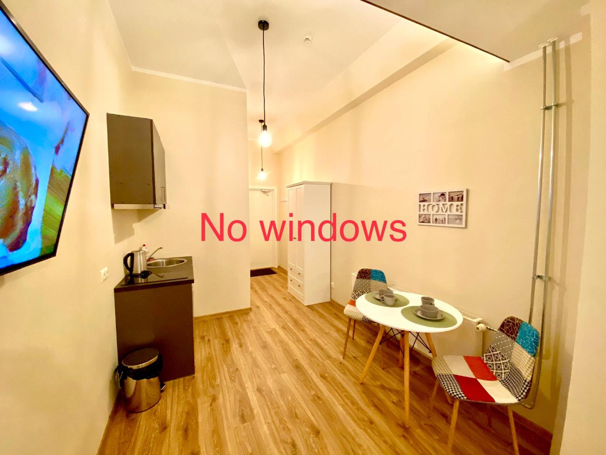 The room had no window, which is ok because that is the type of room I booked, but it got a bit stuffy in there during hot weather. They provided a fan but maybe air con would help a lot more. Also the kitchen equipment was extremely minimal and could do with being updated.