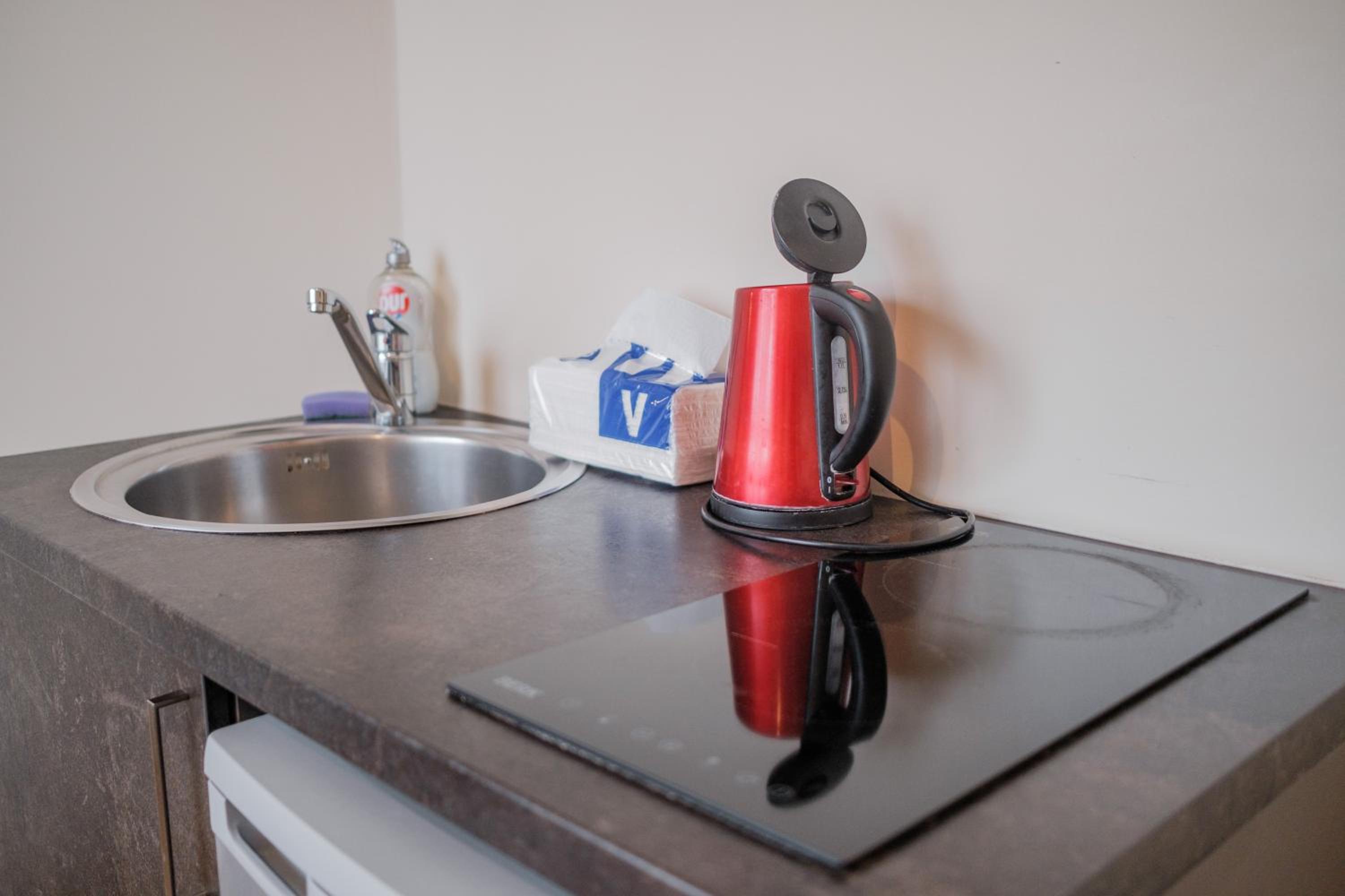 Не хватает микроволновки, да, есть плита, но например мы не умеем пользоваться электрической плиткой поэтому для нас не было возможности разогреть еду.