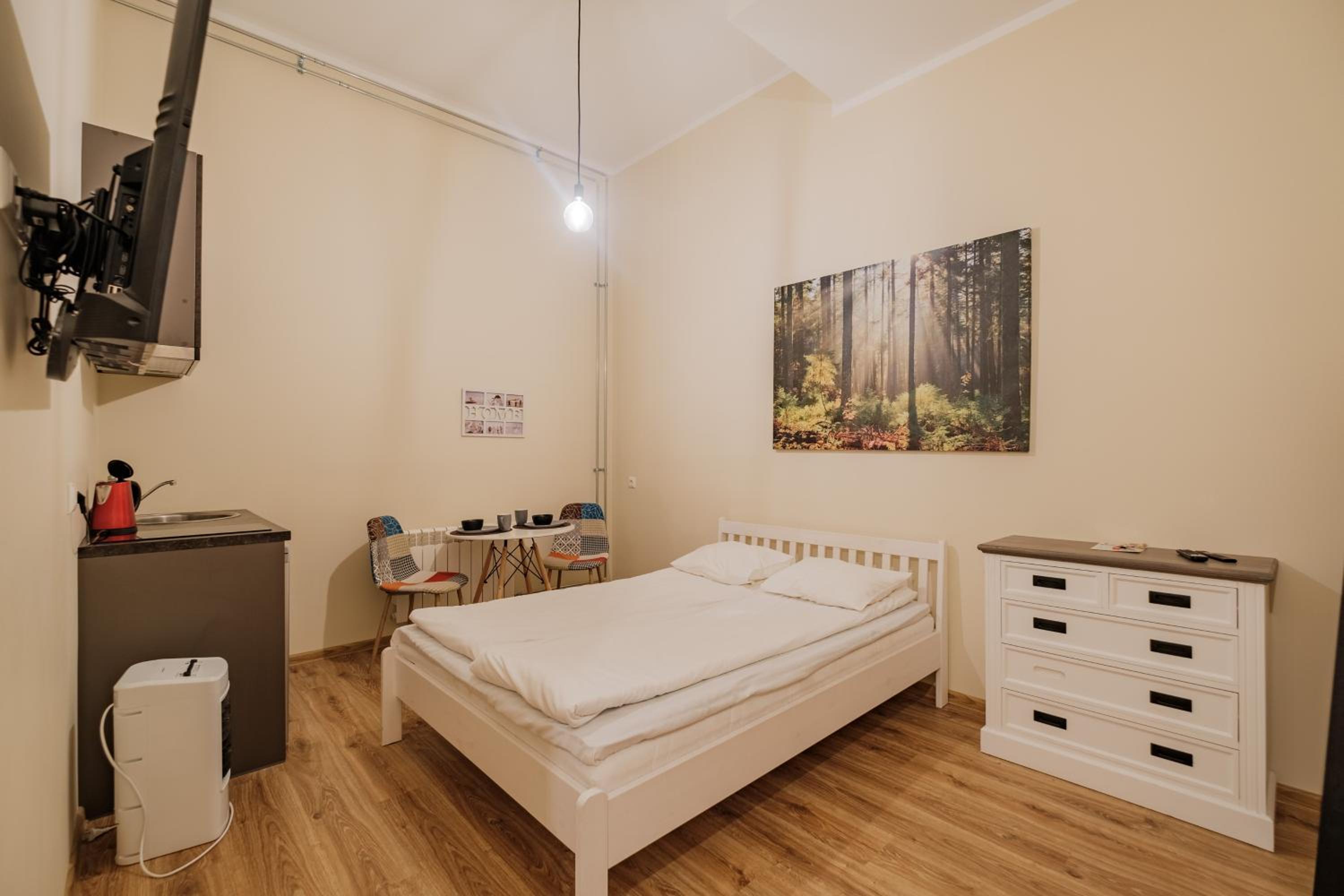 4-ses toas peremajutuseks piisavalt ruumi, miniköök hommikusöögi valmistamiseks. TV ja muud mugavused. Suur vannituba.