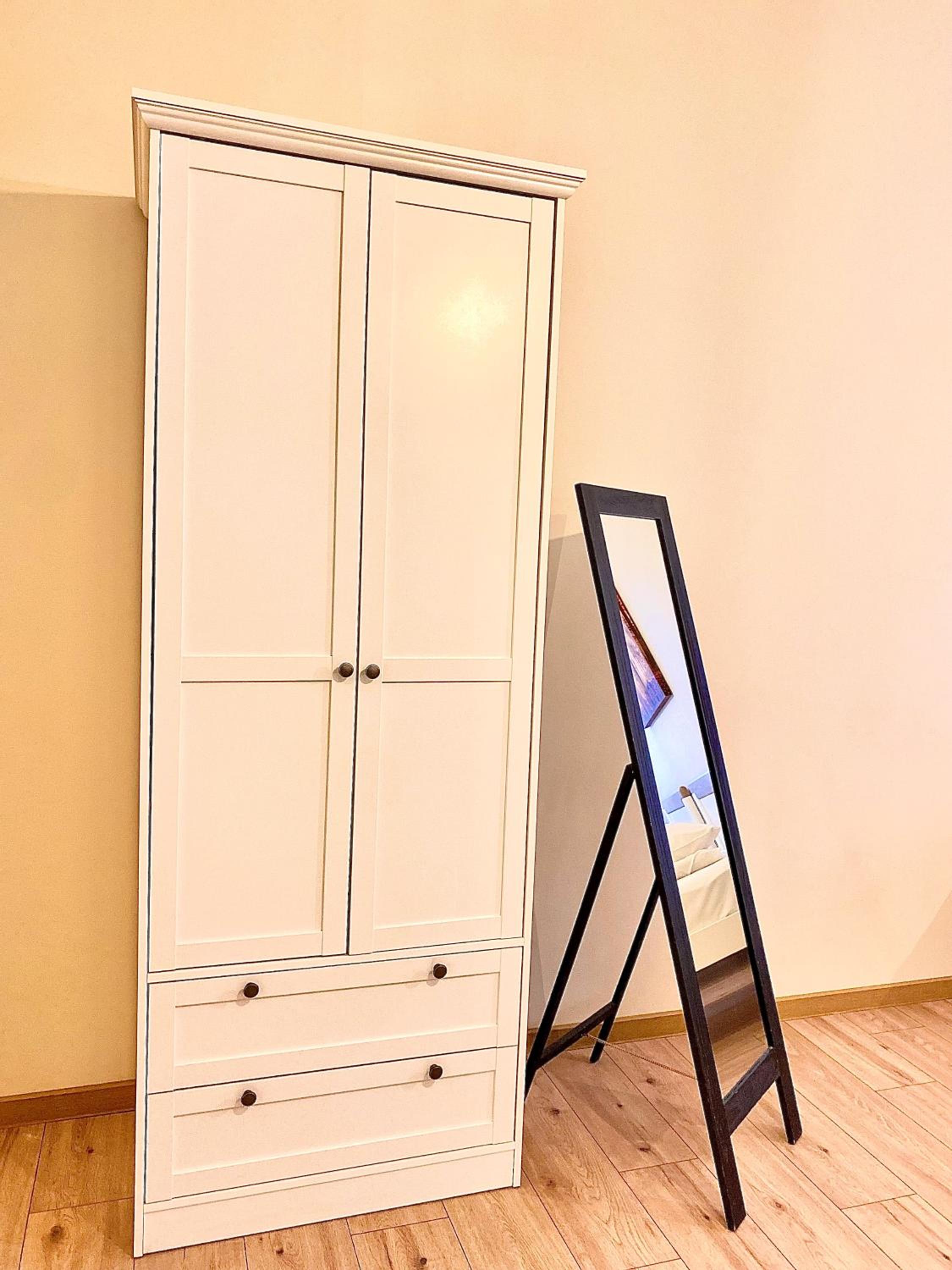 Моют так себе, пыльно, какой-то мусор валяется в шкафу и комоде, ручка у комода сломана. Кровать очень сильно скрипит.
