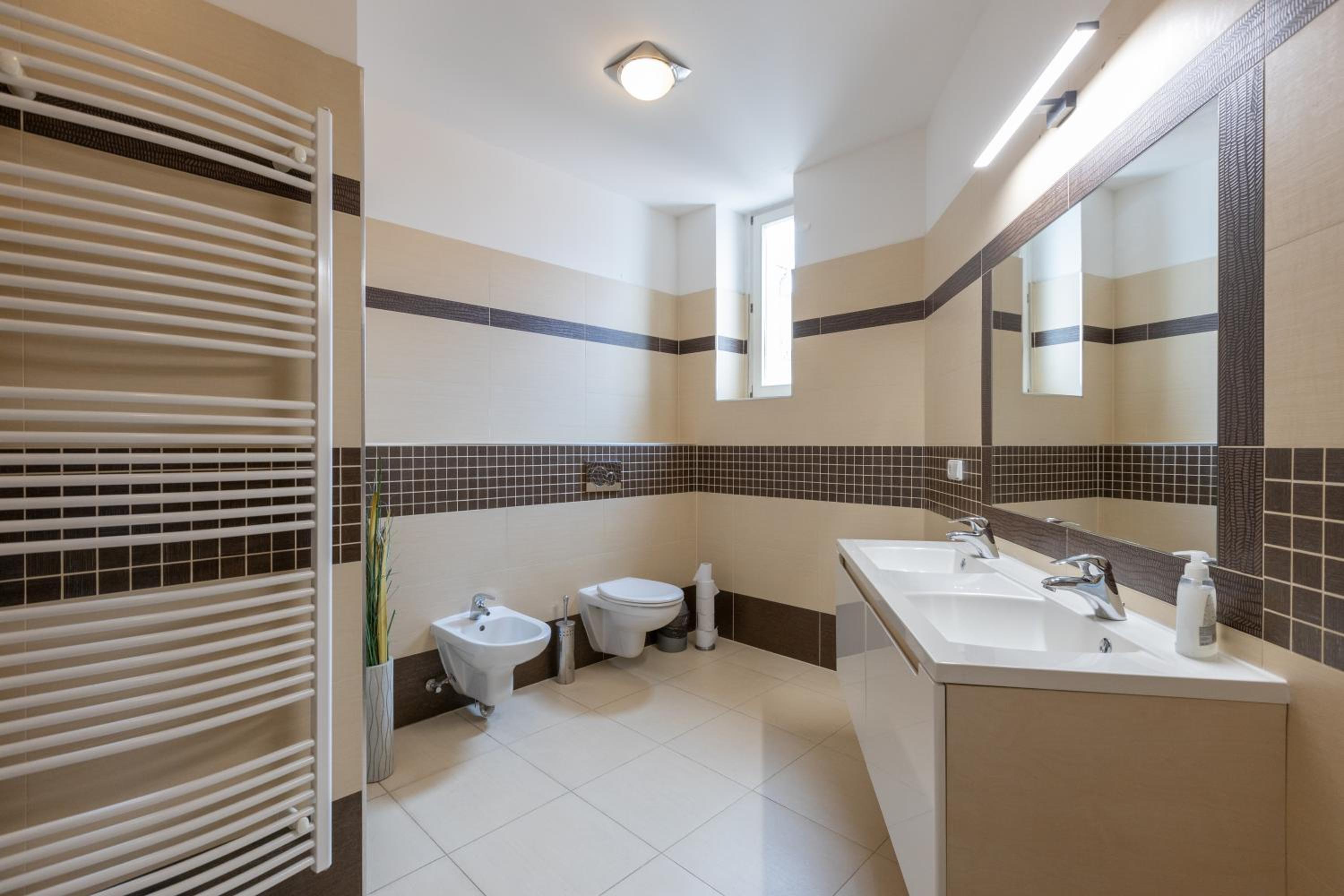 Unica pecca : essendo in 5 persone ho prenotato un appartamento con 2 bagni ed ho trovato un bagnetto con solo wc e piccolo lavandino ed un'altro con vasca e lavandino.