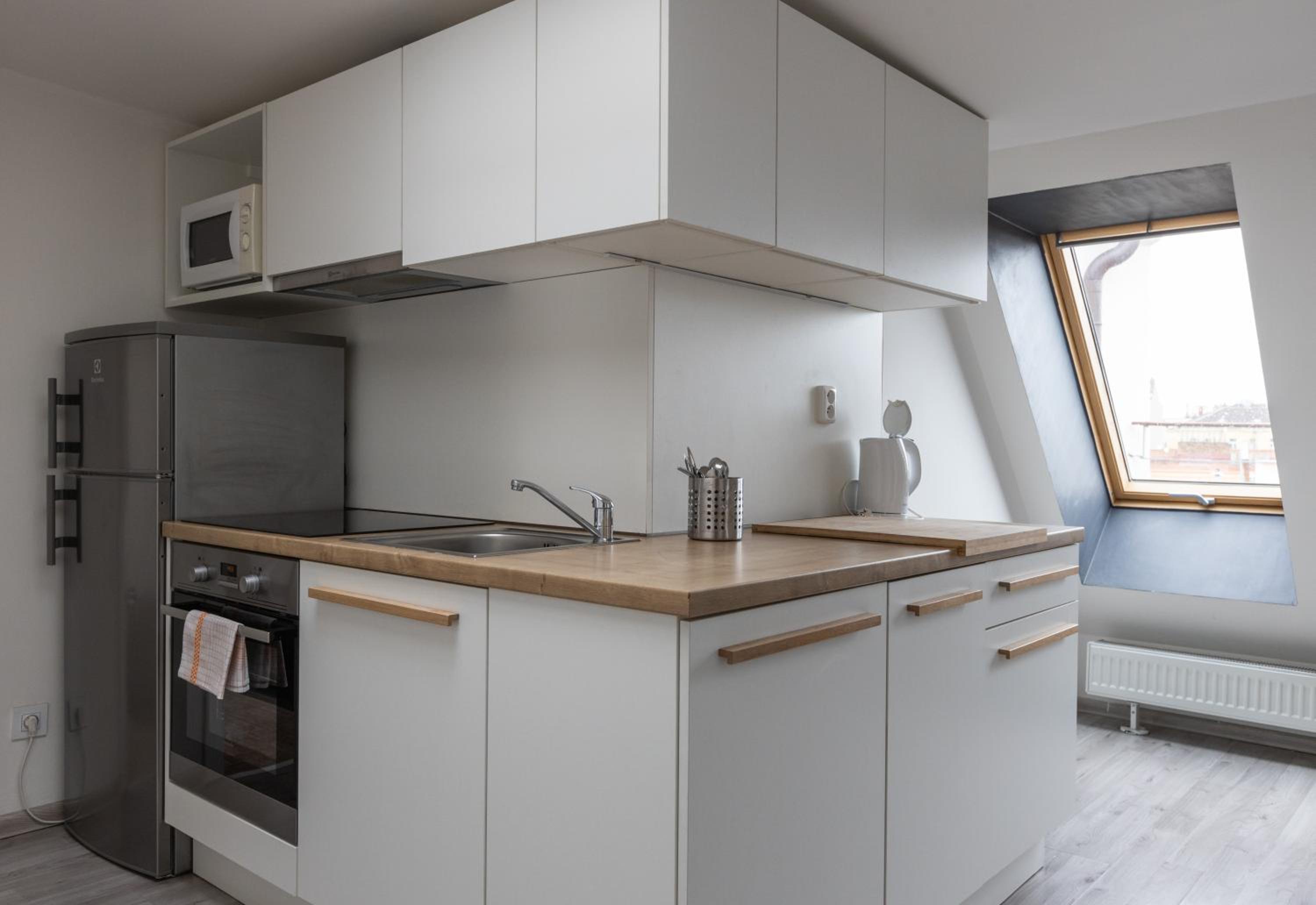 Vybavenie kuchyne je nedostatočné, žiadne sitko na cestoviny, len jedna čajová lyžička. V kuchyni nebola soľ, cukor, čaj, káva. Okno v kúpeľni sa nedalo zatvoriť, bolo nepríjemné sprchovať sa v studenej kúpeľni. Odporúčam zapracovať na dôkladnejšom upratovaní, v byte boli známky po nedávnom bielení stien.