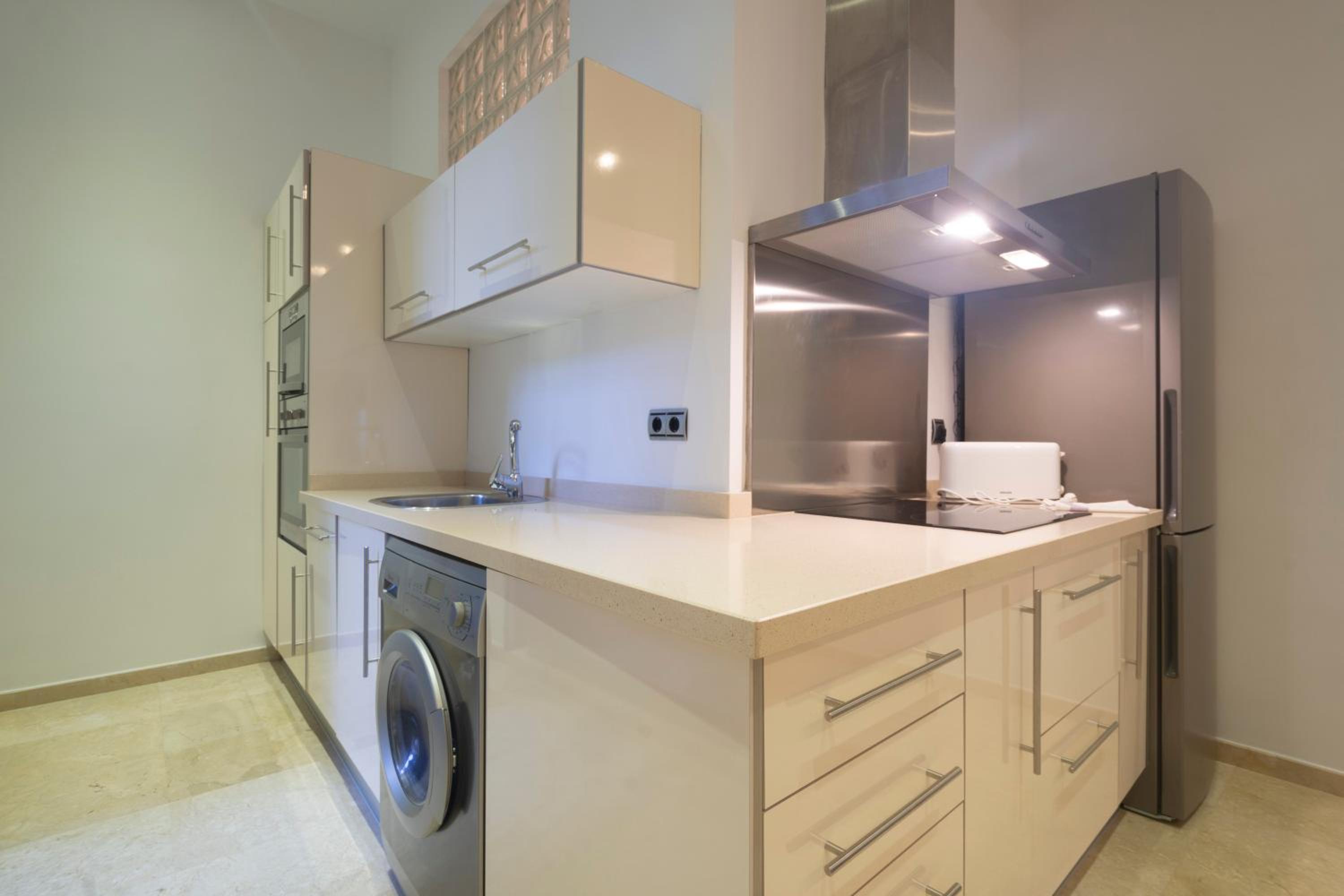 Ubicación perfecta. Cerca de todo. El parking incluido es un plus. Edificio muy bonito y apartamento espacioso. Bien equipado y todo muy limpio. Nos proporcionaron rápidamente una toalla que faltaba
