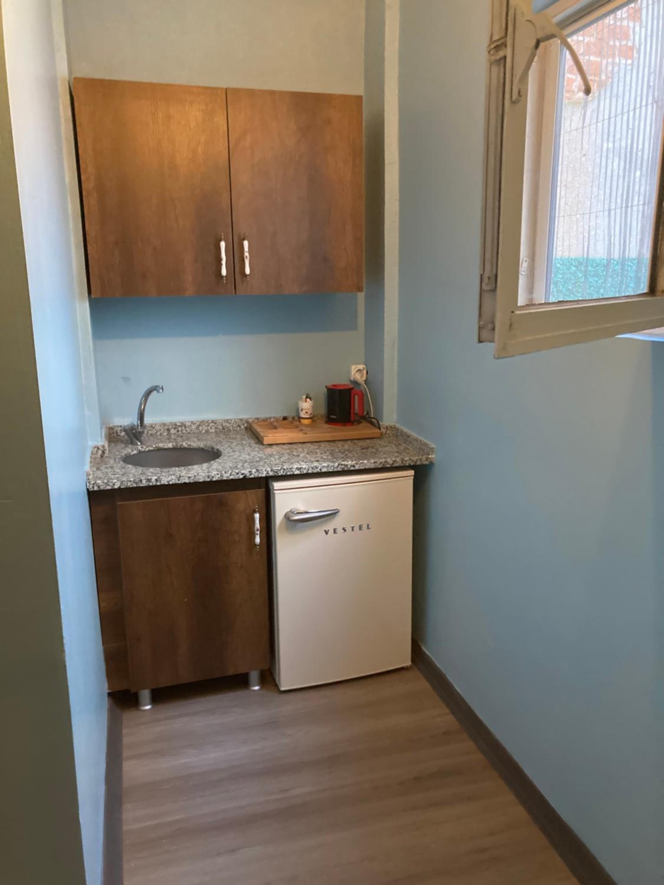 La nostra camera includeva un piccolo angolo cucina con frigo e lavabo con bollitore senza angolo cottura e una seconda camera piu un terrazzo x entrambe le camere.