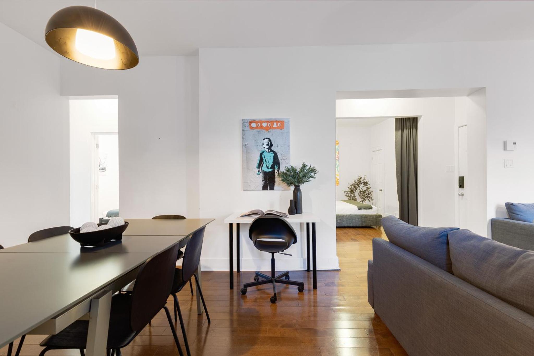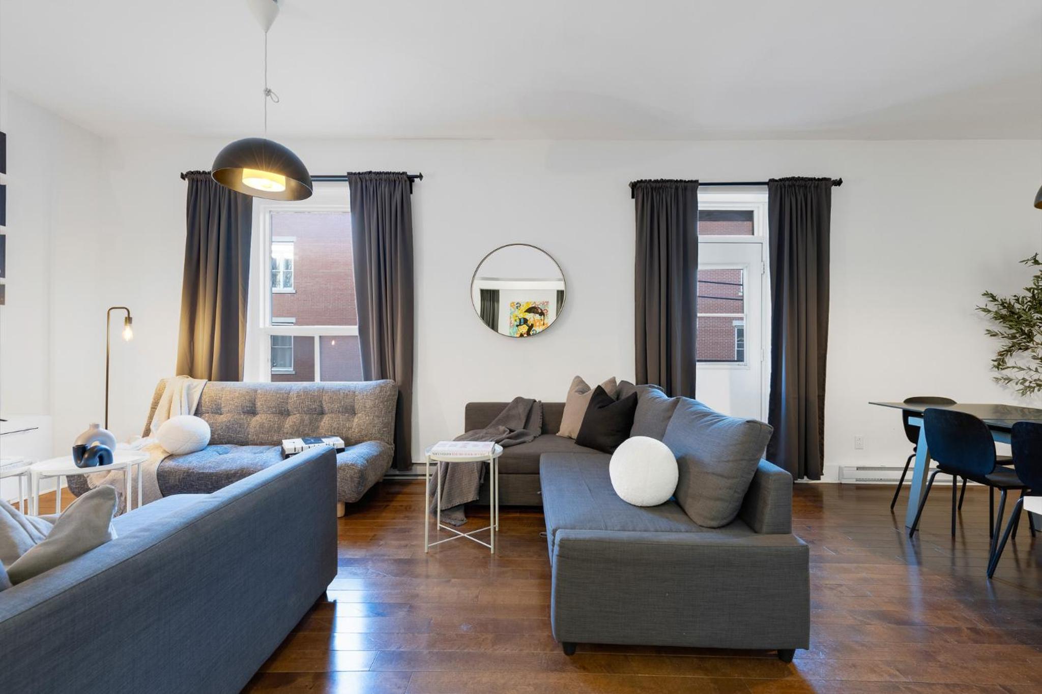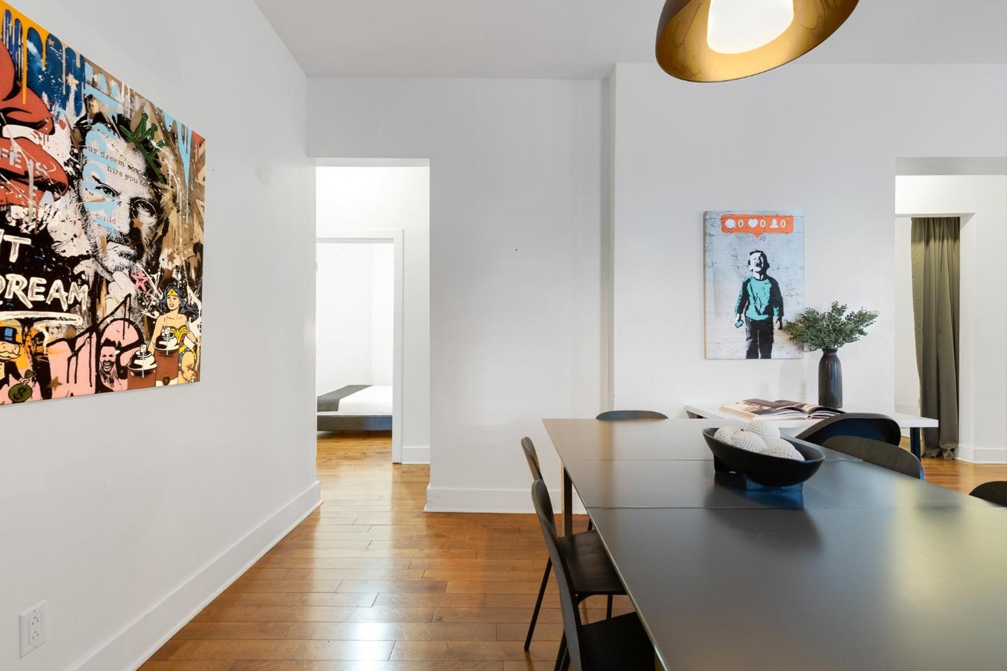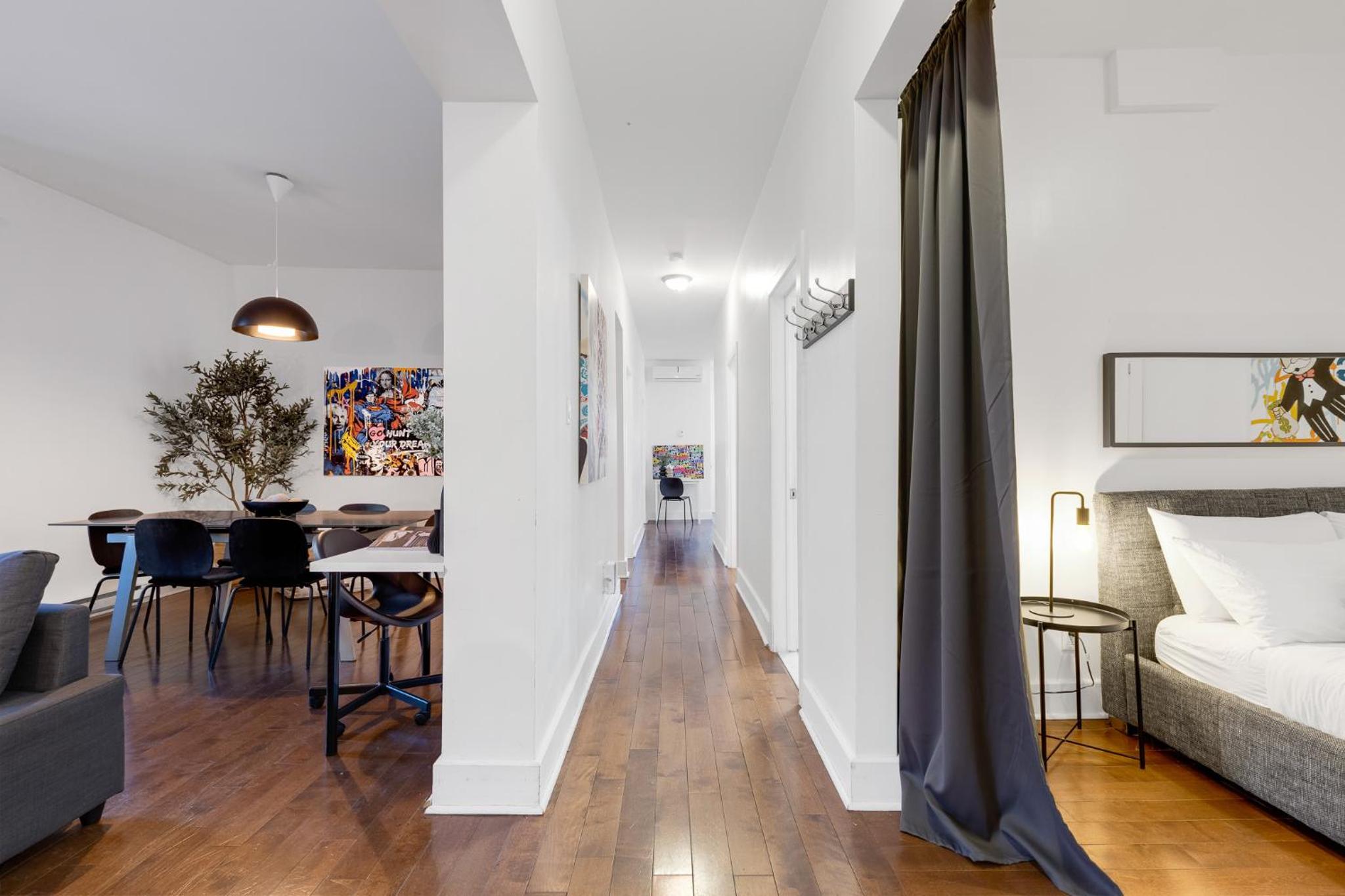 The apartment is huge, in great location, has many beds and well equipped. The shower is great, kitchen has everything you can think of, and the location is right on Mont Royal street.