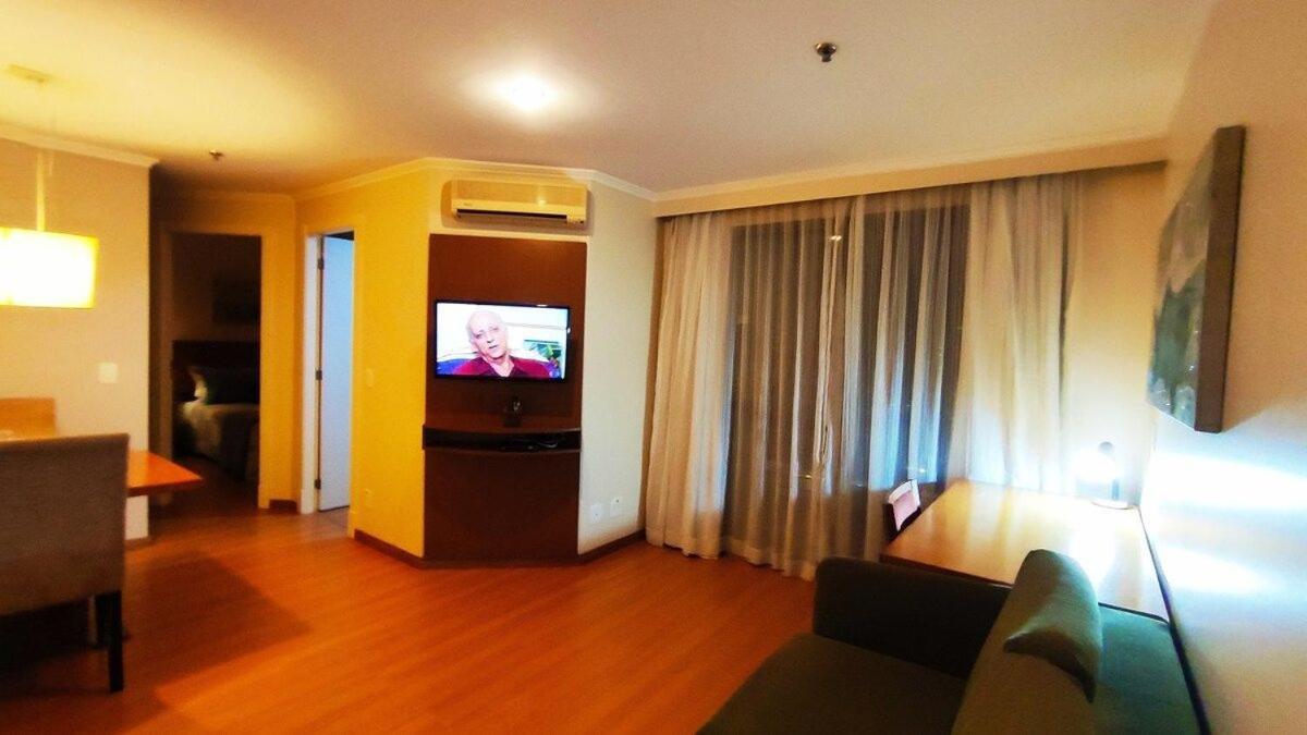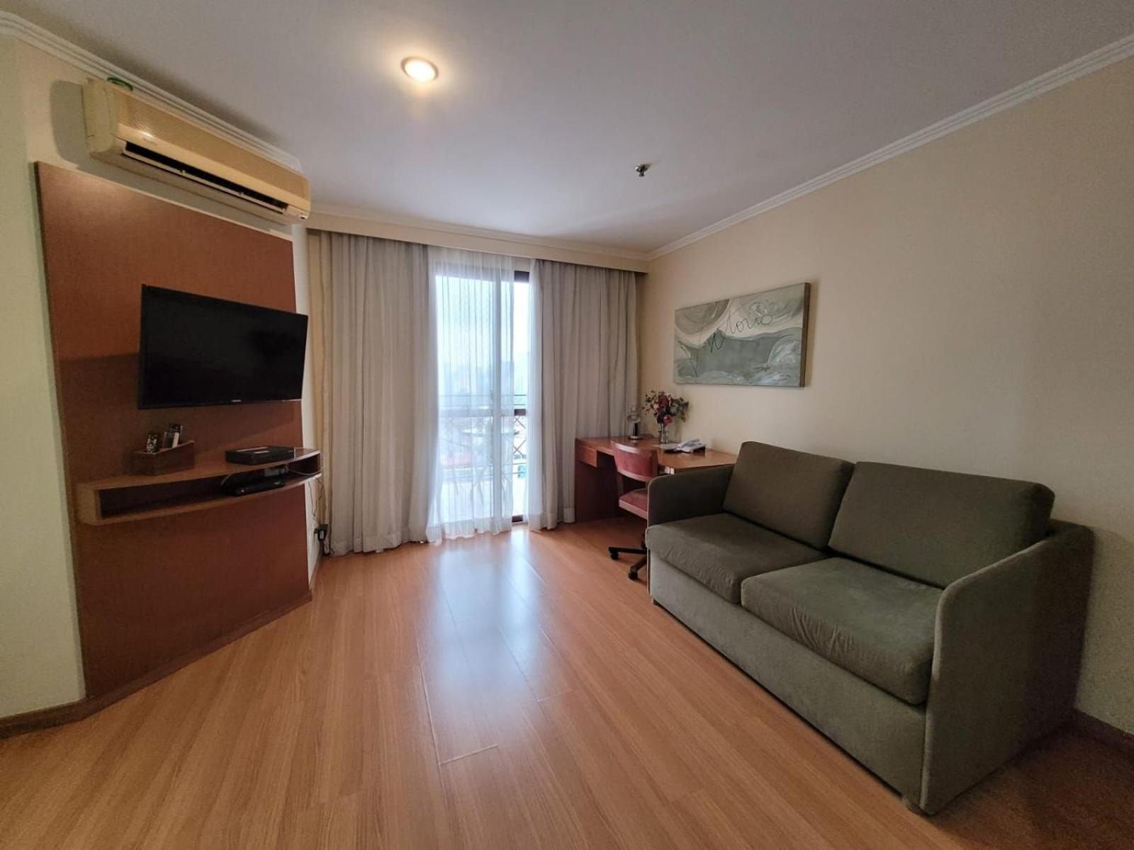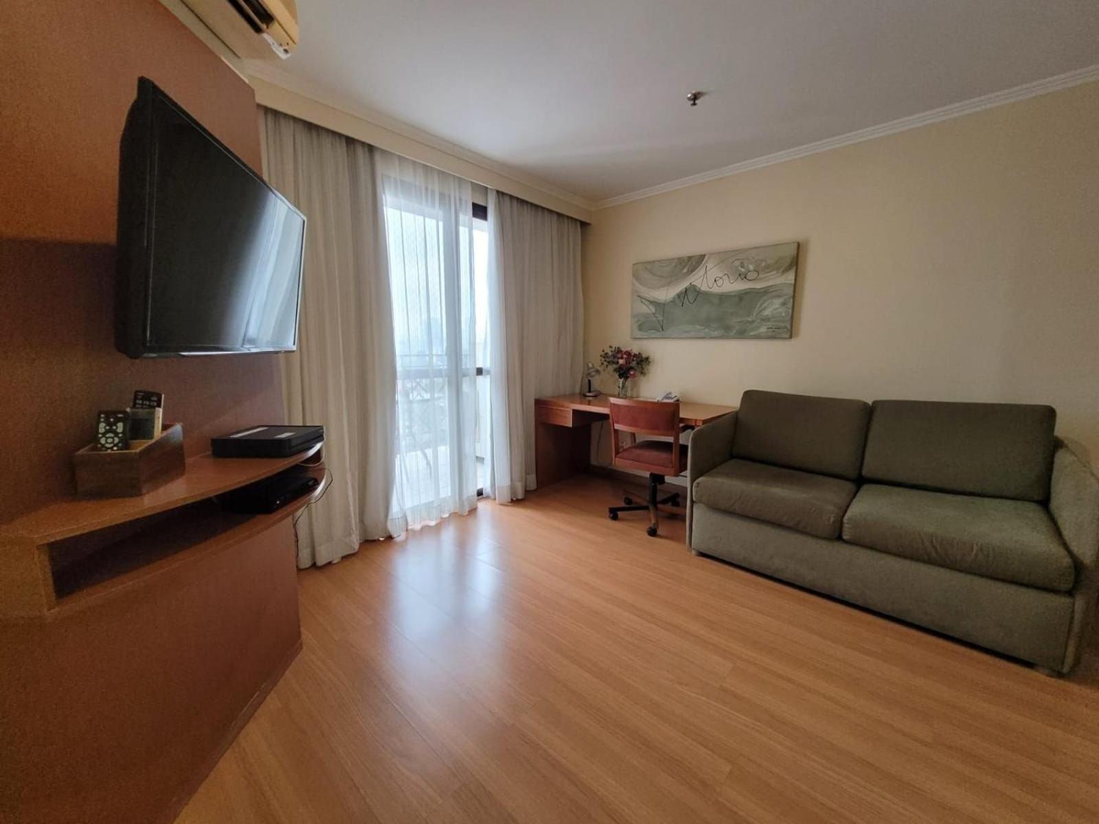 The noise from Bandeirantes Avenue is loud, even during the night. The windows should be upgraded to double glass to prevent the noise. The TV on the room is small.