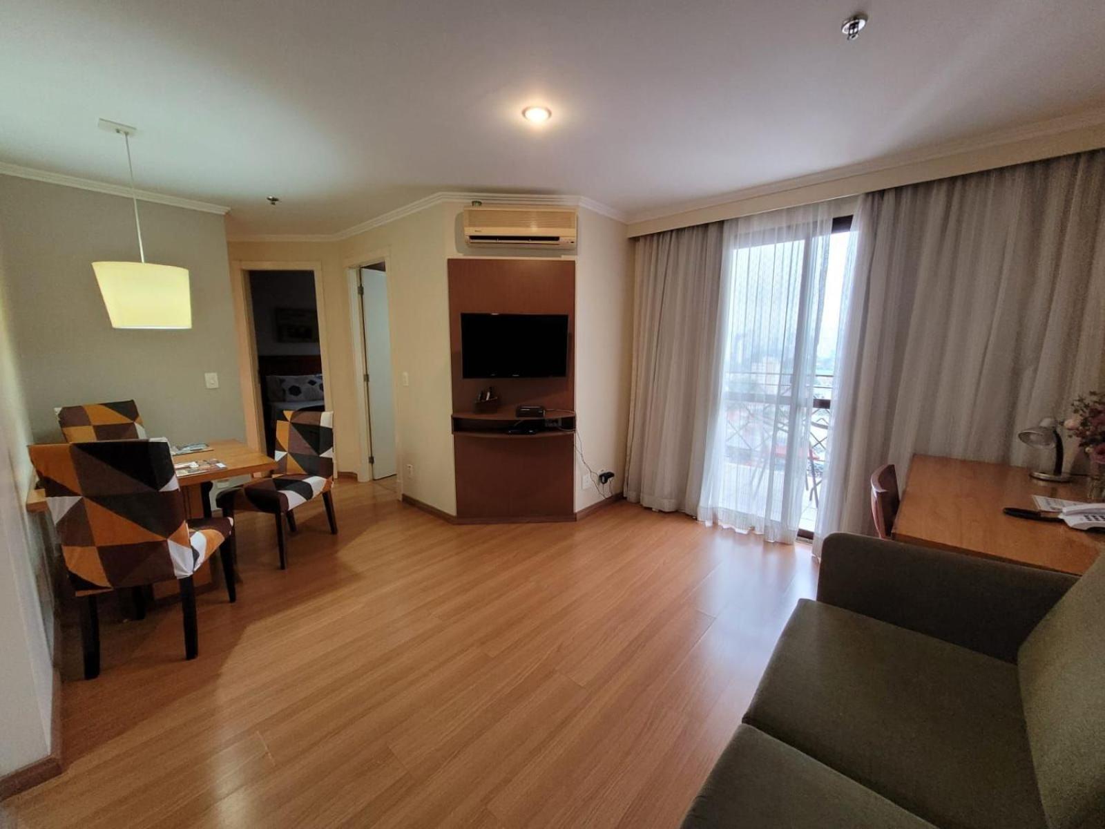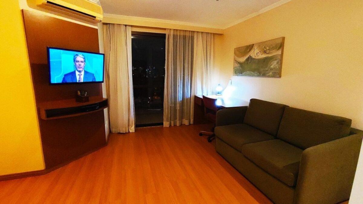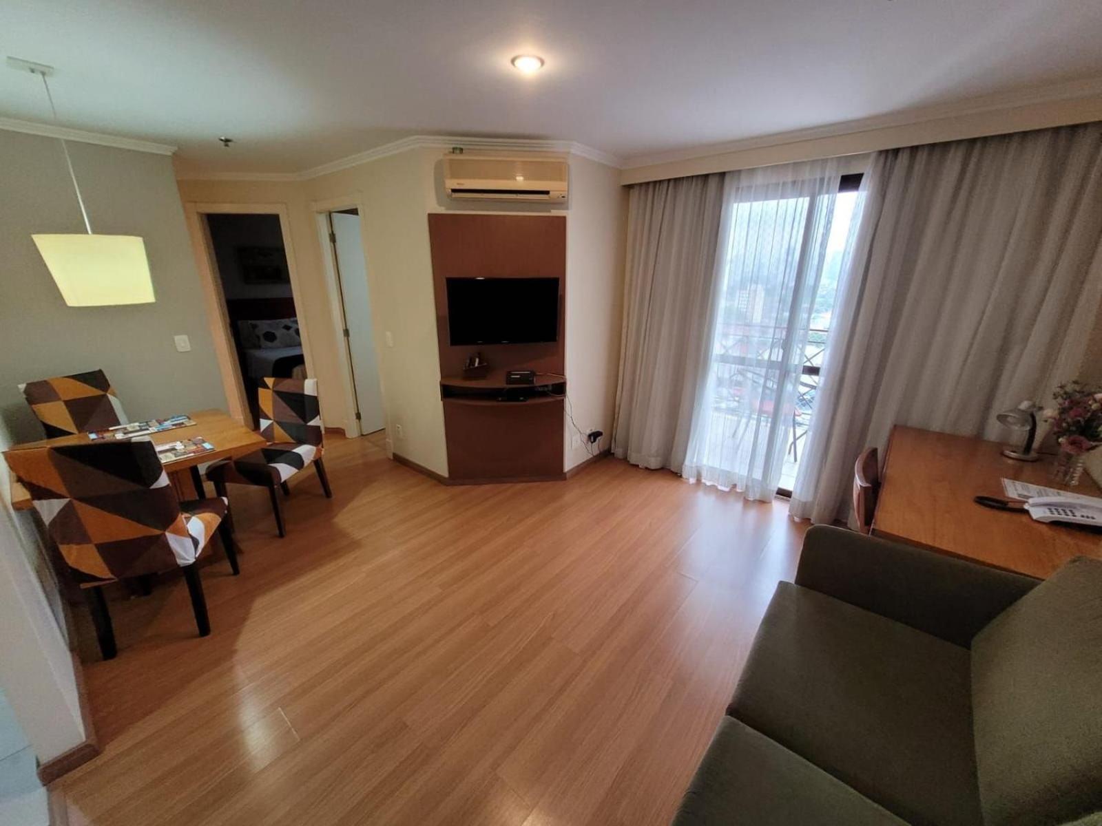 The noise from Bandeirantes Avenue is loud, even during the night. The windows should be upgraded to double glass to prevent the noise. The TV on the room is small.