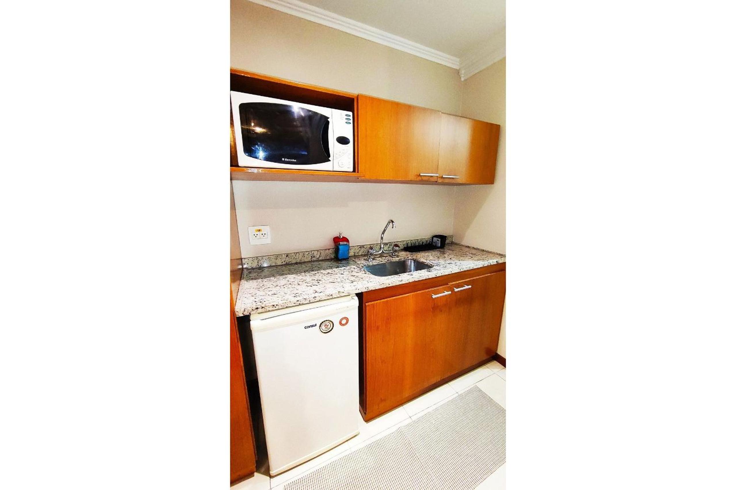 The fact it is an apartment, with a kitchen and washing machine, really helps when you need long stay in Sao Paulo. Location is great with access to main roads, and very secured.