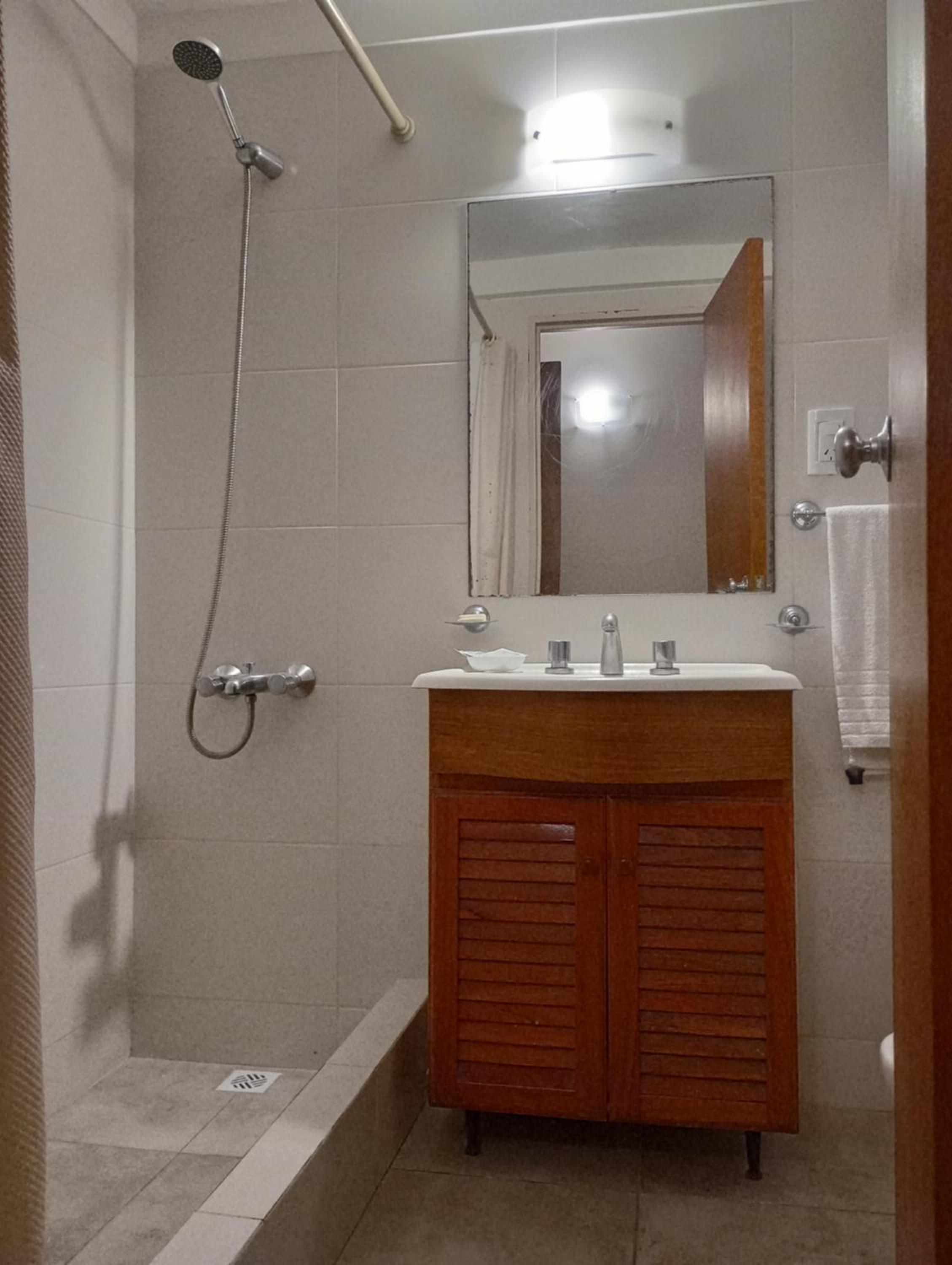 Habitación triple amplia. Lo único que no pedí y es necesario, sería un secador de piso y un trapo para el baño luego de bañarse porque queda mojado. Y un secador de pelo. Si bien son cosas que debí haber pedido en recepción, porque lo aclaran en las condiciones, serían cosas necesarias para el baño y para las mujeres que usamos secador de cabello. Nosotras nos olvidamos de pedir, honestamente. Pero, es un excelente lugar y excelente cordialidad. Mi sobrina pequeña de 4 años se hizo "amiga" del sr de recepción porque él fue muy amable con ella y solía conversar con ella. Ella cuando no lo veía decía y "mi amigo?".