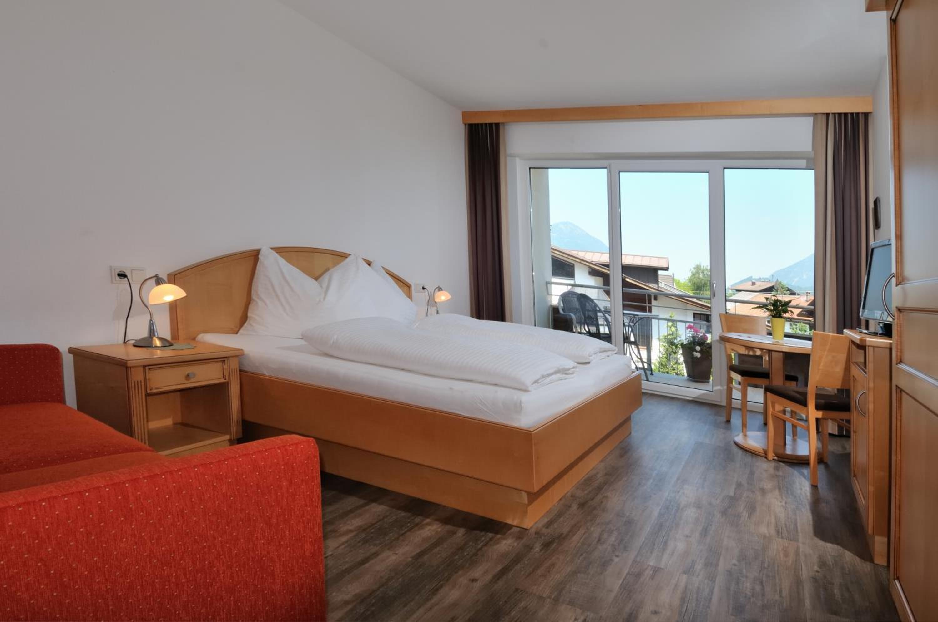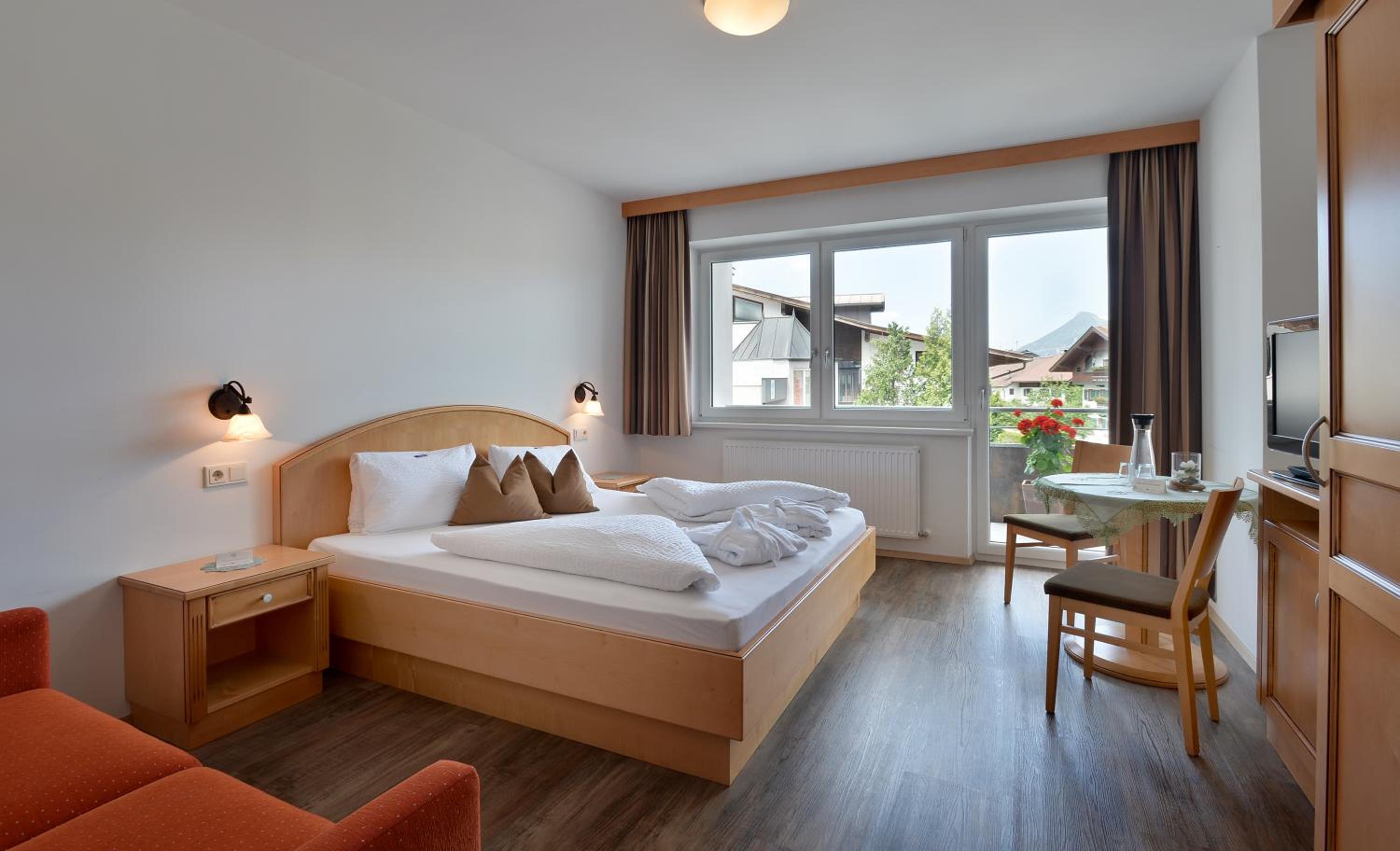 Delicious Dining and Convenient Location: Indulge in half-board options with dinner served at the adjacent hotel. Just a short drive to Kufstein and the Wilder Kaiser ski area, with a free ski bus stop in front during winter.