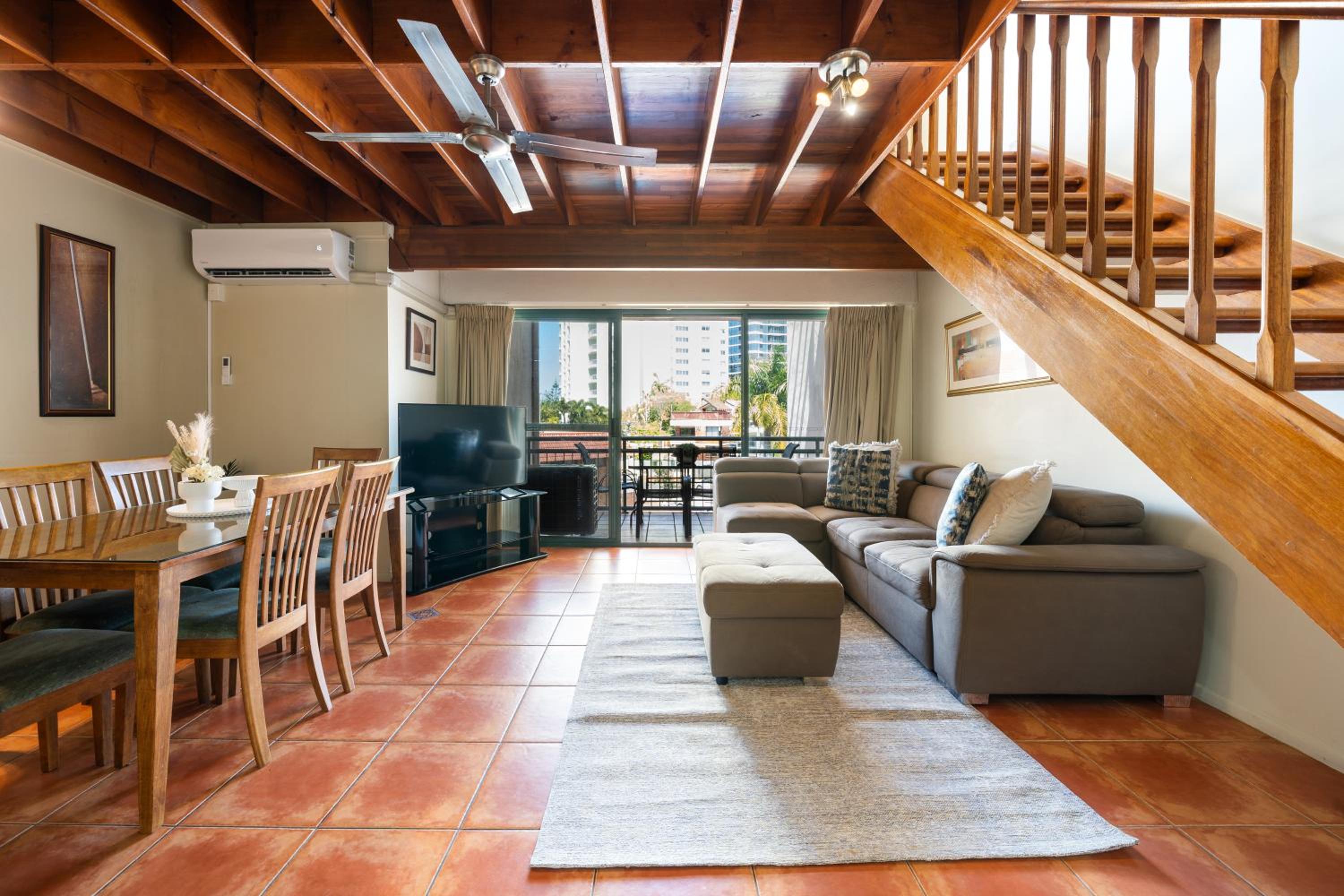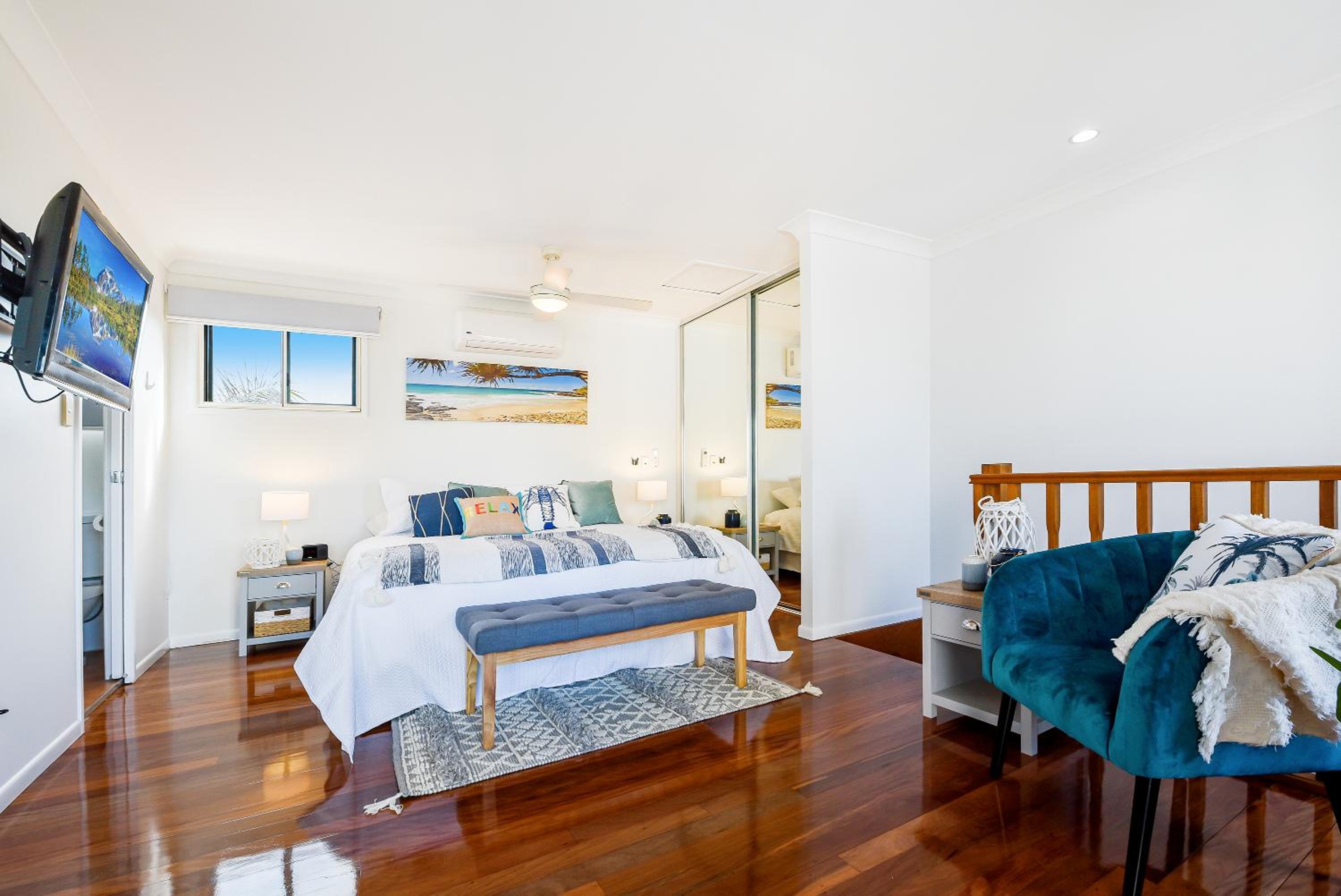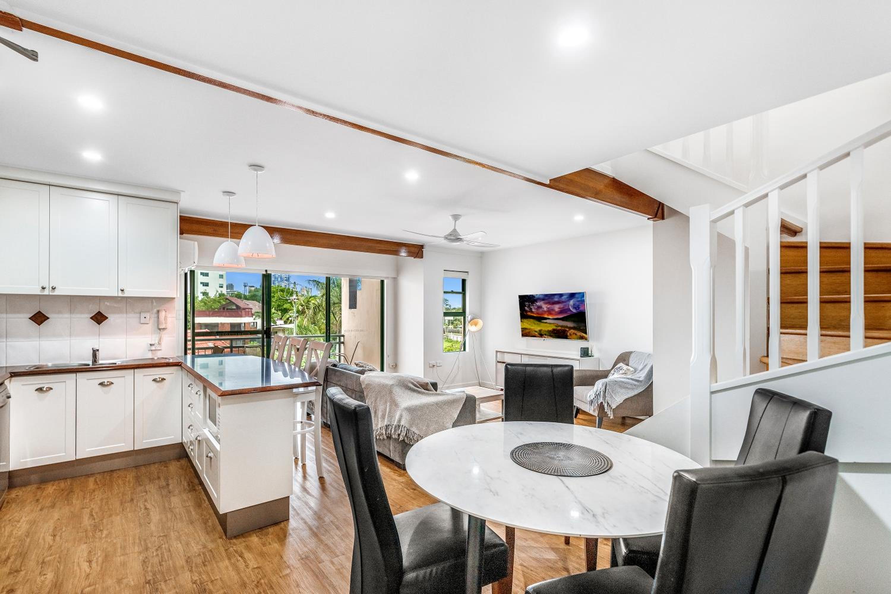 The location was perfect for us and the purpose of travel. There is a servo and coffee shop directly across the road and a short stroll to the water. Apartment 17 was lovely and spacious, air con was fantastic. Kitchen was a good size with cooking facilities if needed and laundry area was also great to be able to wash clothes. both levels had a balcony which was also a big plus, the top balcony doesn't have a roof so don't go to sit there when its raining like we did but it was great! Any issues we had ( 1 small issue with a cleaning oversight) was corrected immediately and the owner was extremely accommodating to our needs and rectifying this.