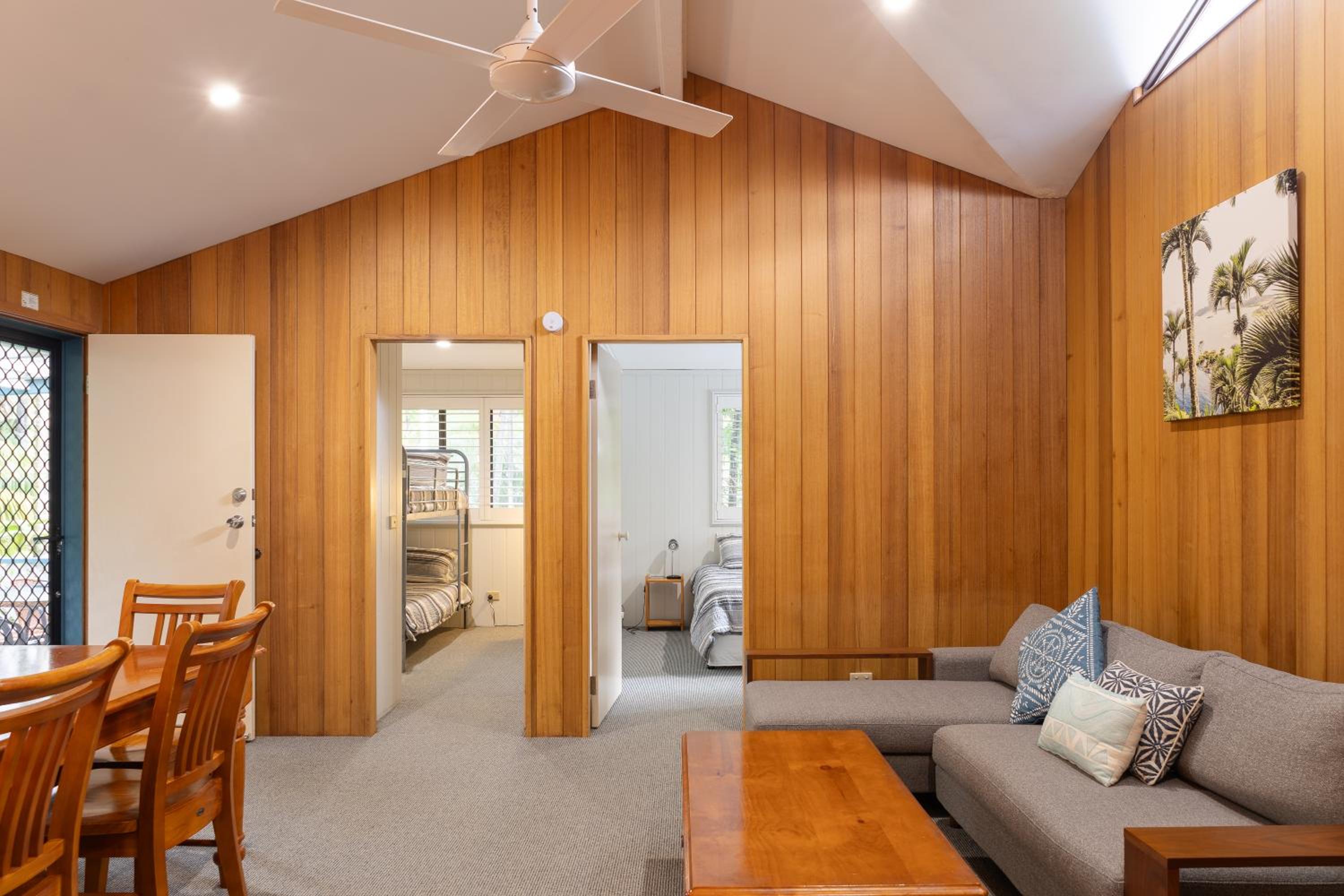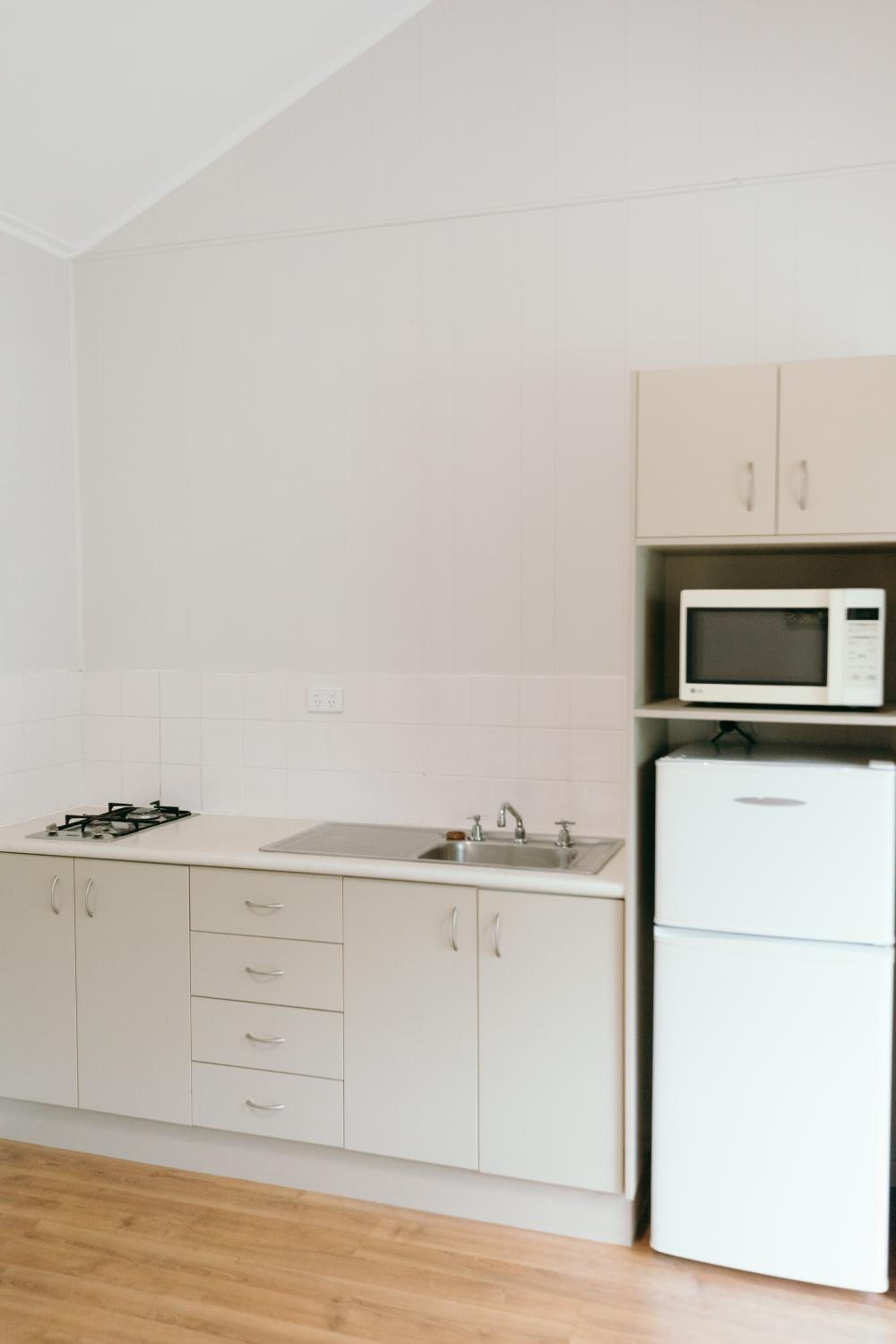 Classic Aussie summer holiday cabin vibe. The owner Gaye would magically be there whenever we had a quesrtion or needed something but we also felt very left to our own fun. The little communal space was perfect for early morning yoga for us 3 and the drying areas for wet towels and dive/surf gear were perfect.