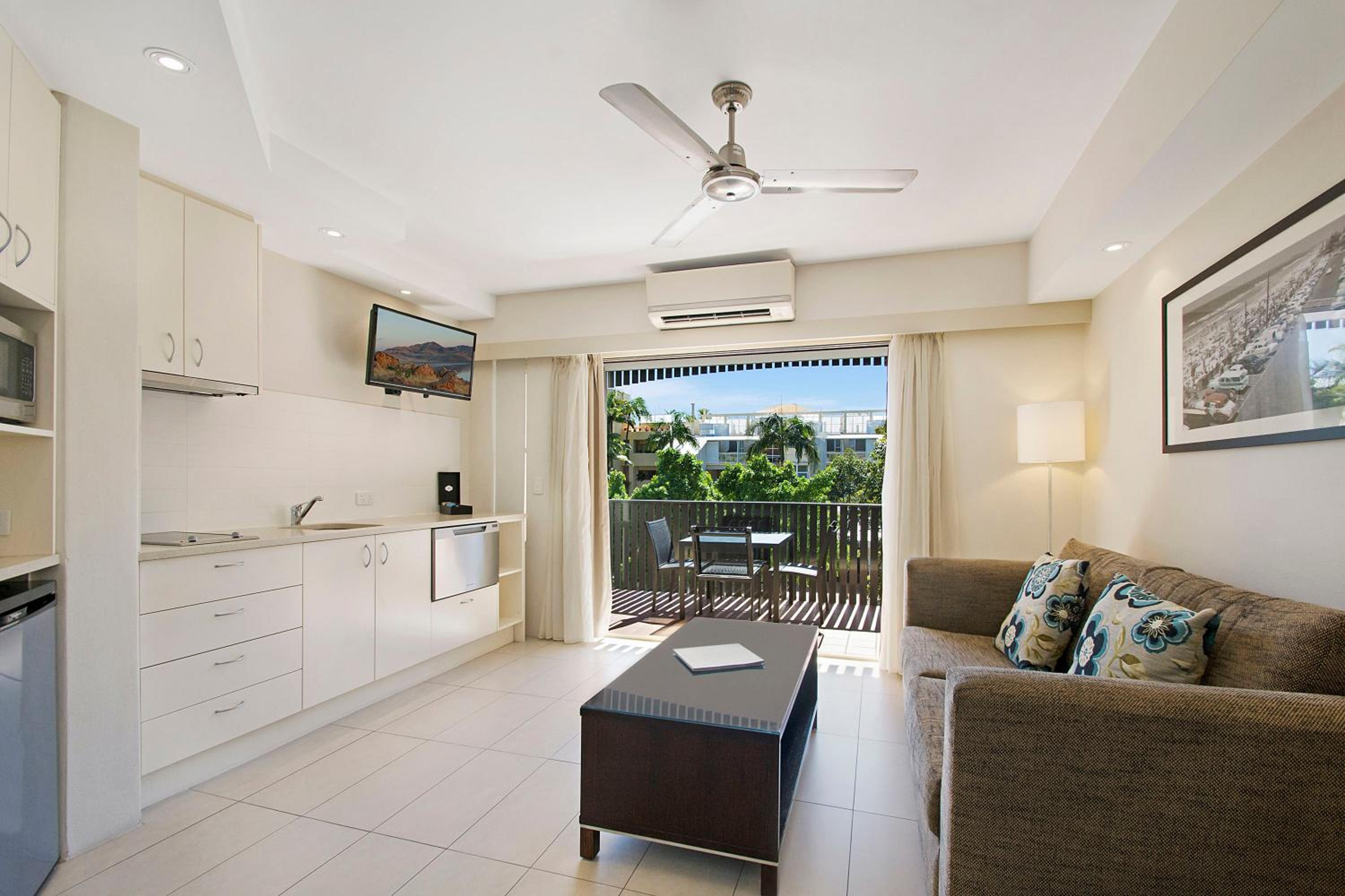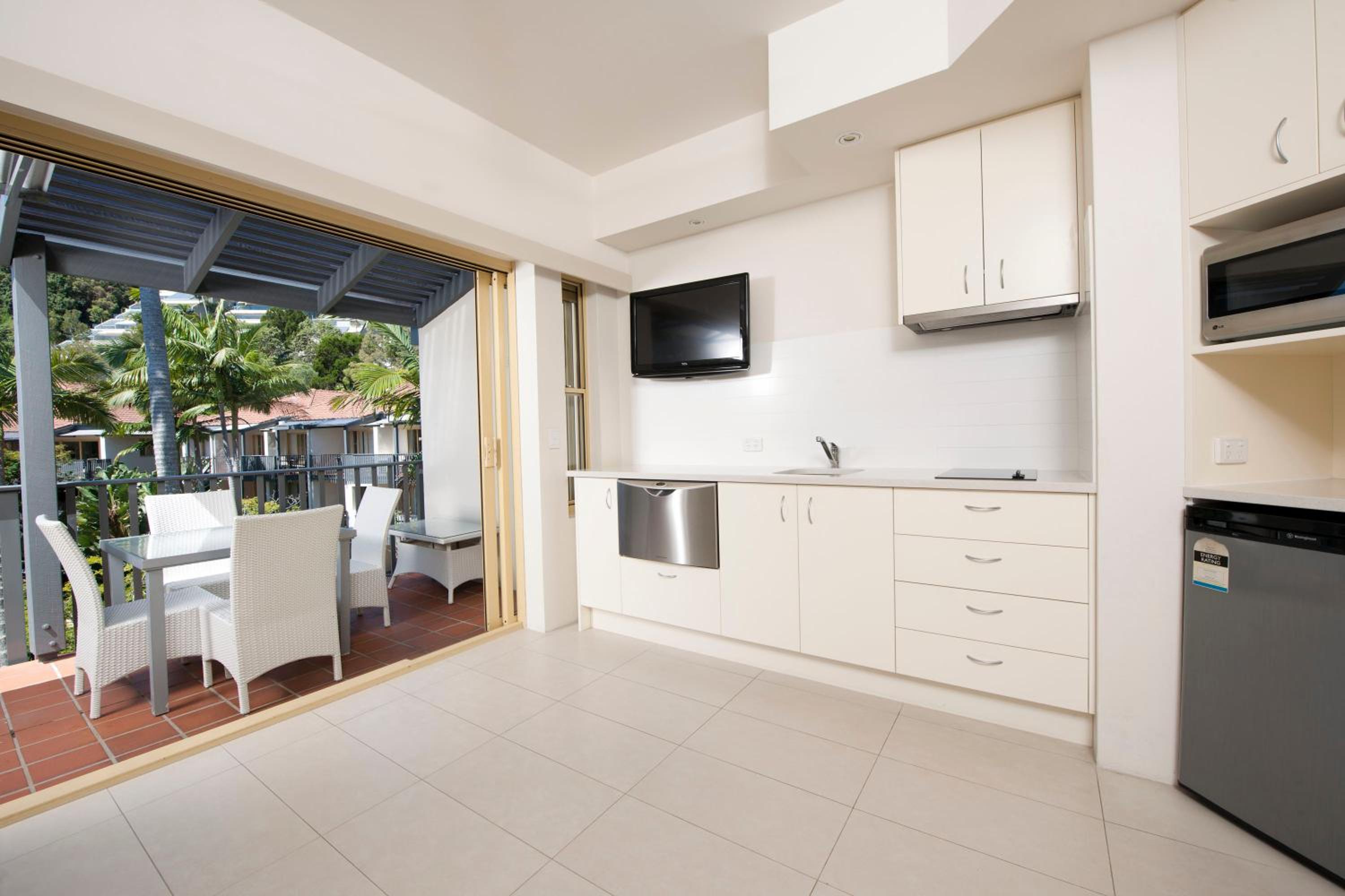 Experience the charm of Mantra French Quarter Noosa resort on Queensland’s Sunshine Coast. Enjoy spacious, modern apartments with well-equipped kitchens, floor-to-ceiling windows, and outdoor balconies. The blue and white décor creates a serene atmosphere for your stay.