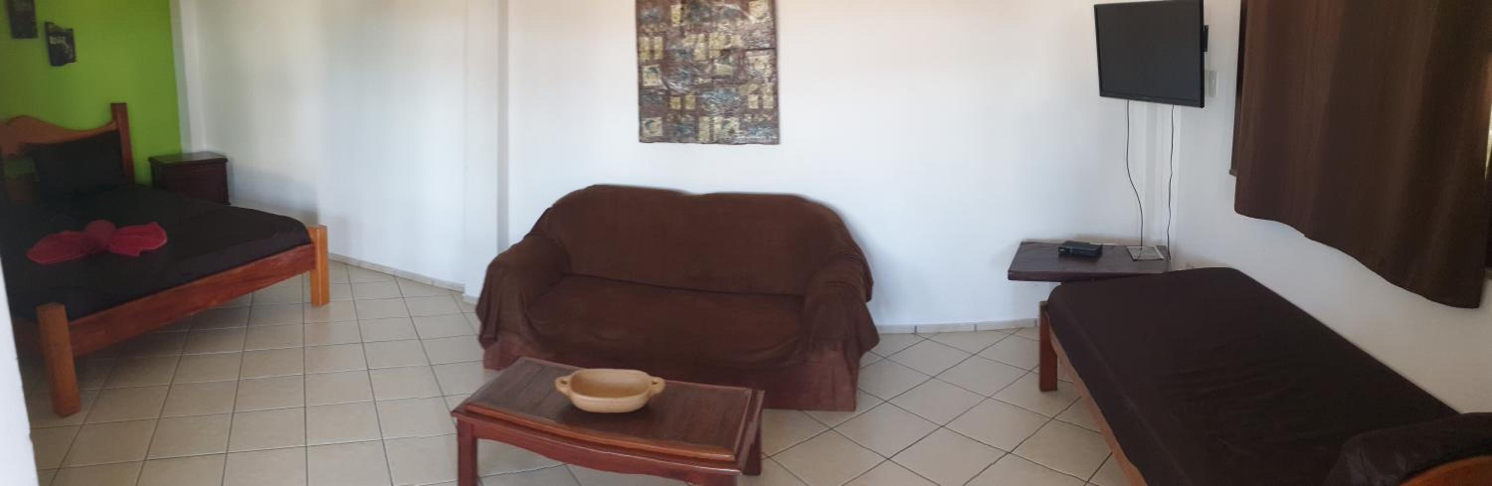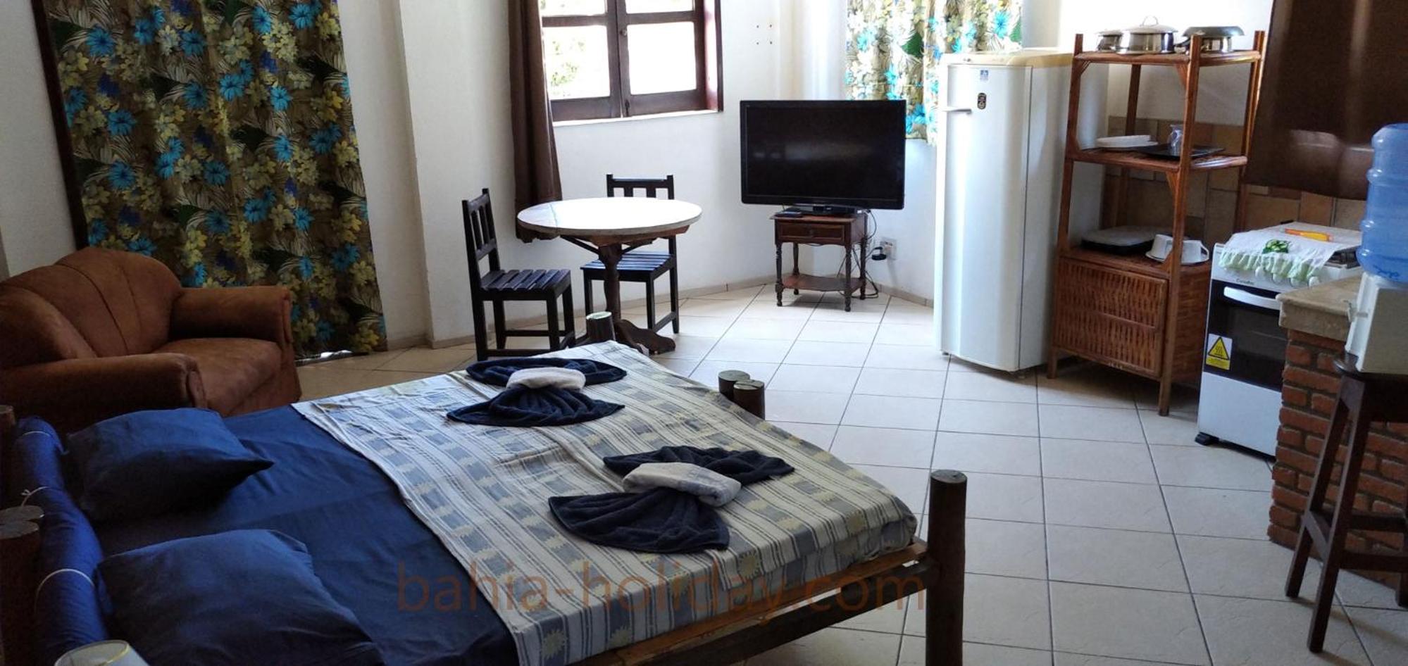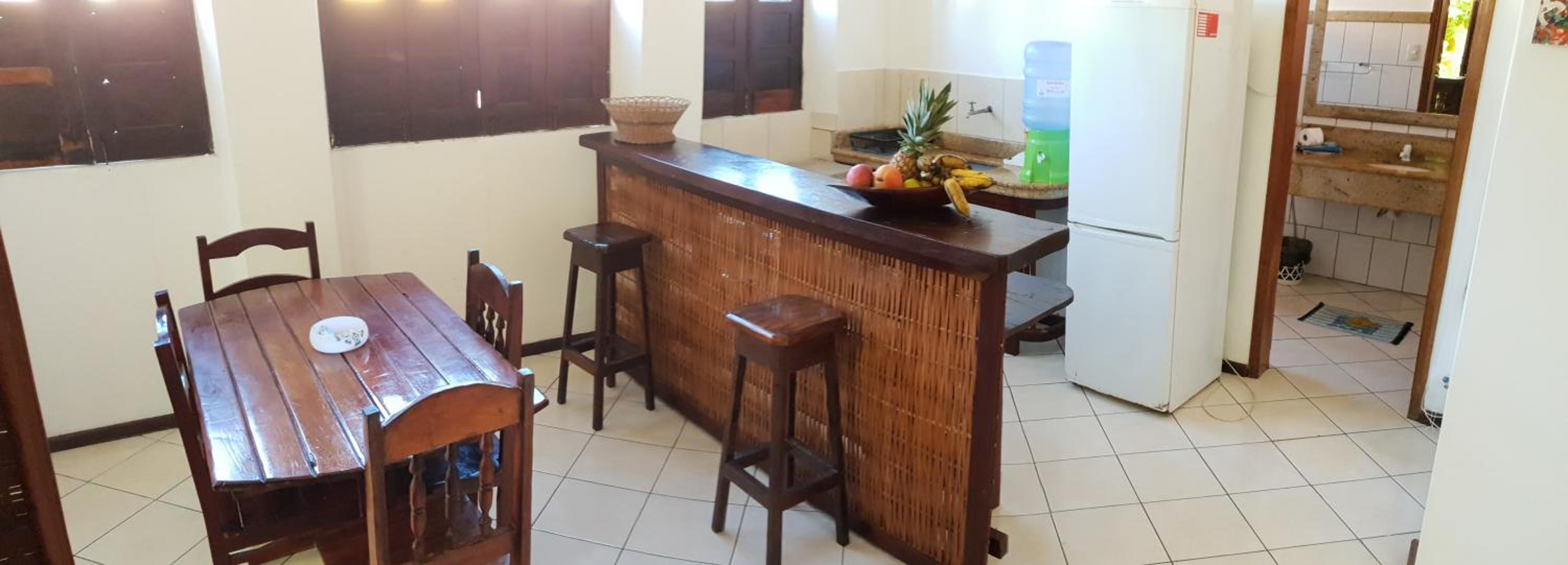 Gostamos muito do tamanho do quarto e da piscina que está sempre limpa. Ter cozinha e utensílios é muito prático. Também foi ótimo ter 2 banheiros.