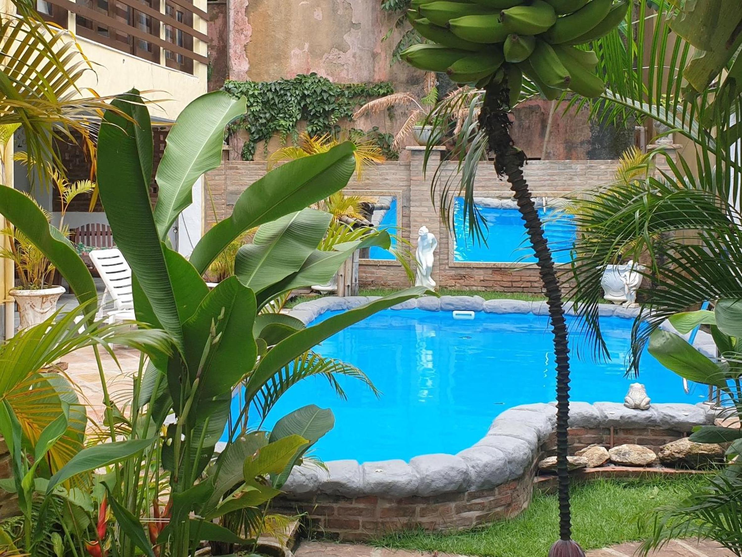 A area externa carece de manutenção e cuidados, sobretudo a piscina.