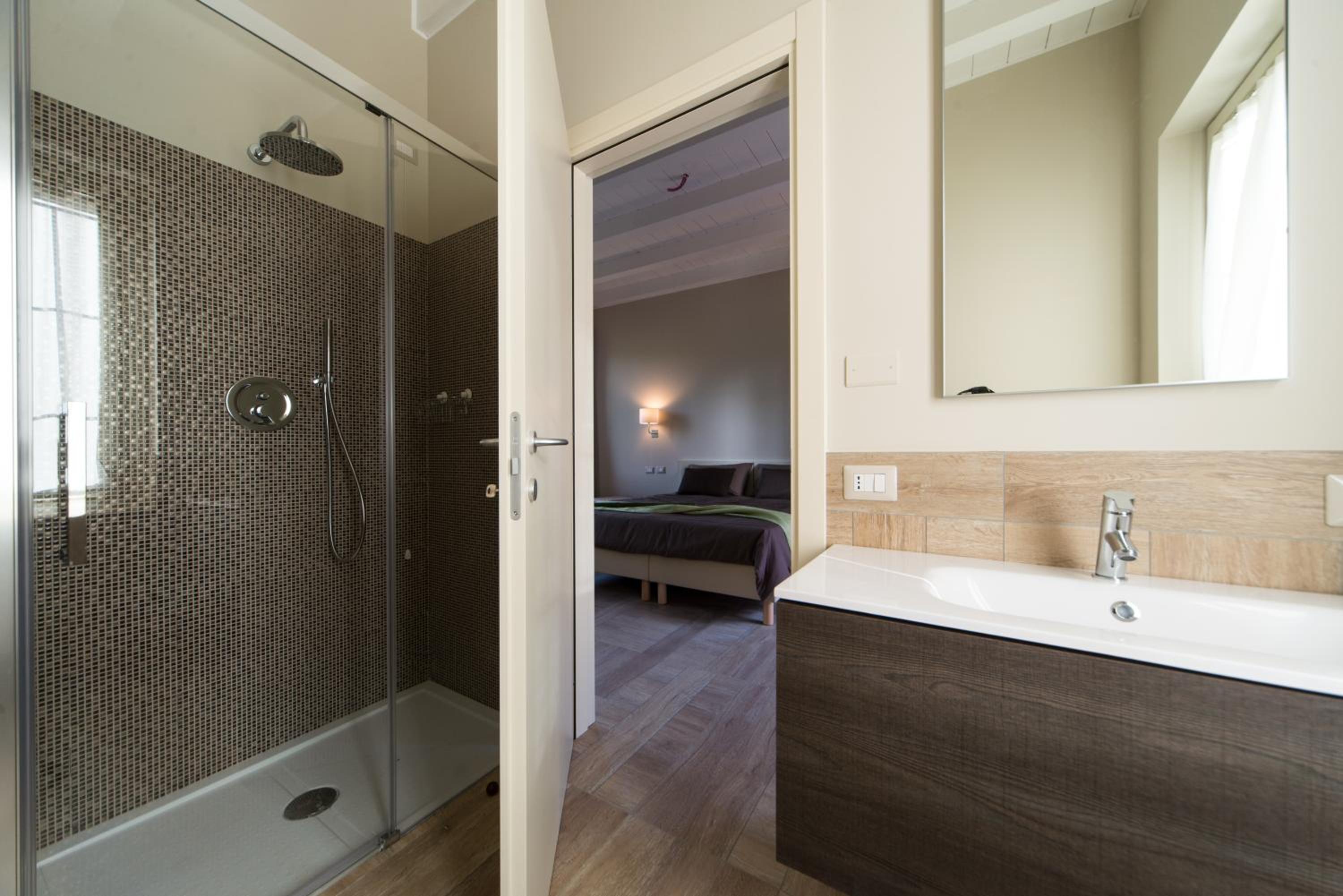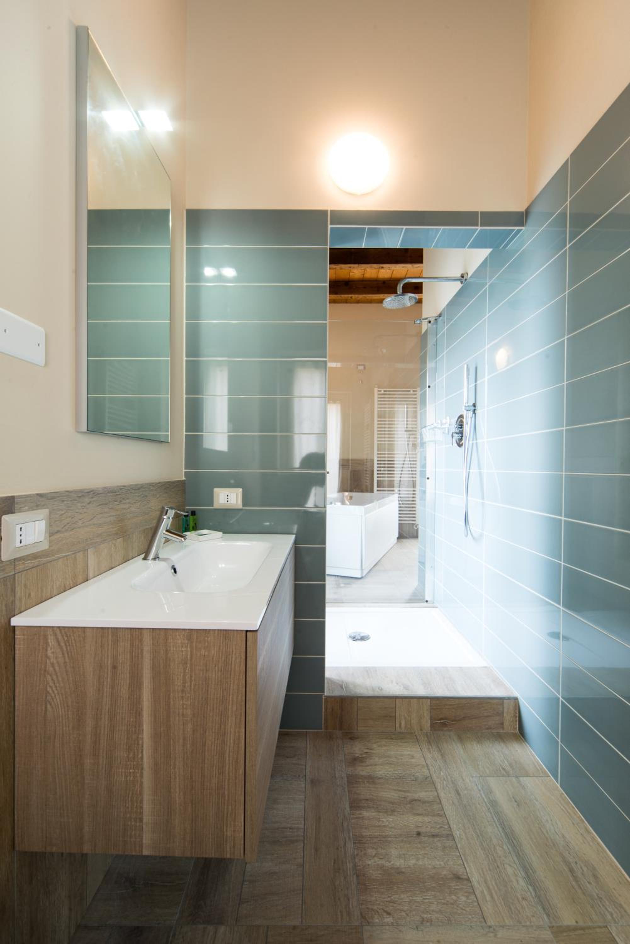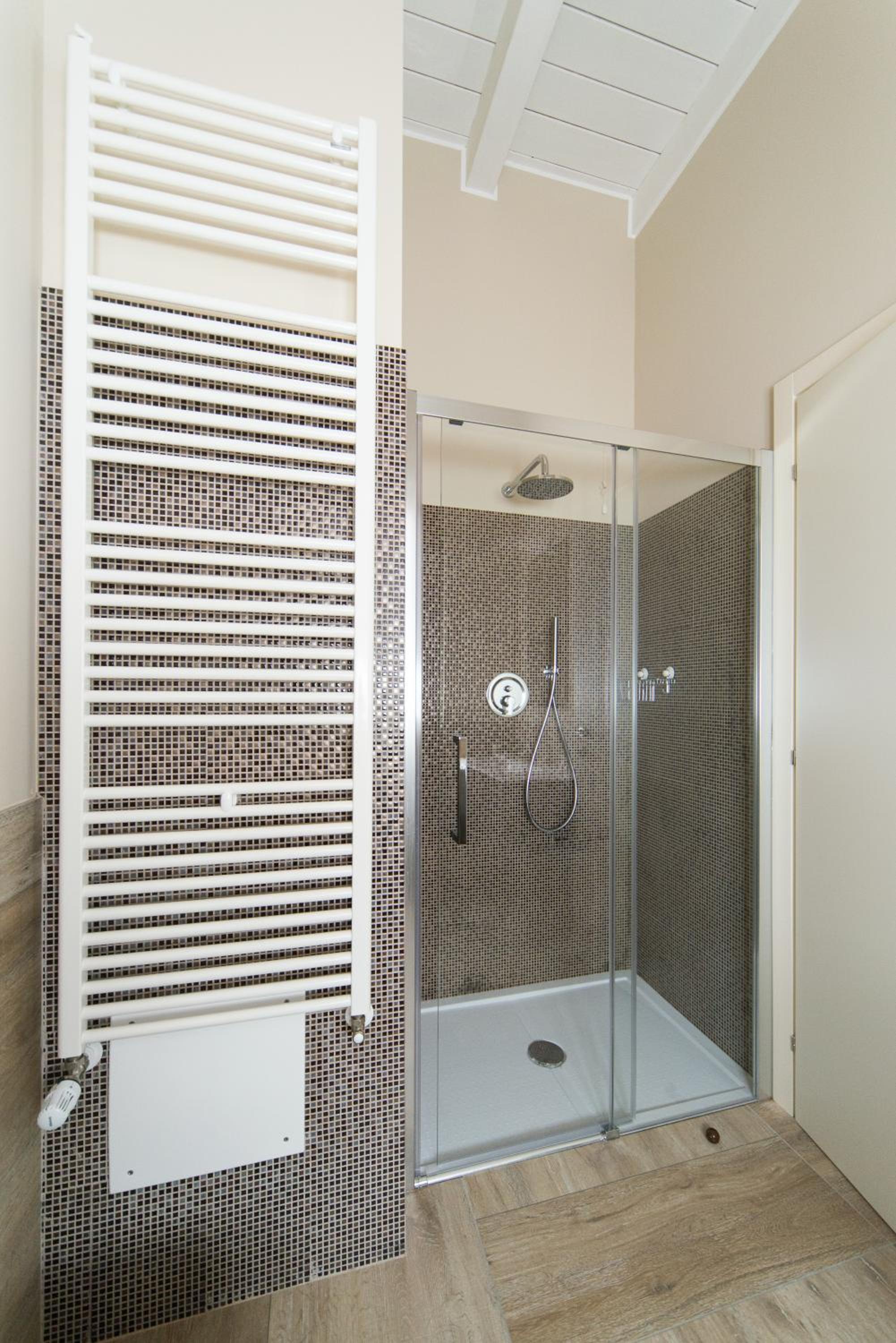 Non ho amato molto la doccia passante, riduce l'intimità ma molto bella dal punto di vista del design.