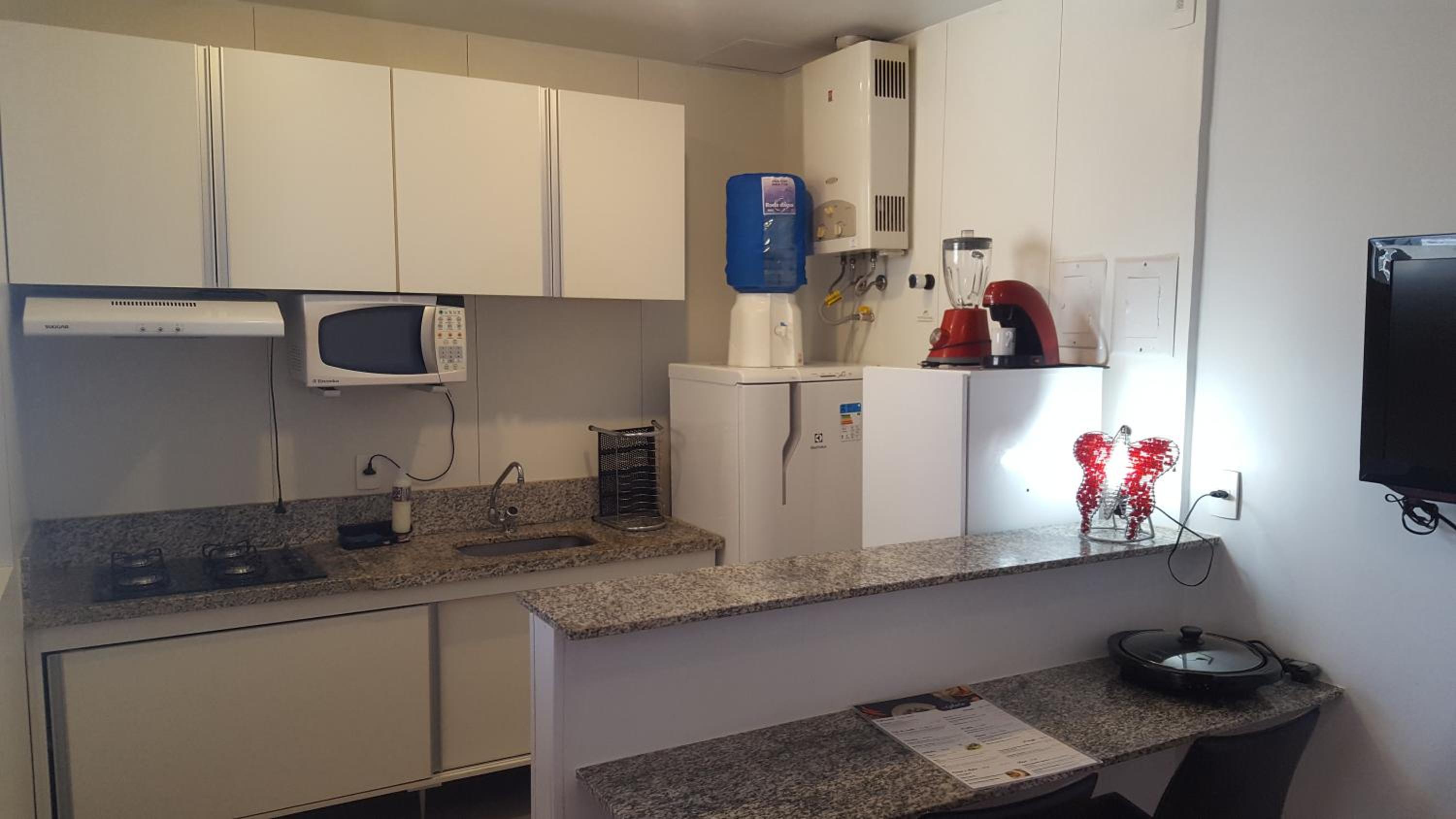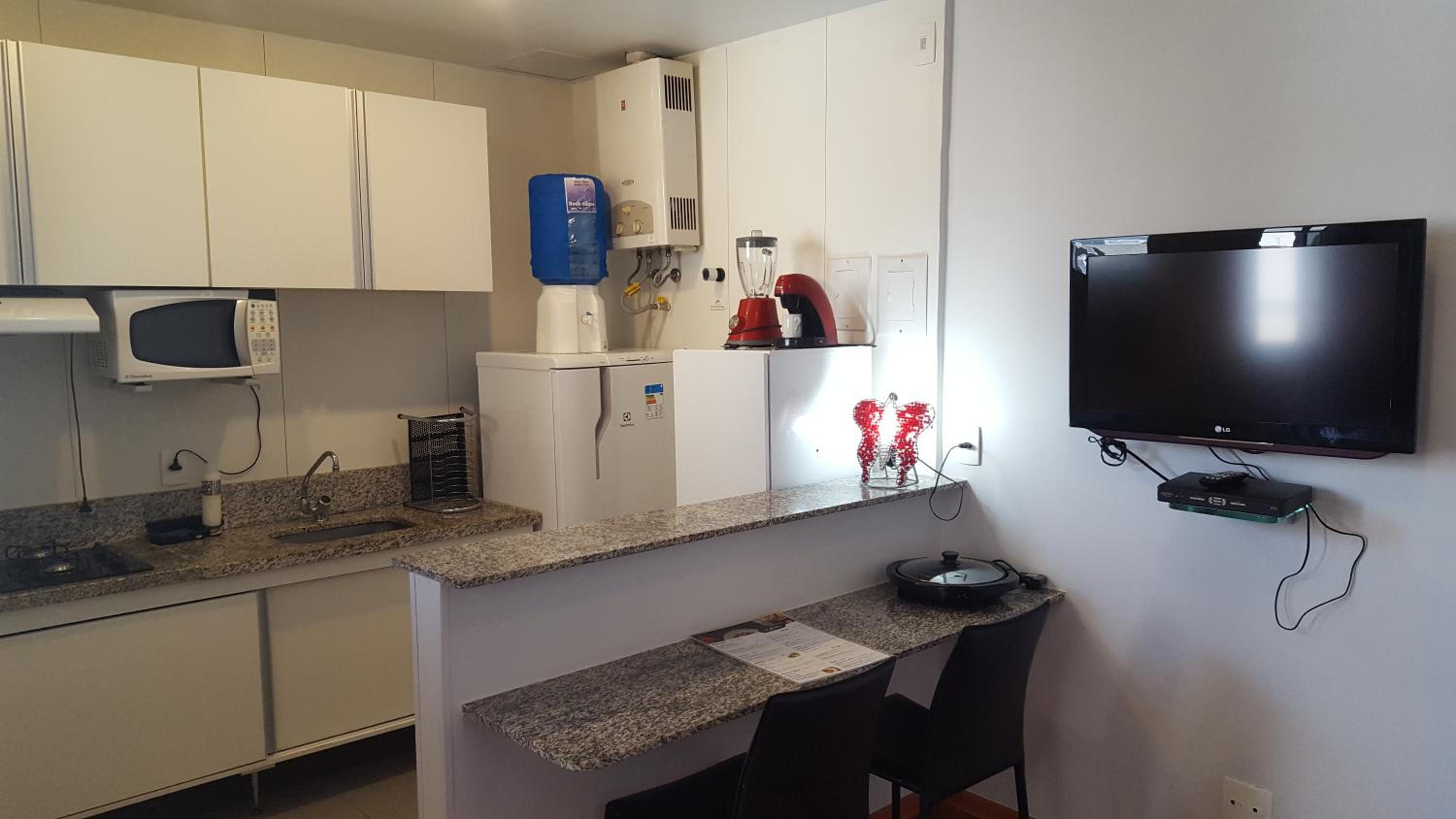 The apartment is a good size for a family of 4. Great breakfast and room service. I also loved that drinking water in the room was available for guests which is generally uncommon in Brazil.