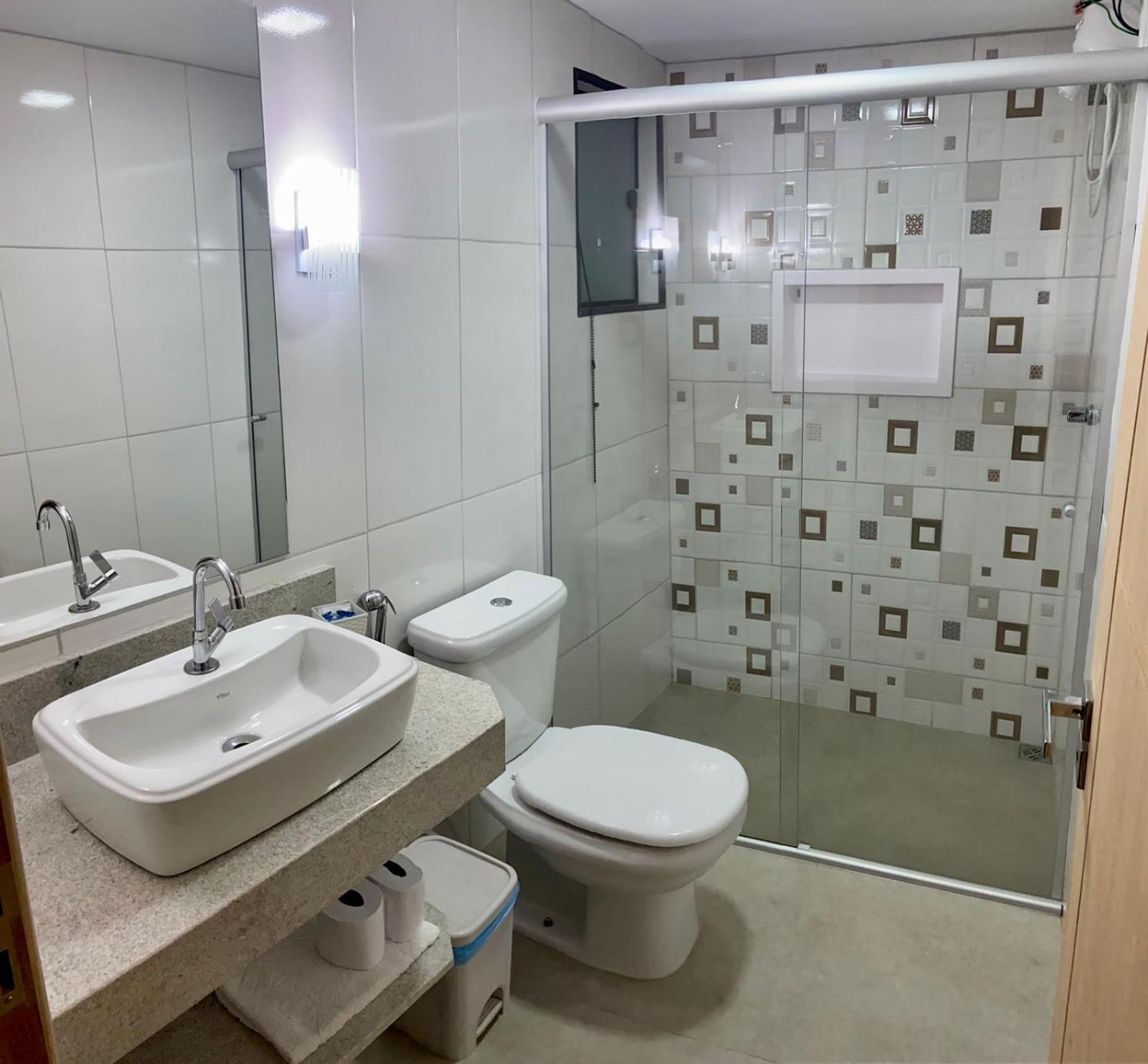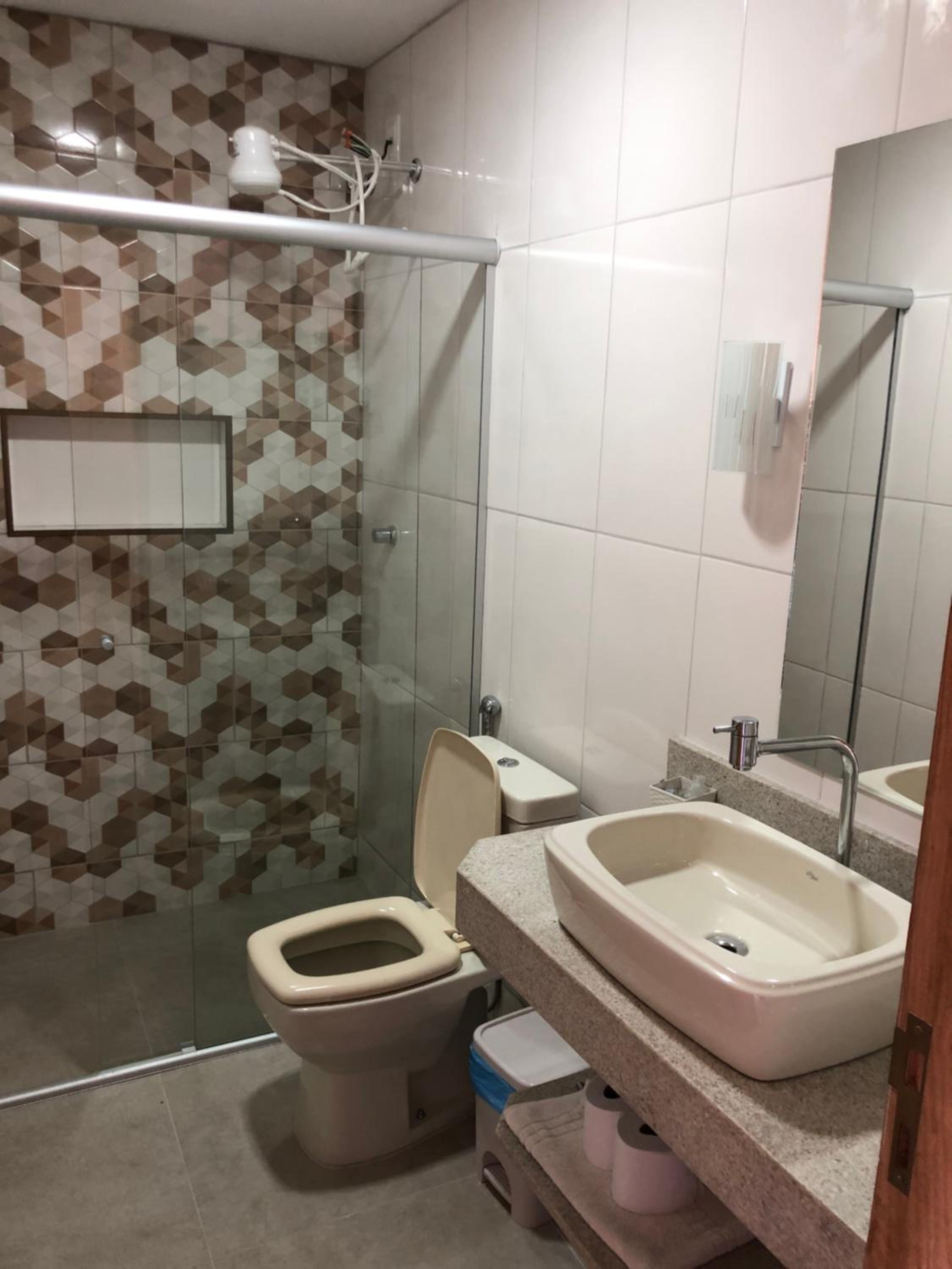Chuveiro com pouca pressão e falta de ar condicionado para melhor aclimatação.