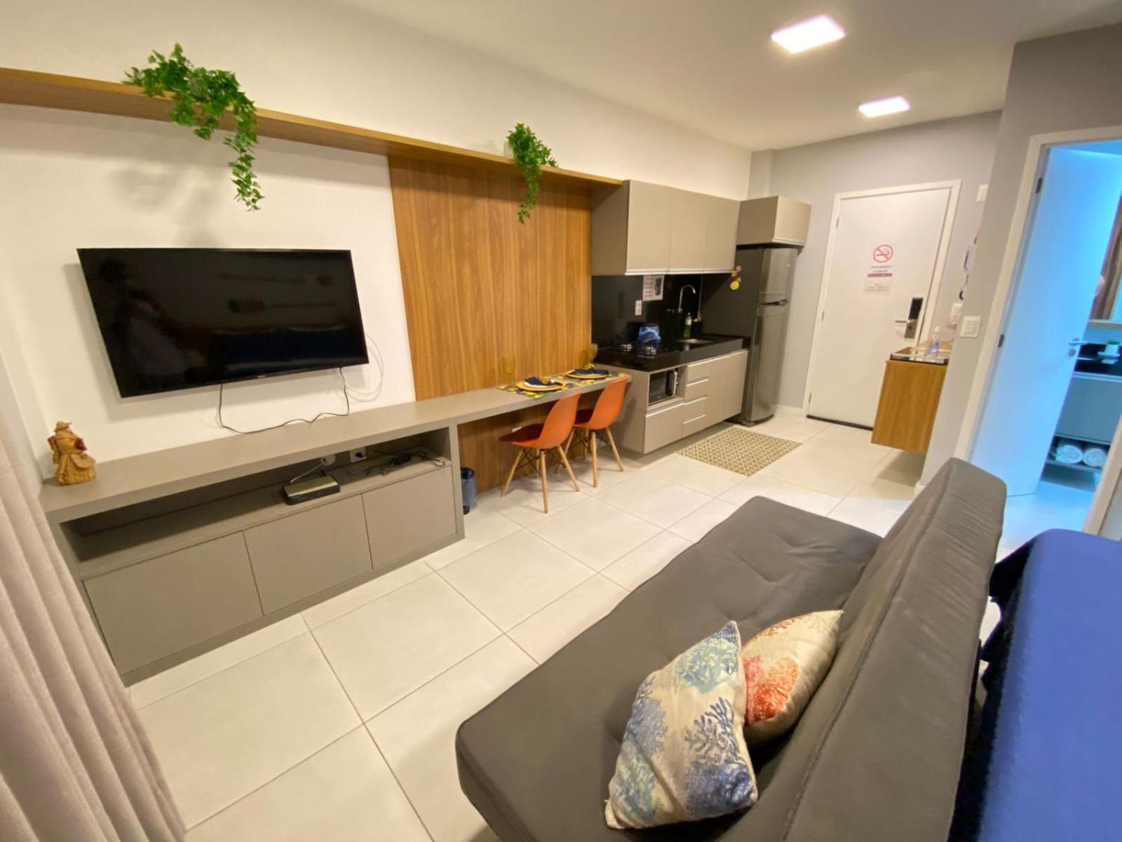 Apartamento limpo,roupas de cama de cor escura porém cheirosas ,tudo bem equipado